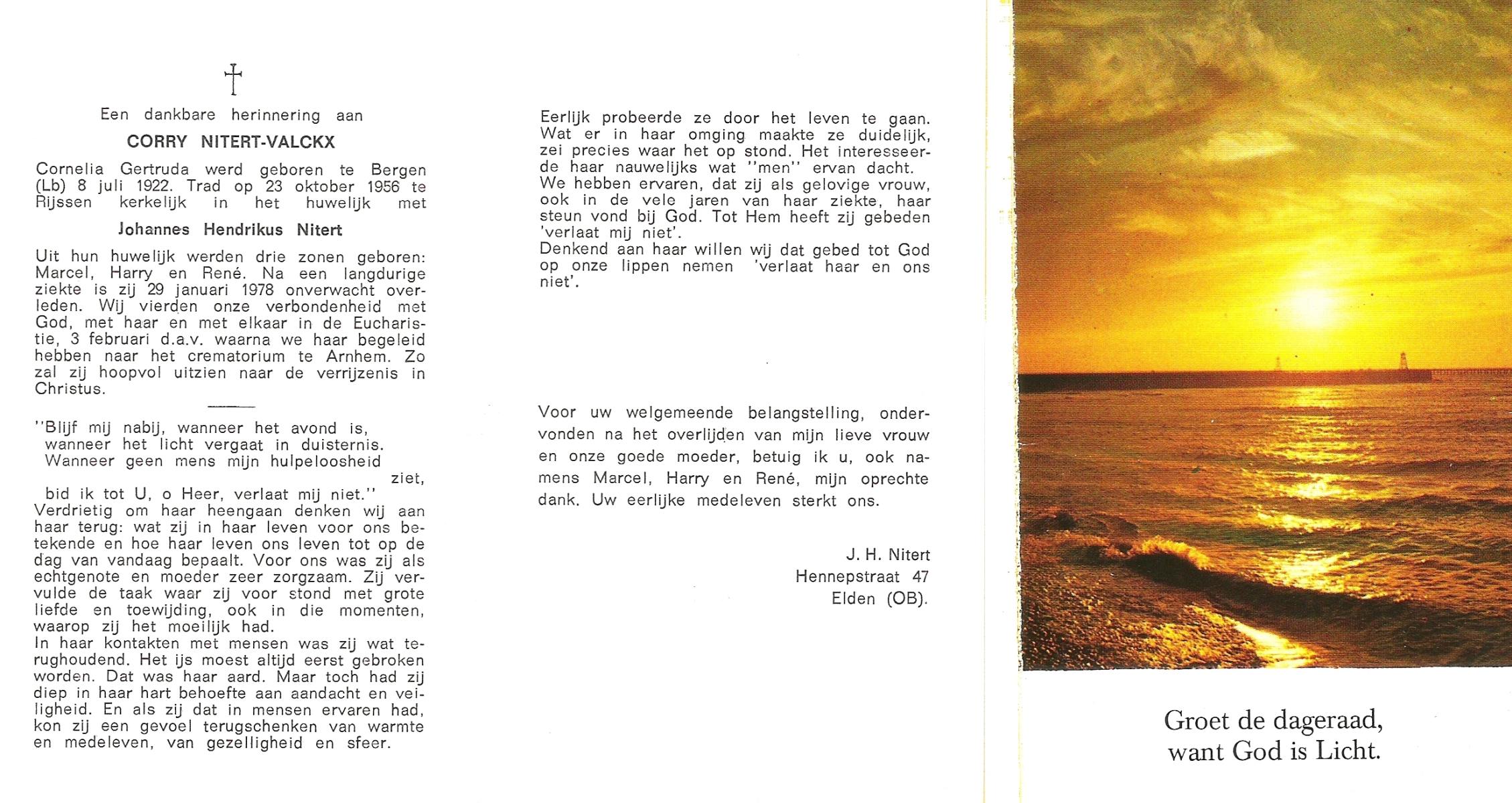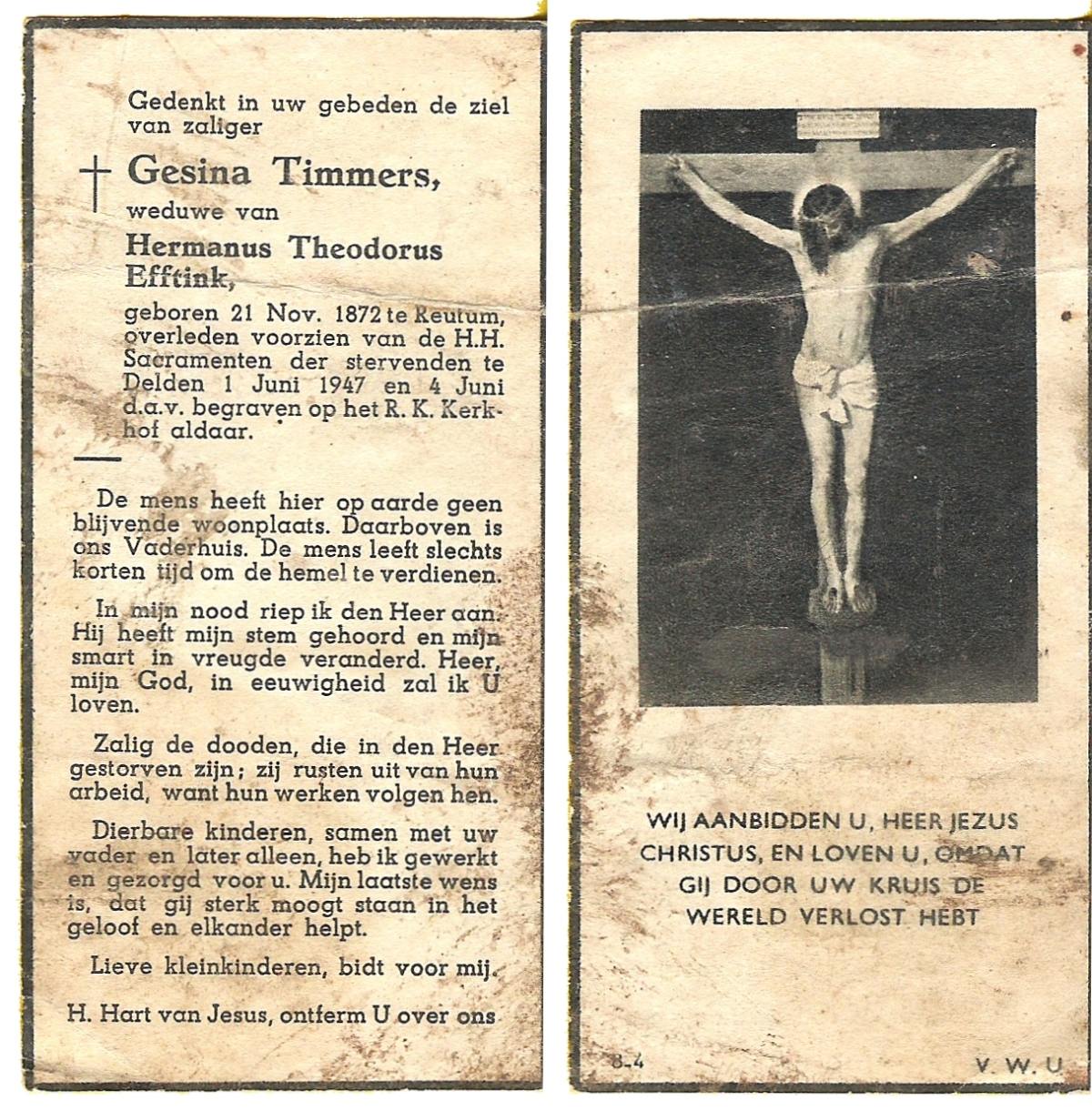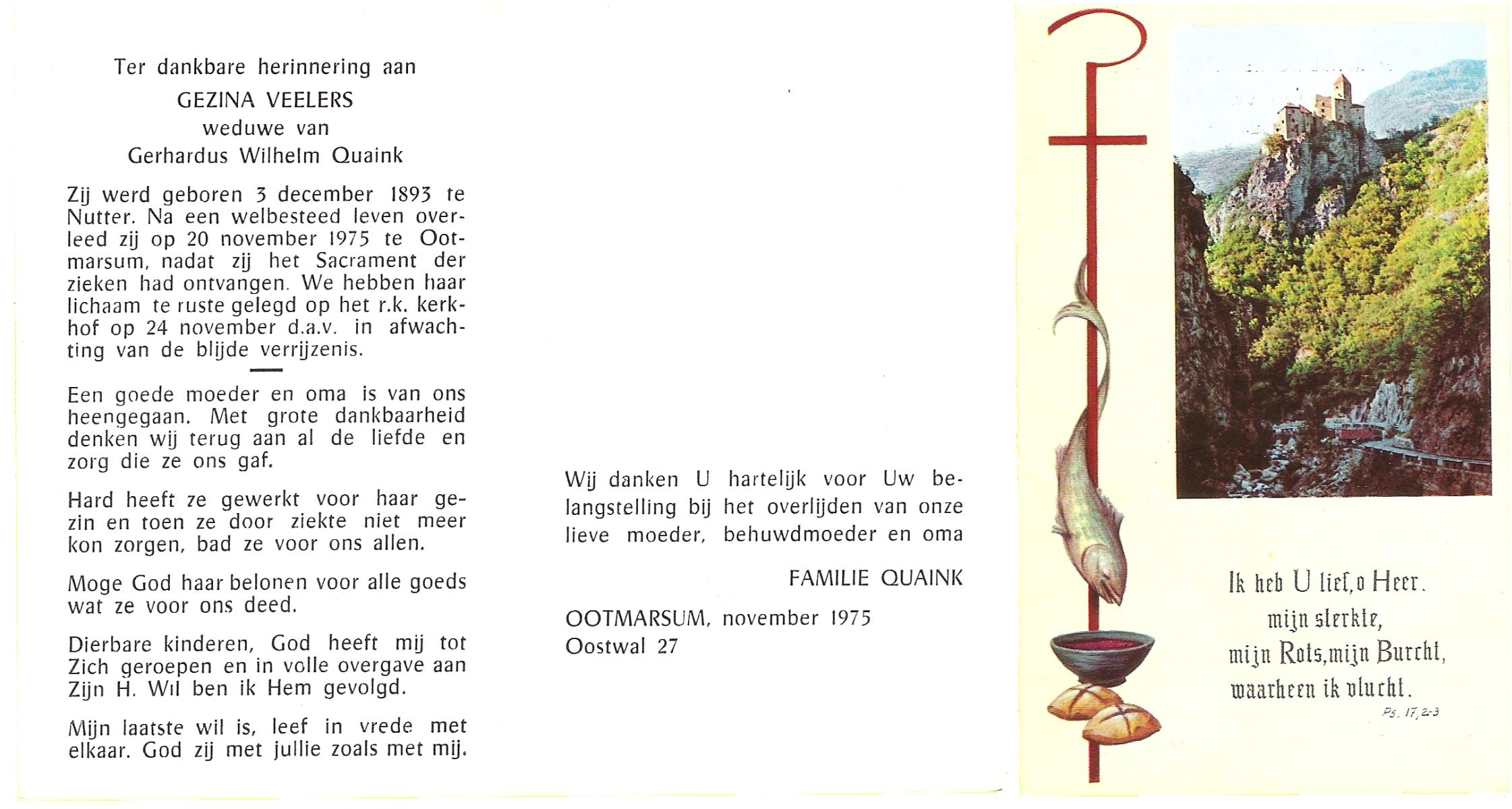 VEELERS, Gezina, geboren op 03-12-1893 te Nutter, overleden op 20-11-1975 te Ootmarsum op 82-jarige leeftijd, begraven op 24-11-1975 te Ootmarsum.