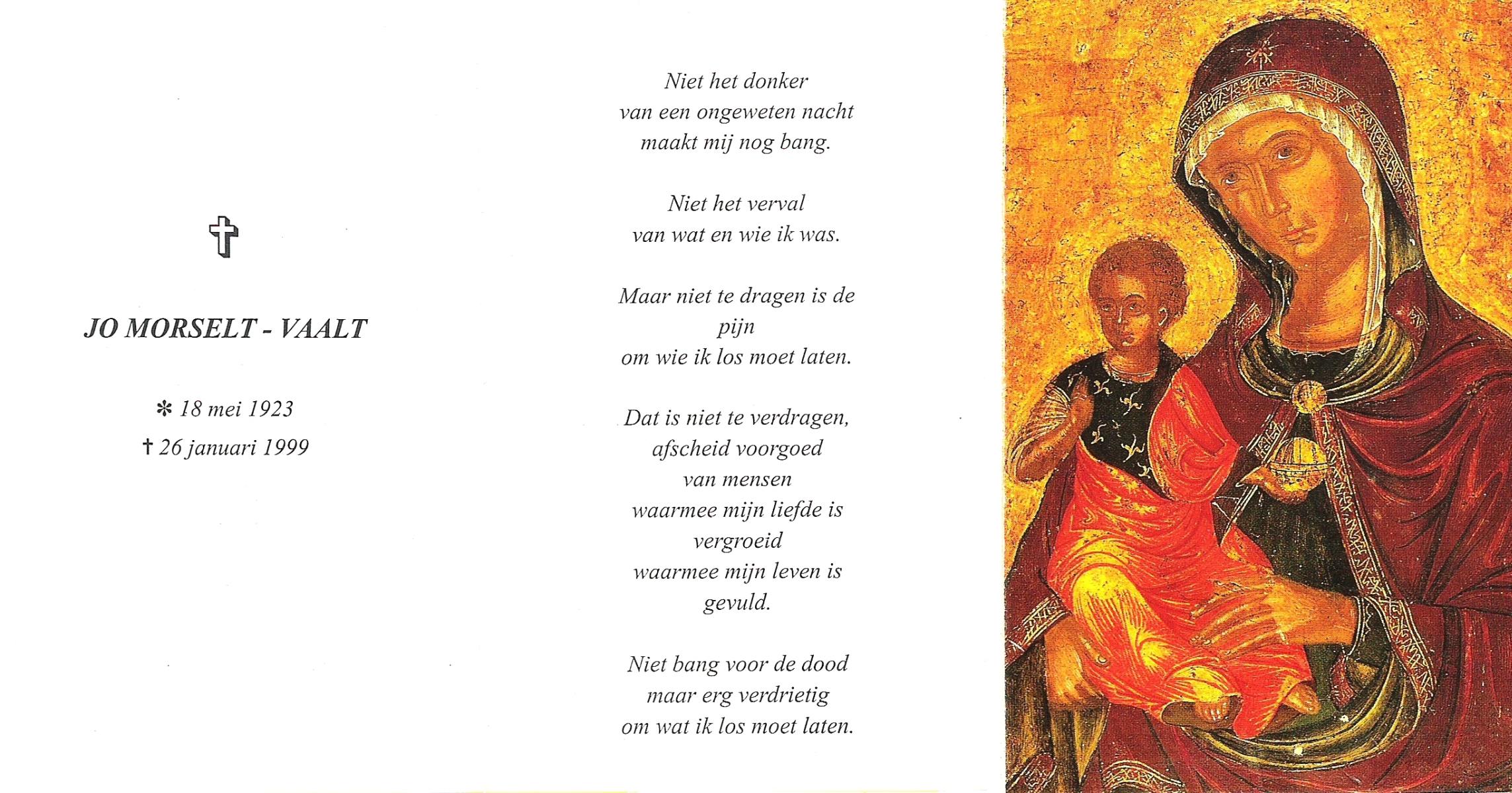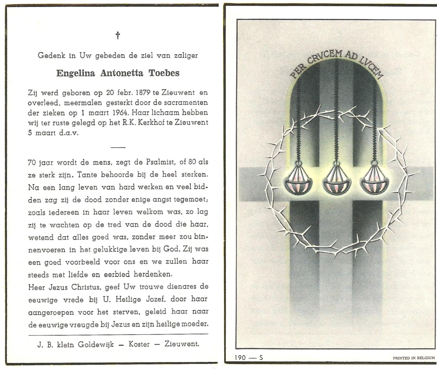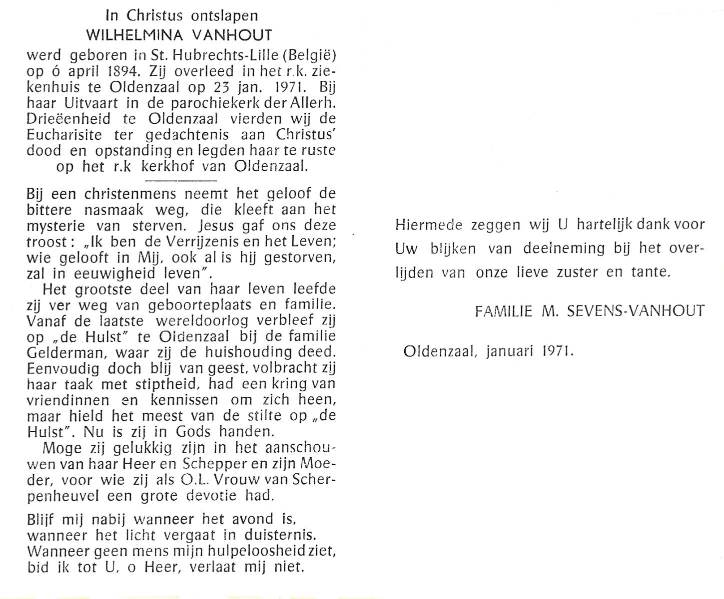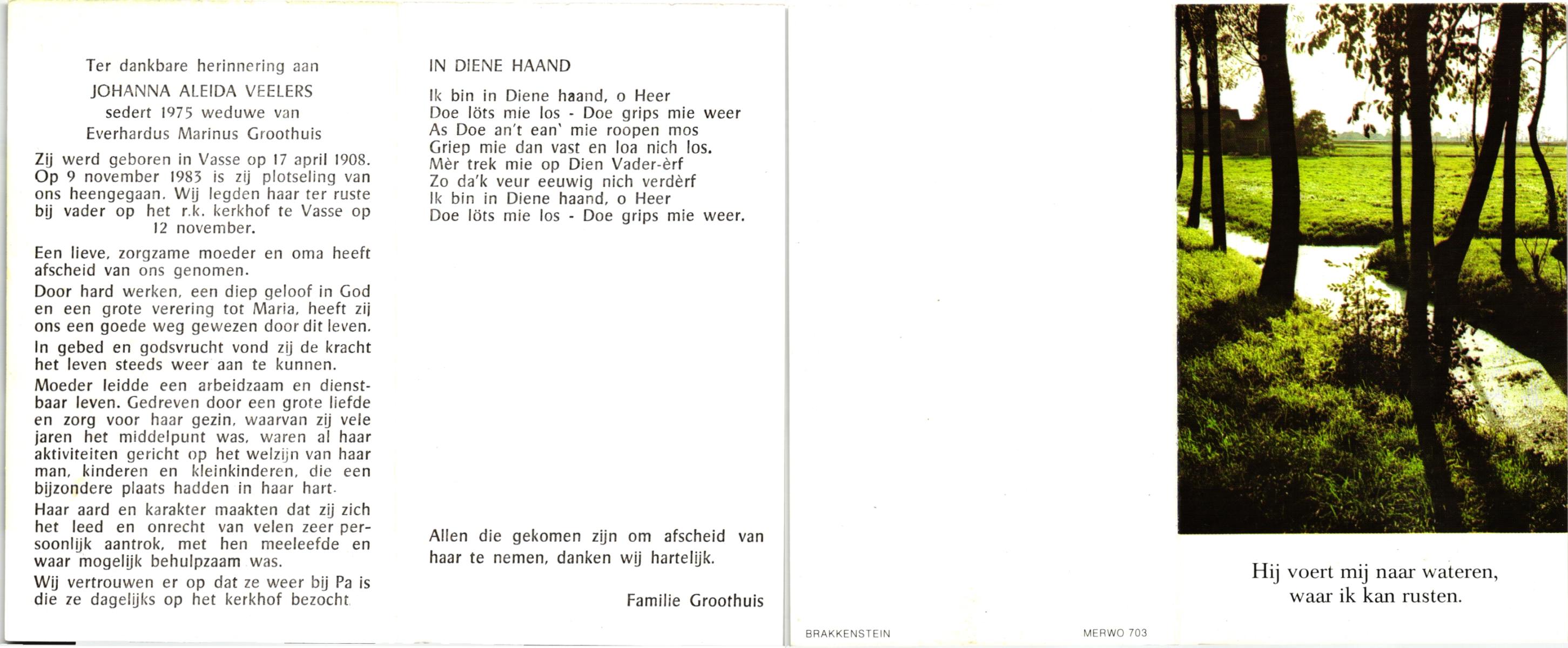 VEELERS, , Johanna Aleida, geboren op 17-4-1908 te Vasse, overleden op 9-11-1983 te Vasse op 75-jarige leeftijd, begraven op 12-11-1983 te Vasse.