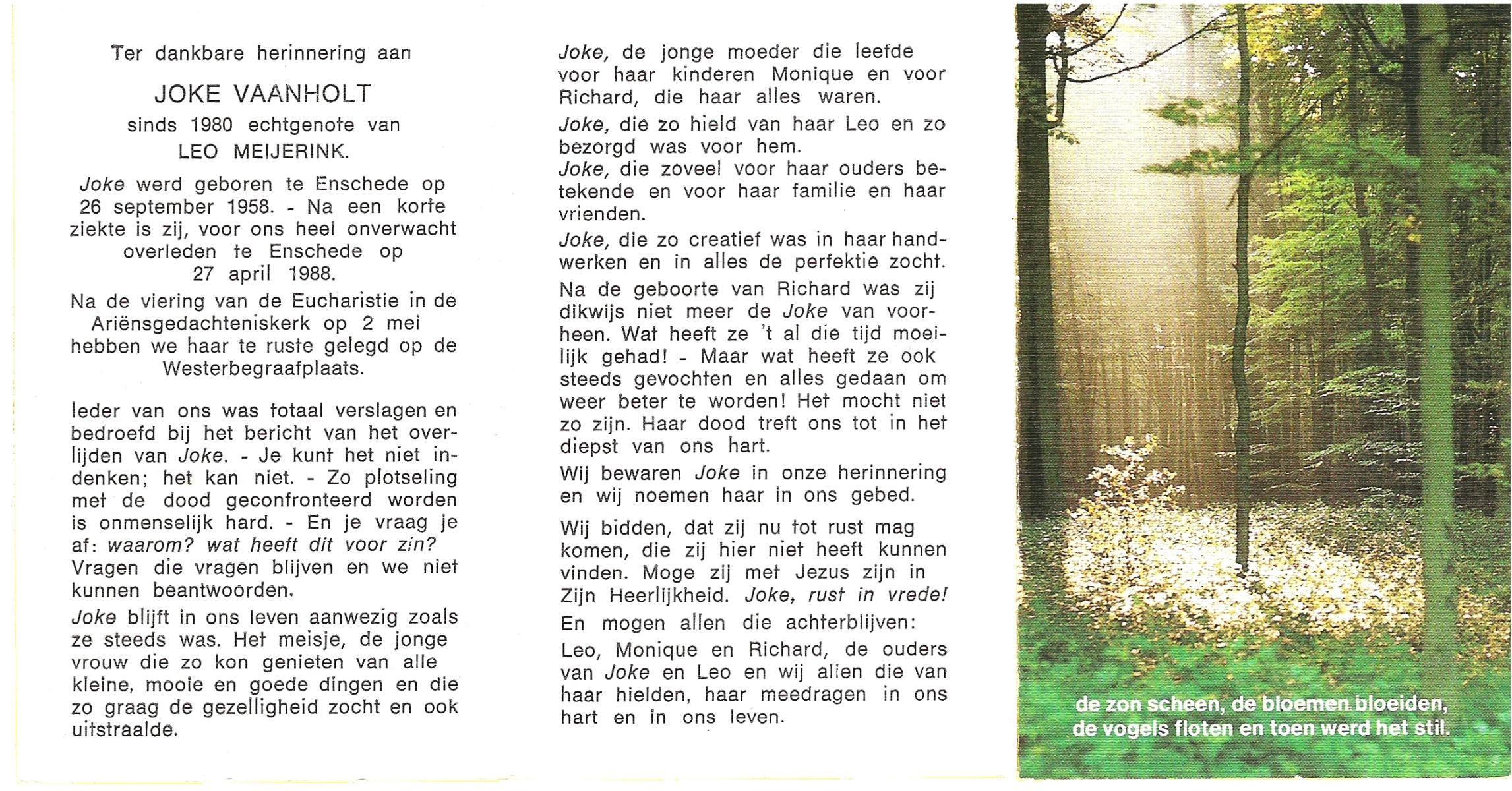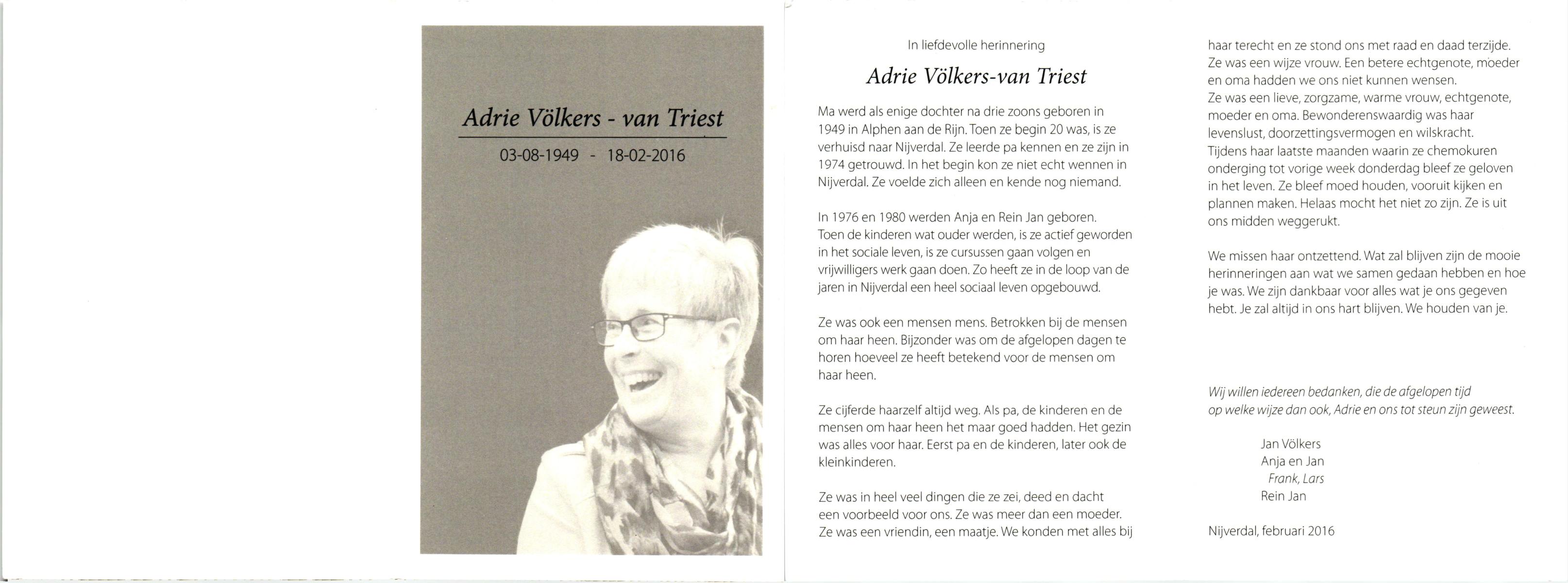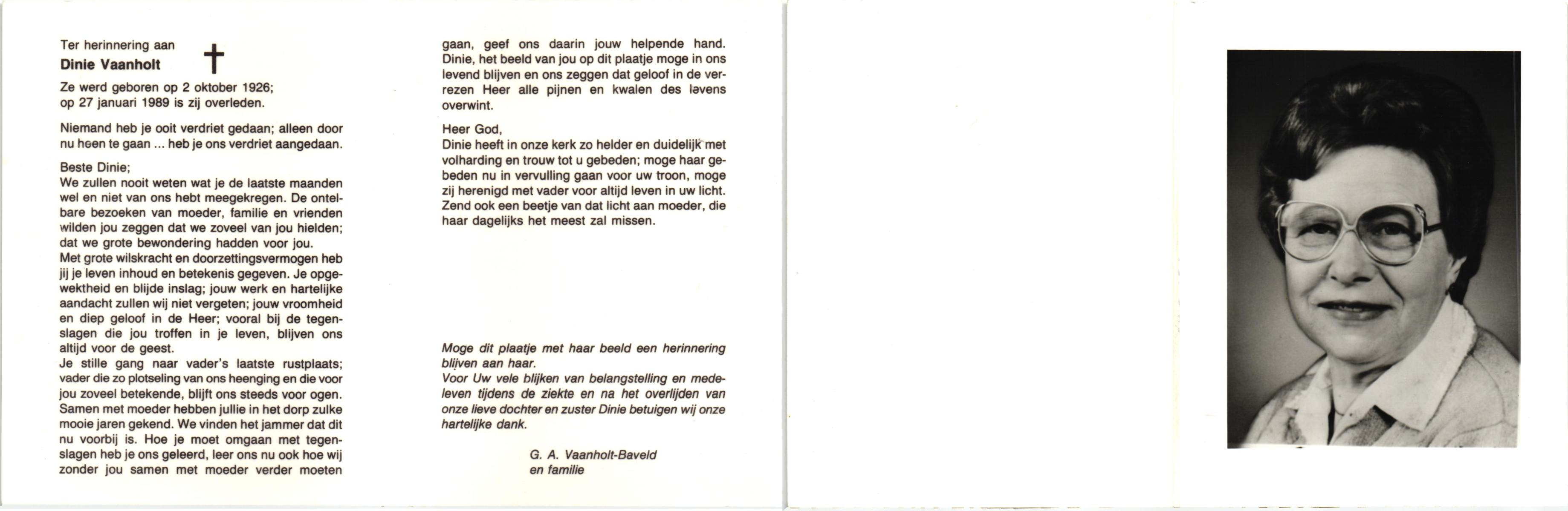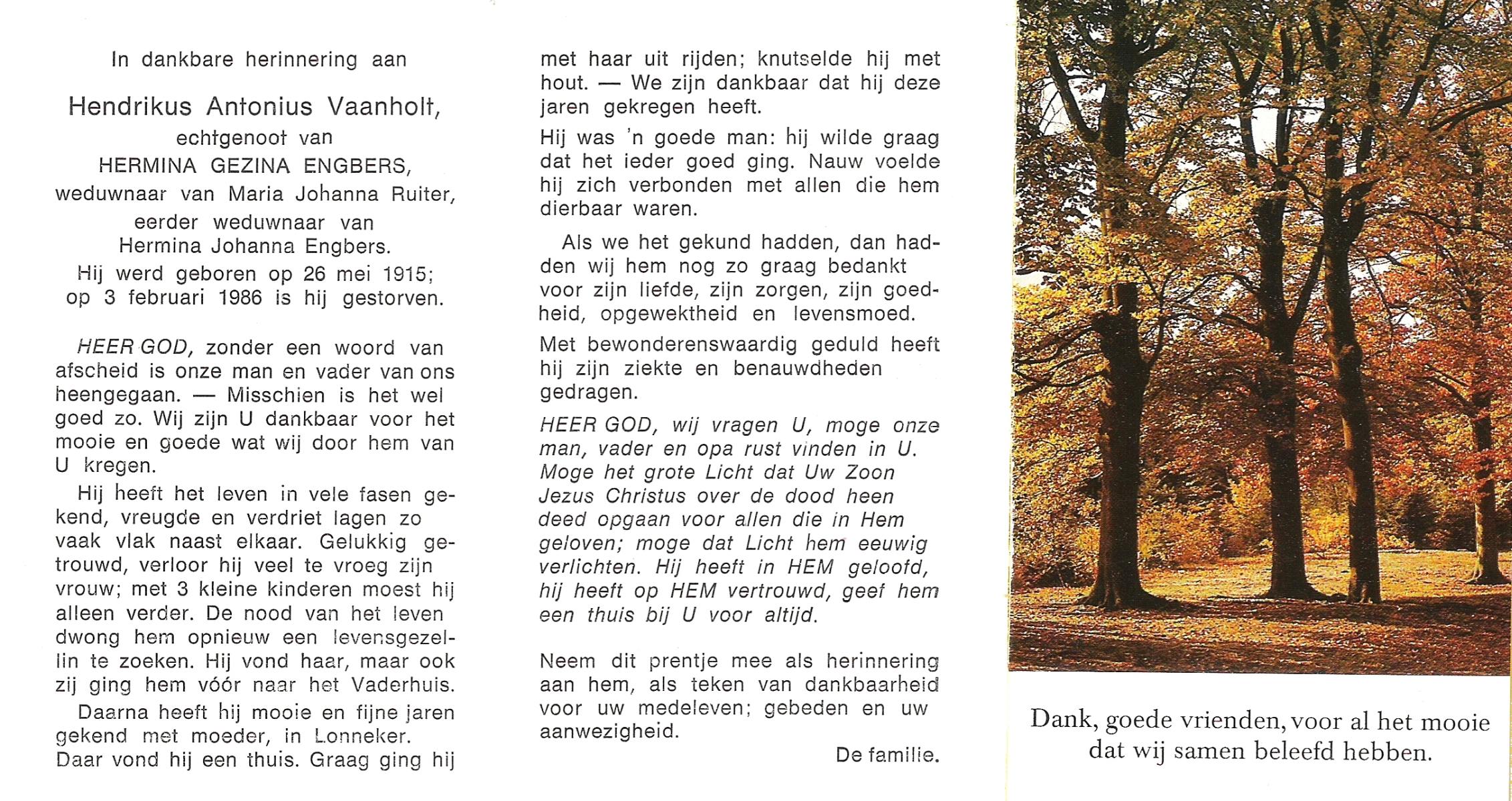 VEGTE, v.d., Hendrika Antonia Maria, geboren op 11-5-1912 te Lemerlerveld, overleden op 28-11-1987 op 75-jarige leeftijd, begraven op 2-12-1987 te Dedemsvaart.
