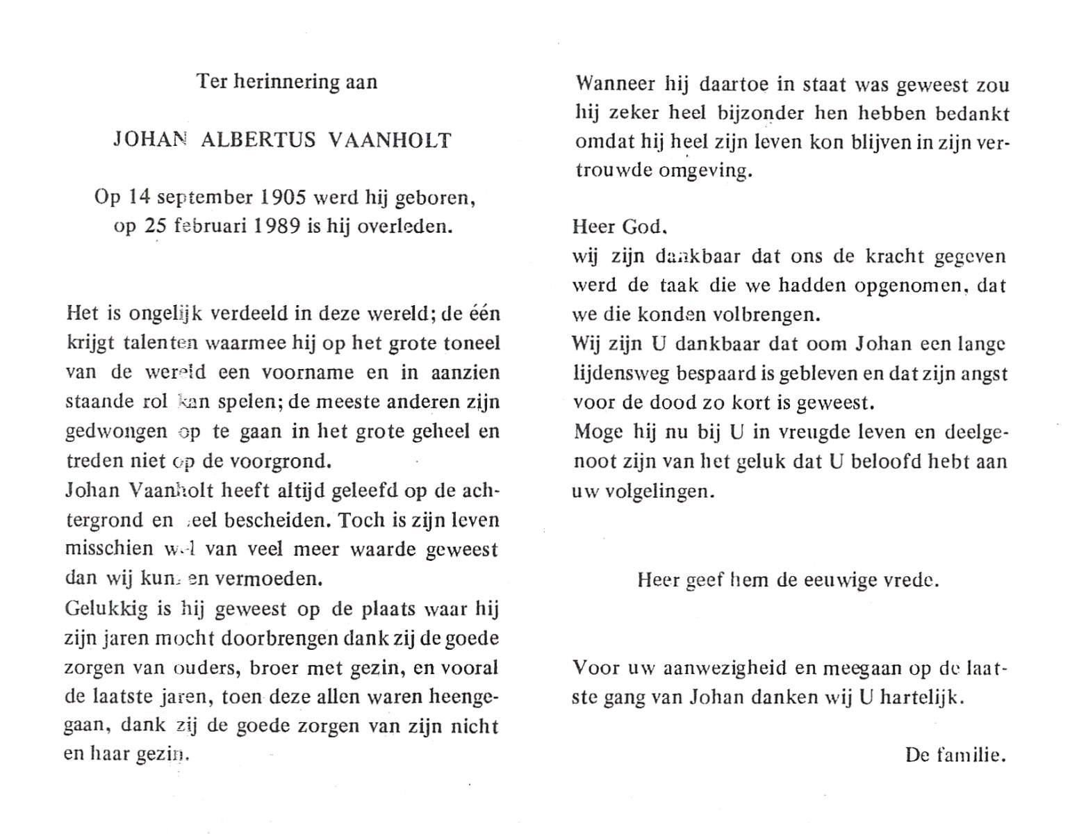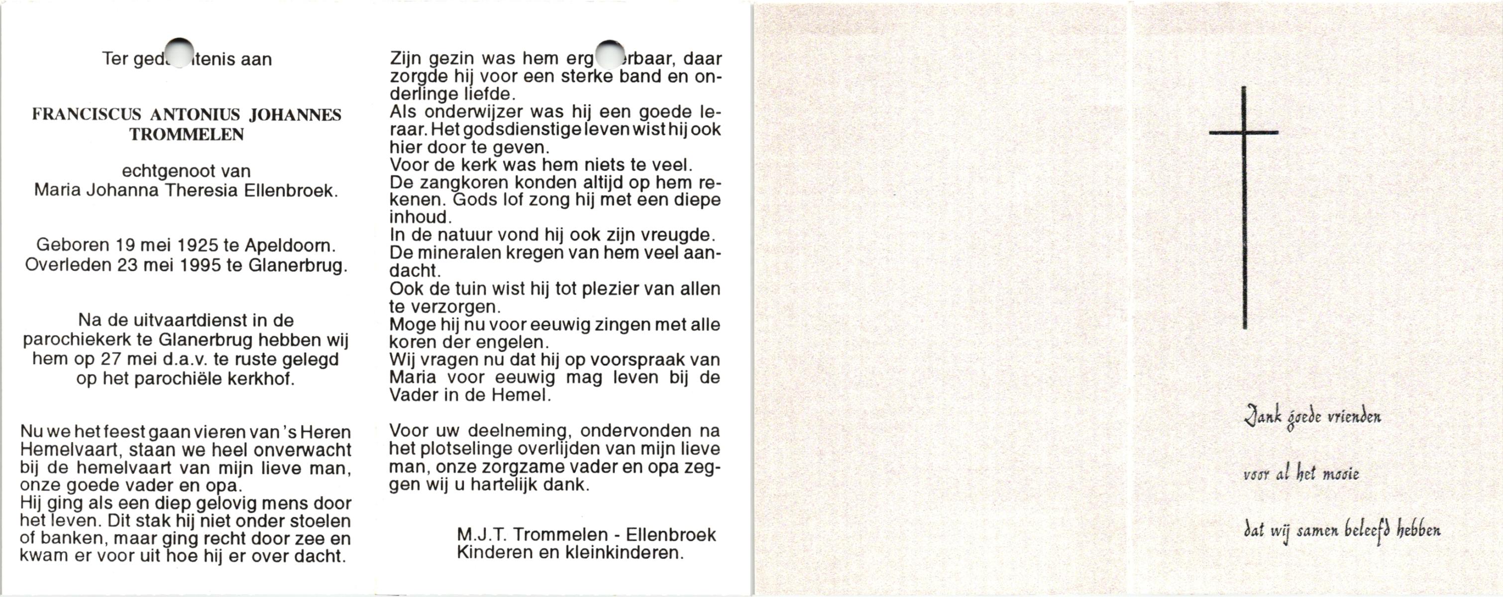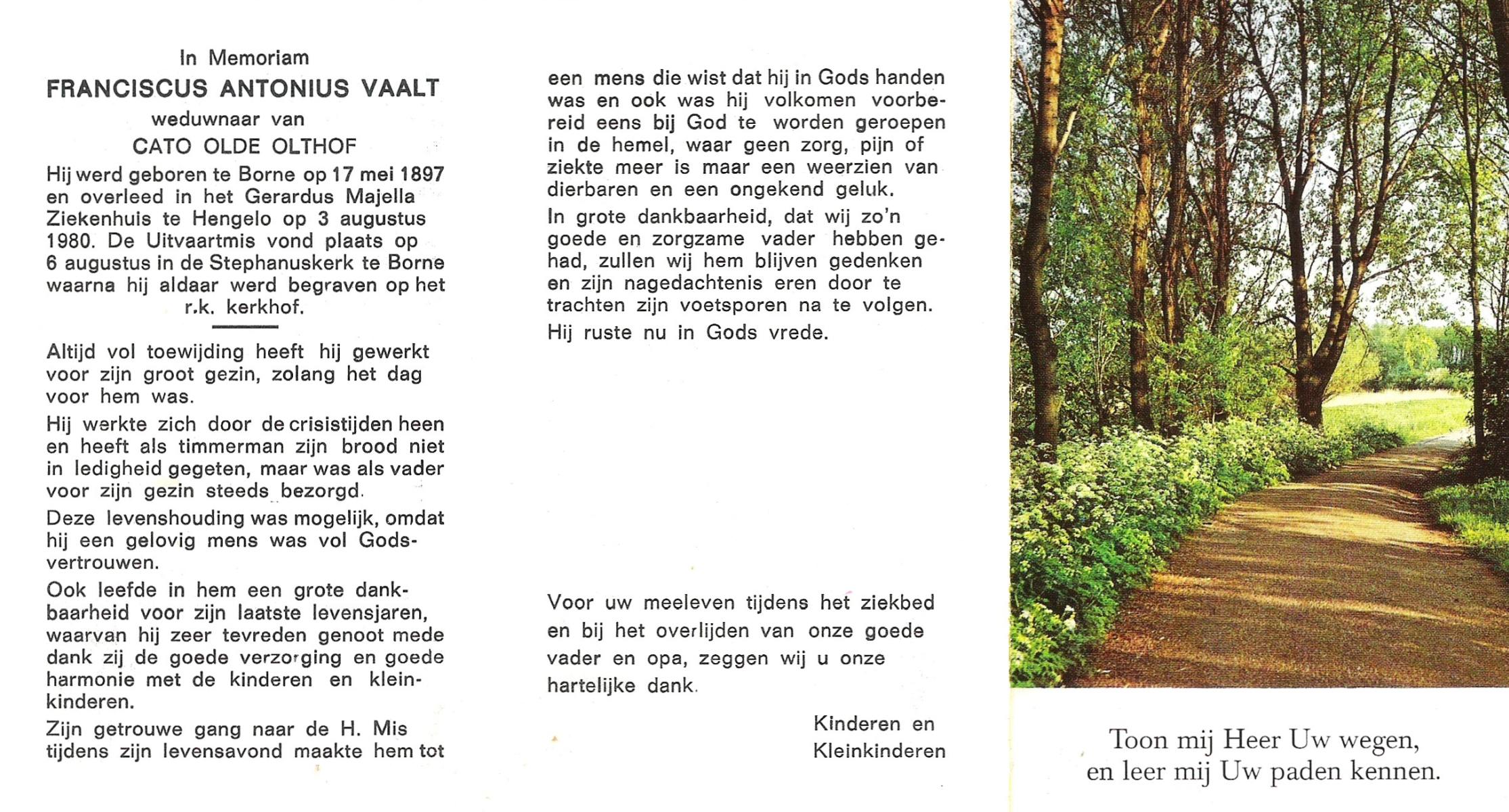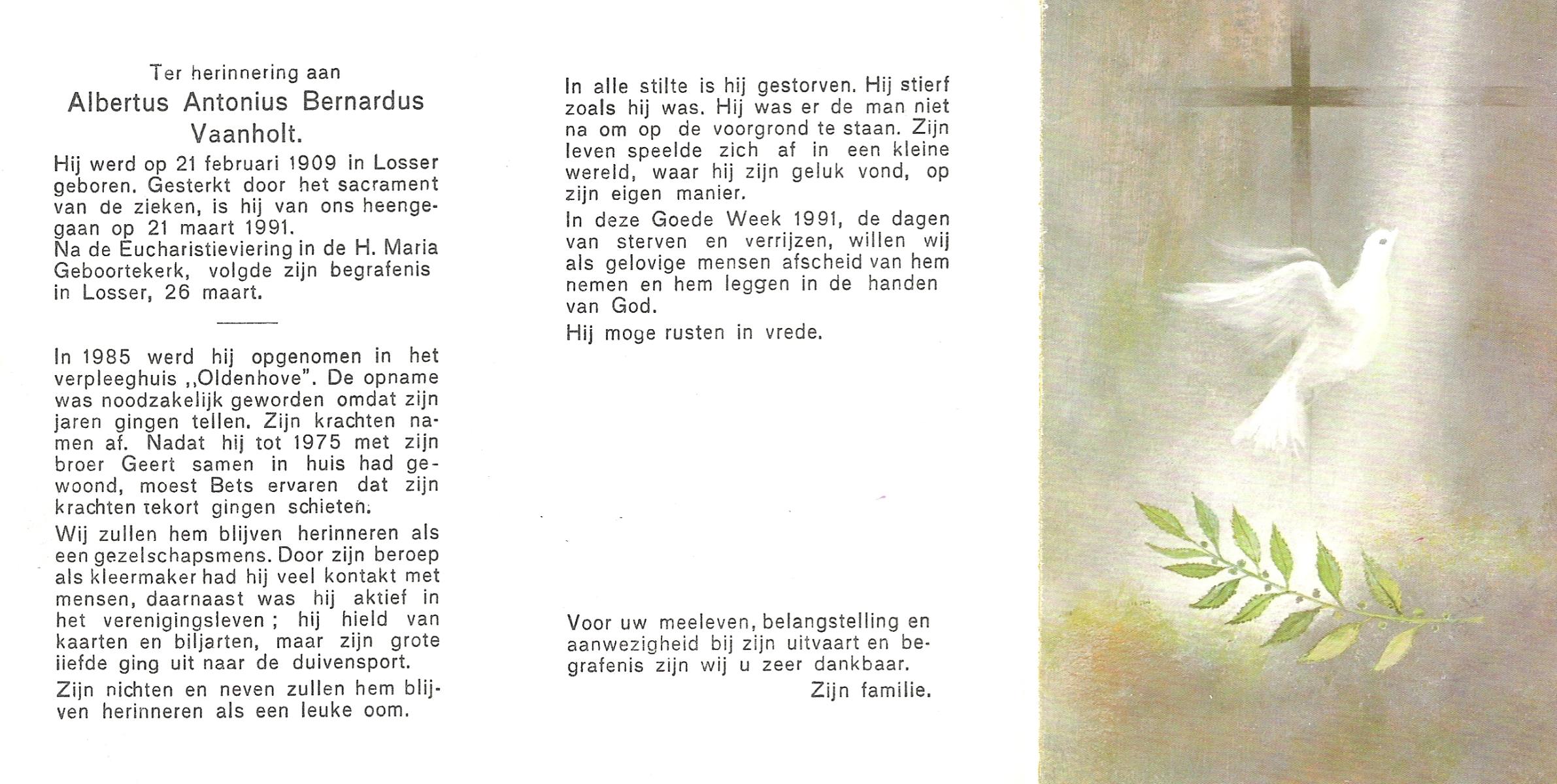 VEGT, van der, Antonie, geboren op 20-8-1917 te Deventer, overleden op 20-1-1990 te Hengelo (Ov.) op 72-jarige leeftijd, gecremeerd op 24-1-1990 te Usselo.