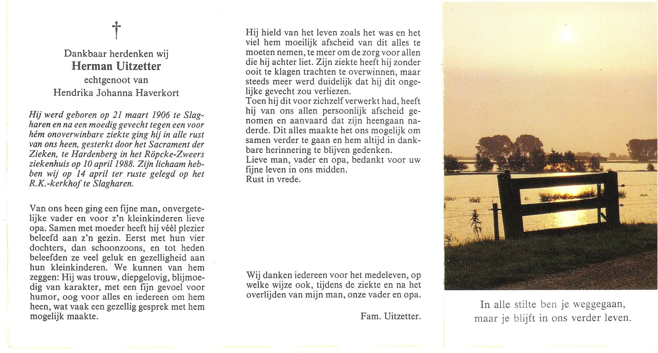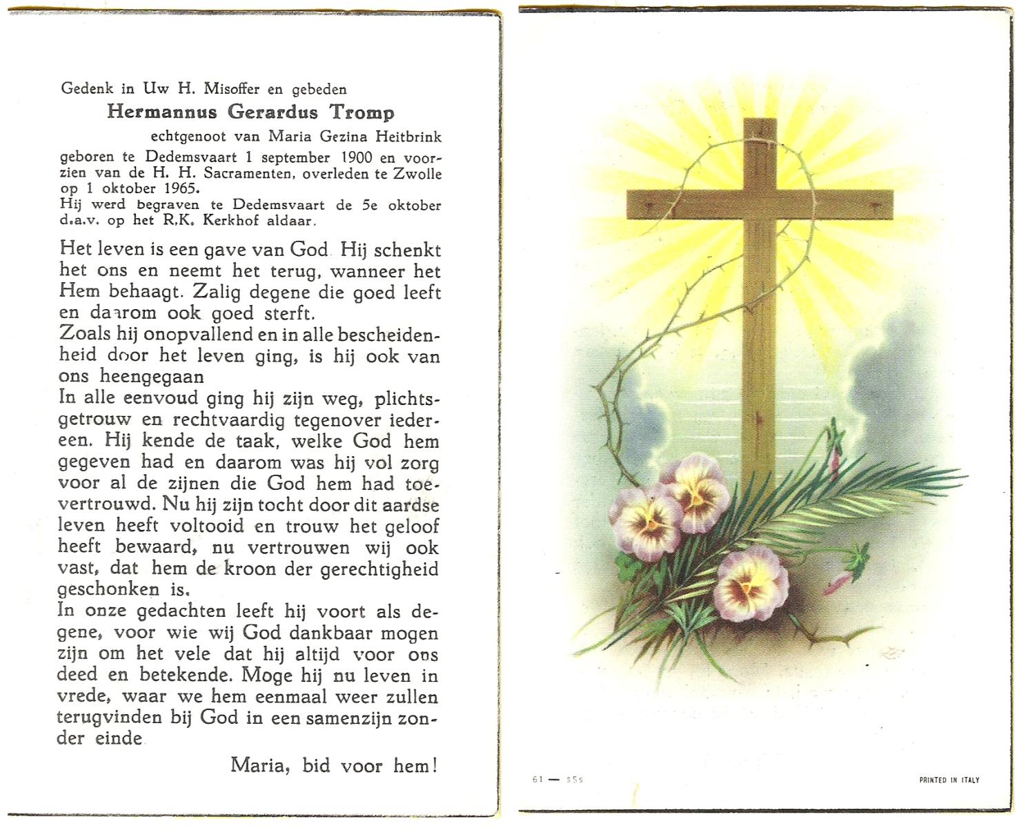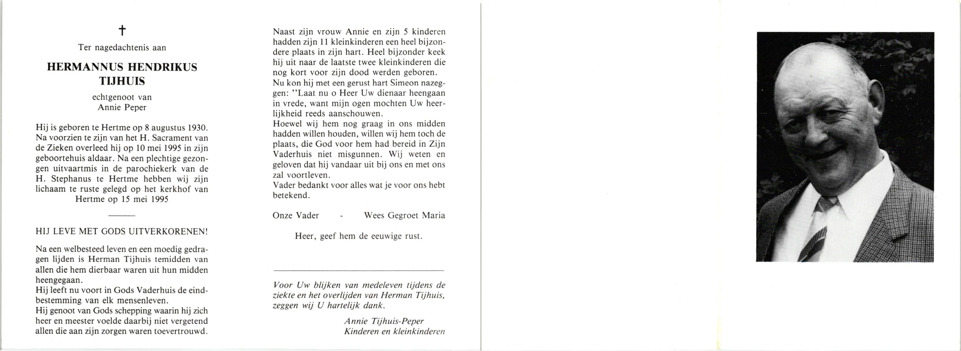 TIJHUIS, , Hermannus Hendrikus, geboren op 8-8-1930 te Hertme, overleden op 10-5-1995 te Hertme op 64-jarige leeftijd, begraven op 15-5-1995 te Hertme.