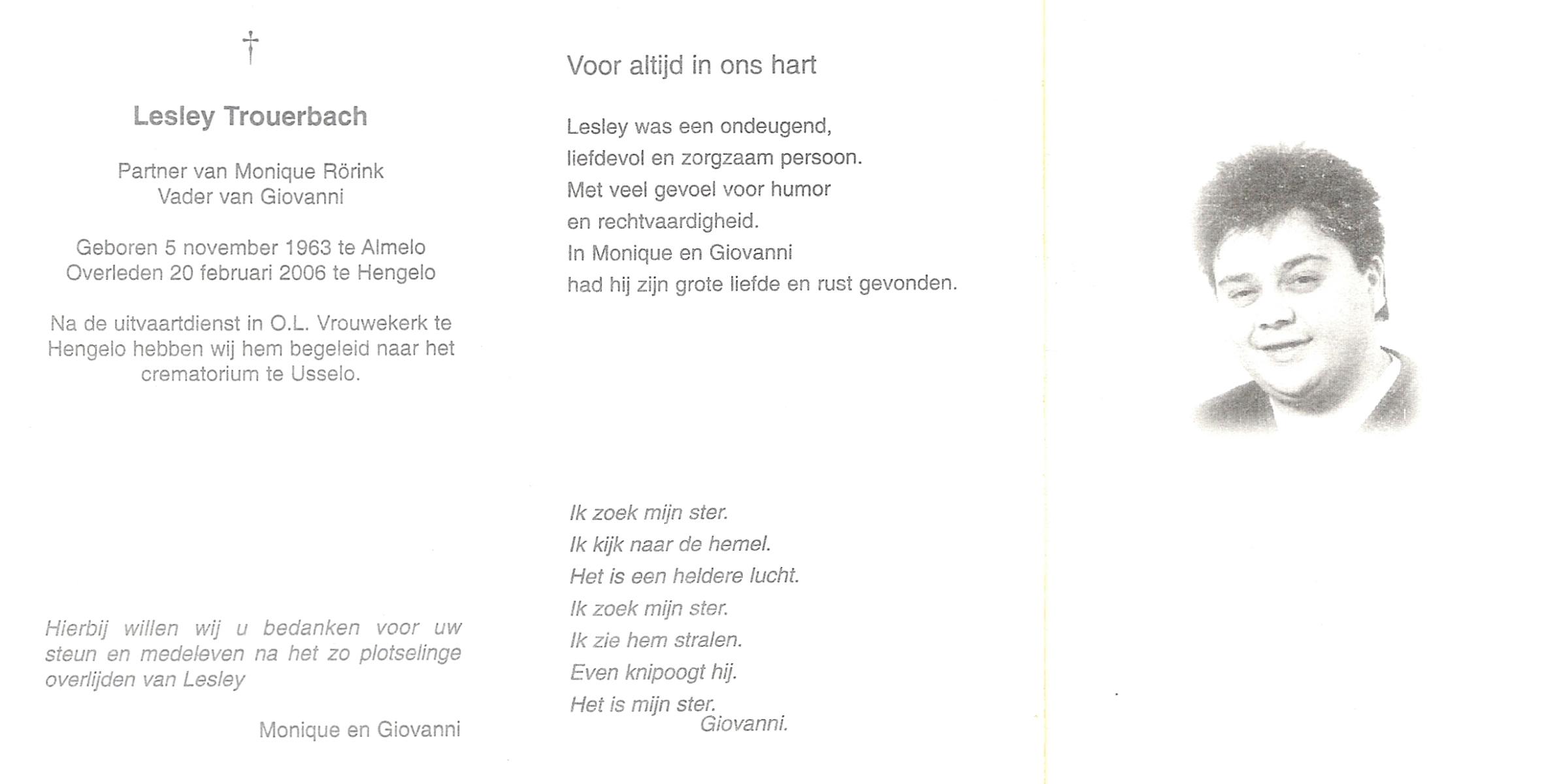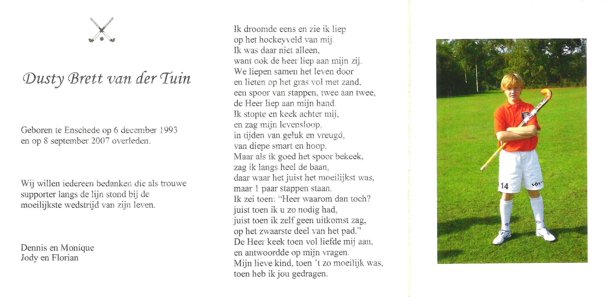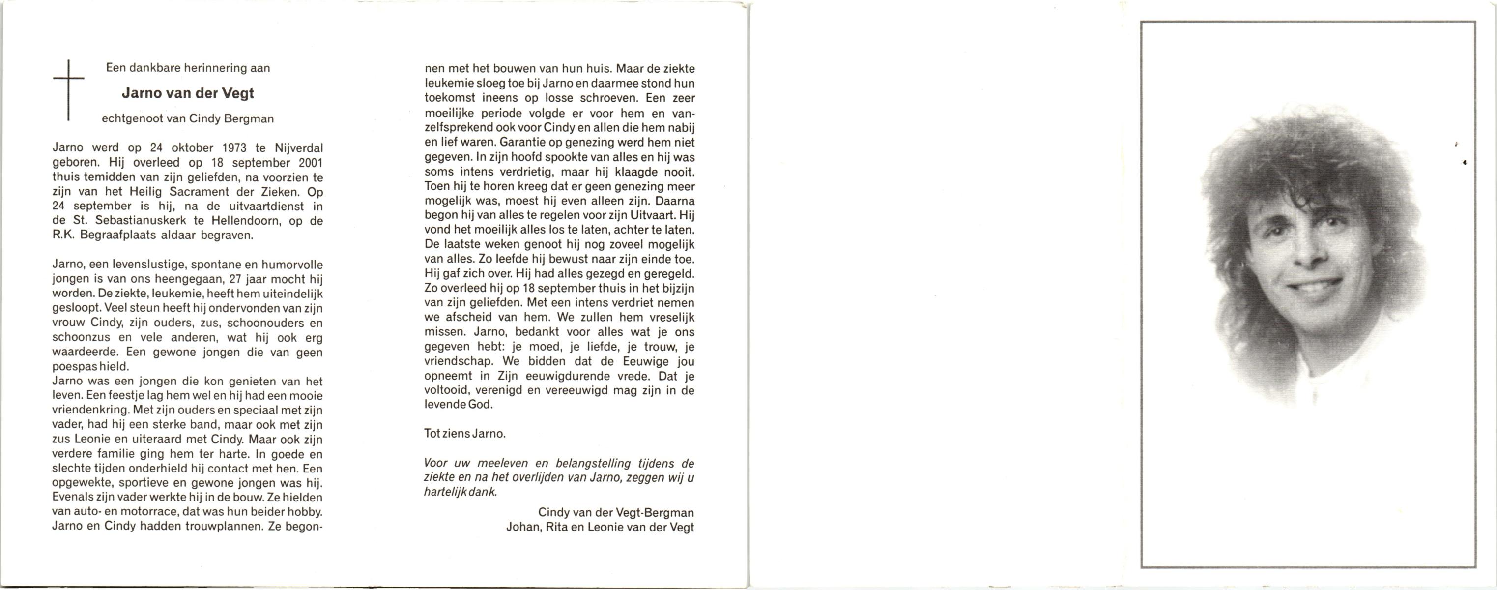 VEGT, van der, Jarno, geboren op 24-10-1973 te Hellendoorn, Nijverdal, overleden op 18-9-2001 te Hellendoorn op 27-jarige leeftijd, begraven op 24-9-2001 te Hellendoorn, rk.