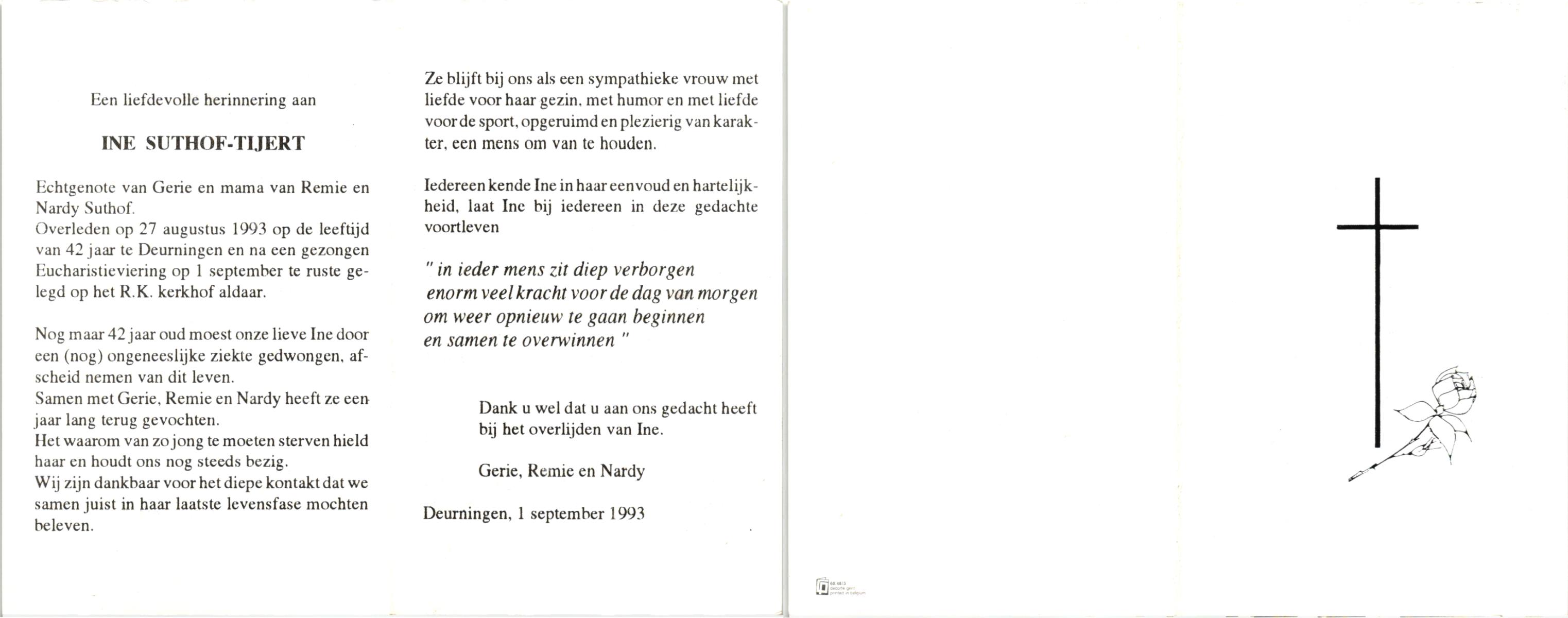 TIJERT, , Ine, overleden op 27-8-1993 te Deurningen op 42-jarige leeftijd, begraven op 1-9-1993 te Deurningen.