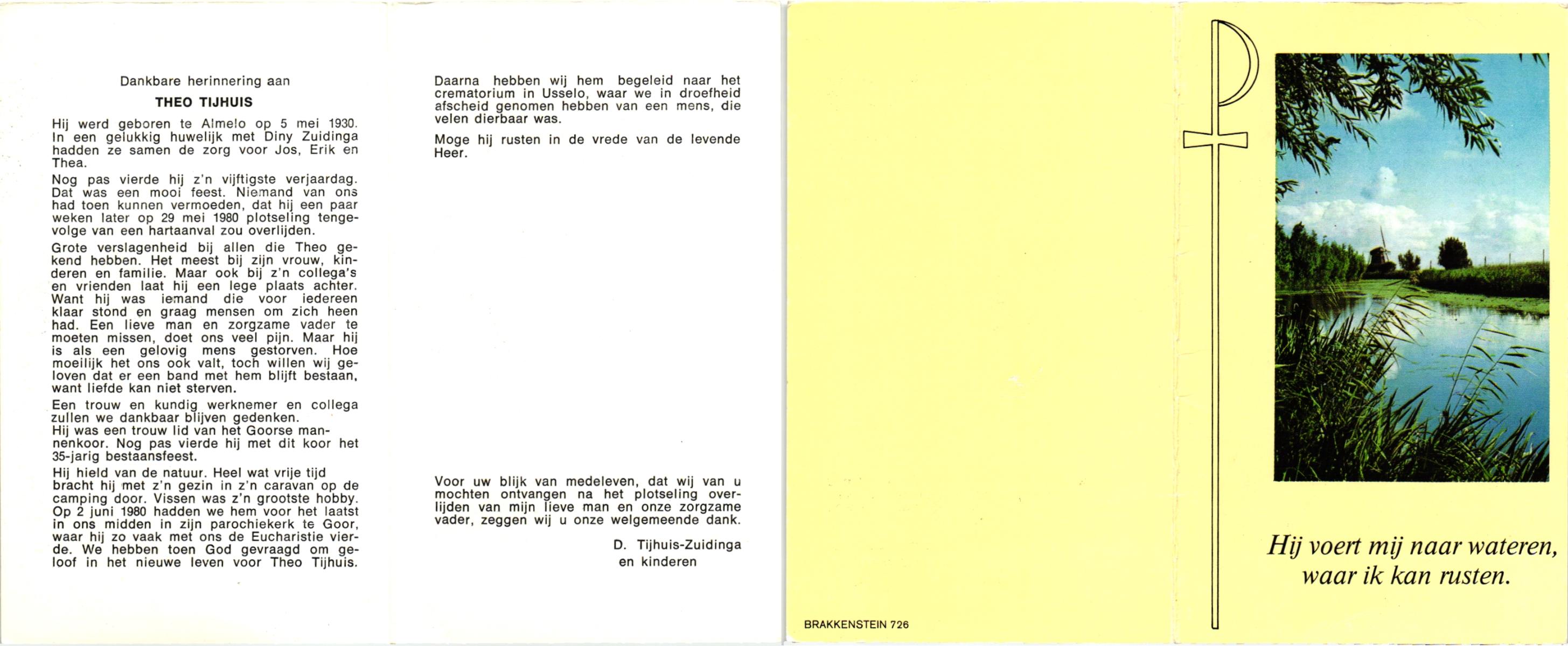 TIJHUIS, , Theo, geboren op 5-5-1930 te Almelo, overleden op 29-5-1980 op 50-jarige leeftijd, gecremeerd op 2-6-1980 te Usselo.