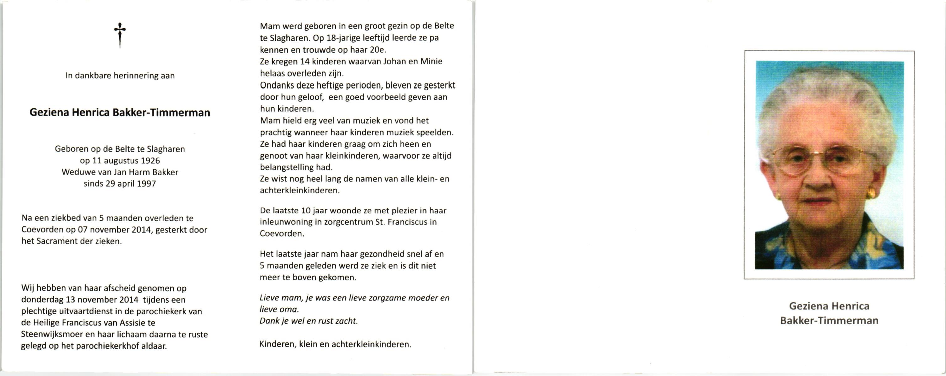 VEERKAMP, Gezina Elizabeth, geboren op 8-4-1917 te Den Ham, overleden op 7-3-2011 te Almelo op 97-jarige leeftijd.