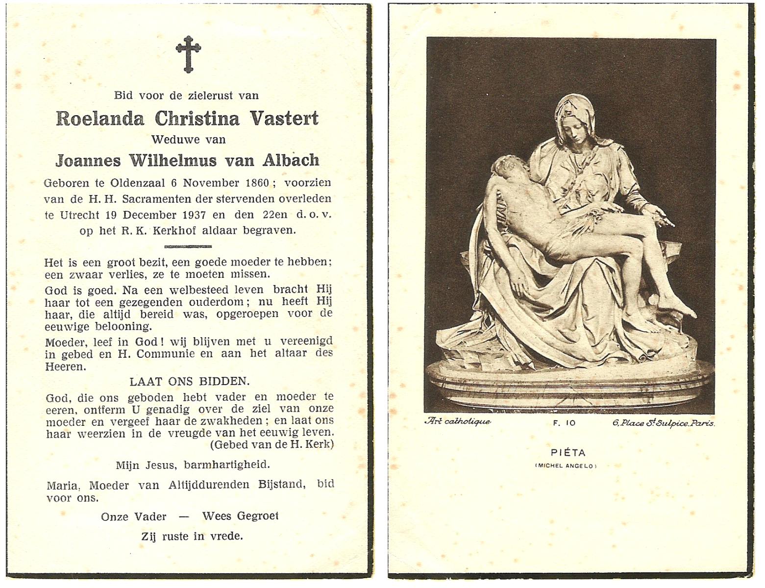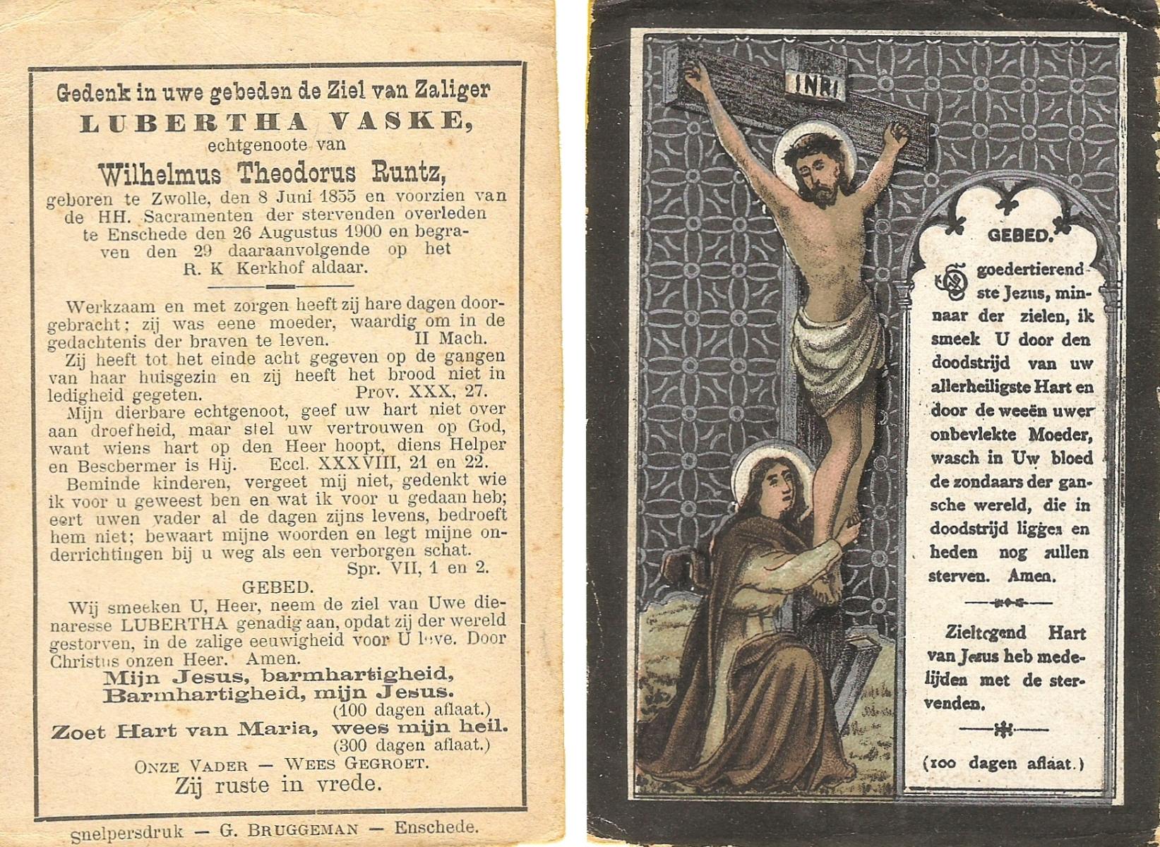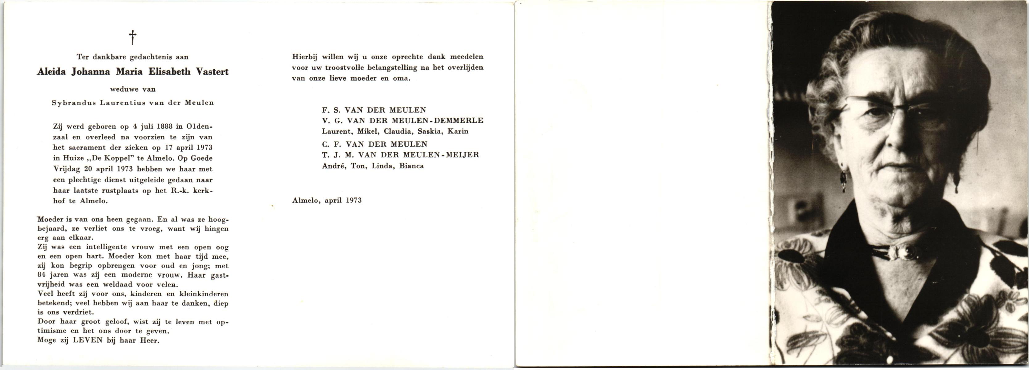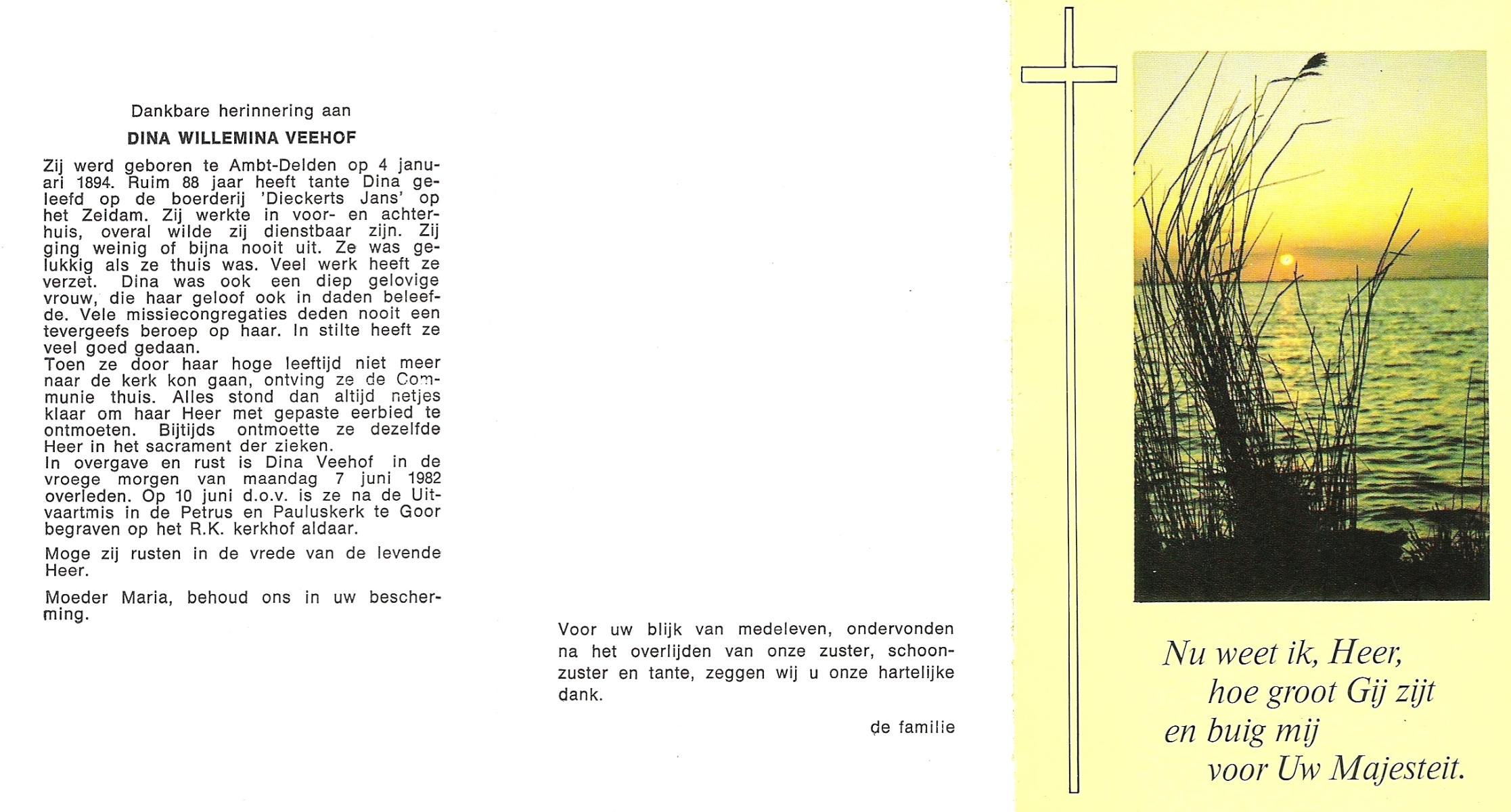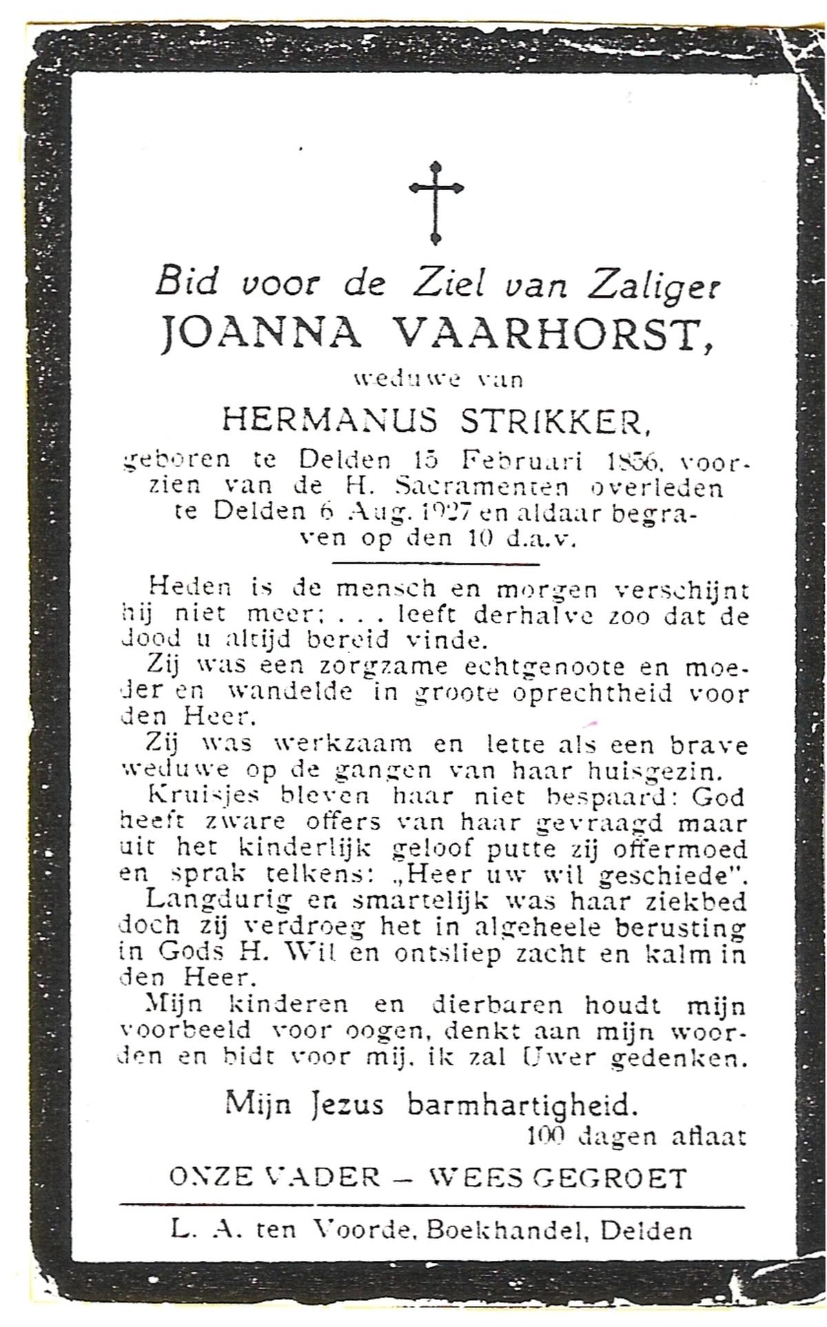 VEHOF, Aleida, geboren op 19-08-1866 te Zeldam, overleden op 4-8-1954 te Bentelo op 87-jarige leeftijd, begraven op 7-8-1954 te Delden.