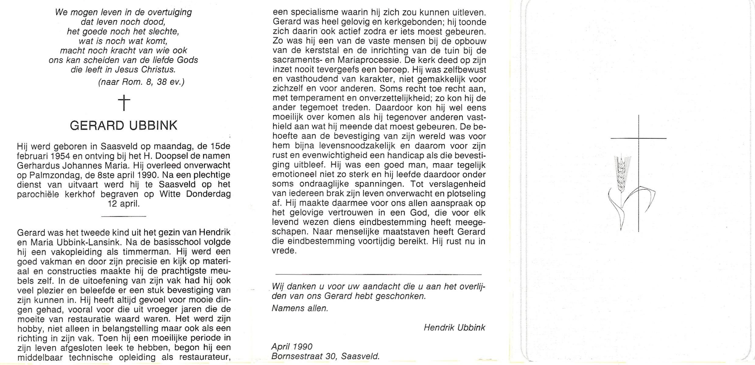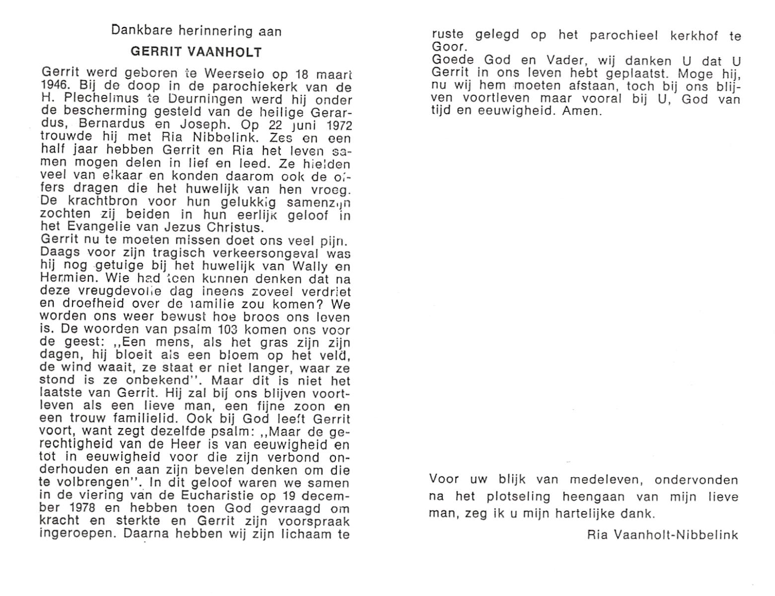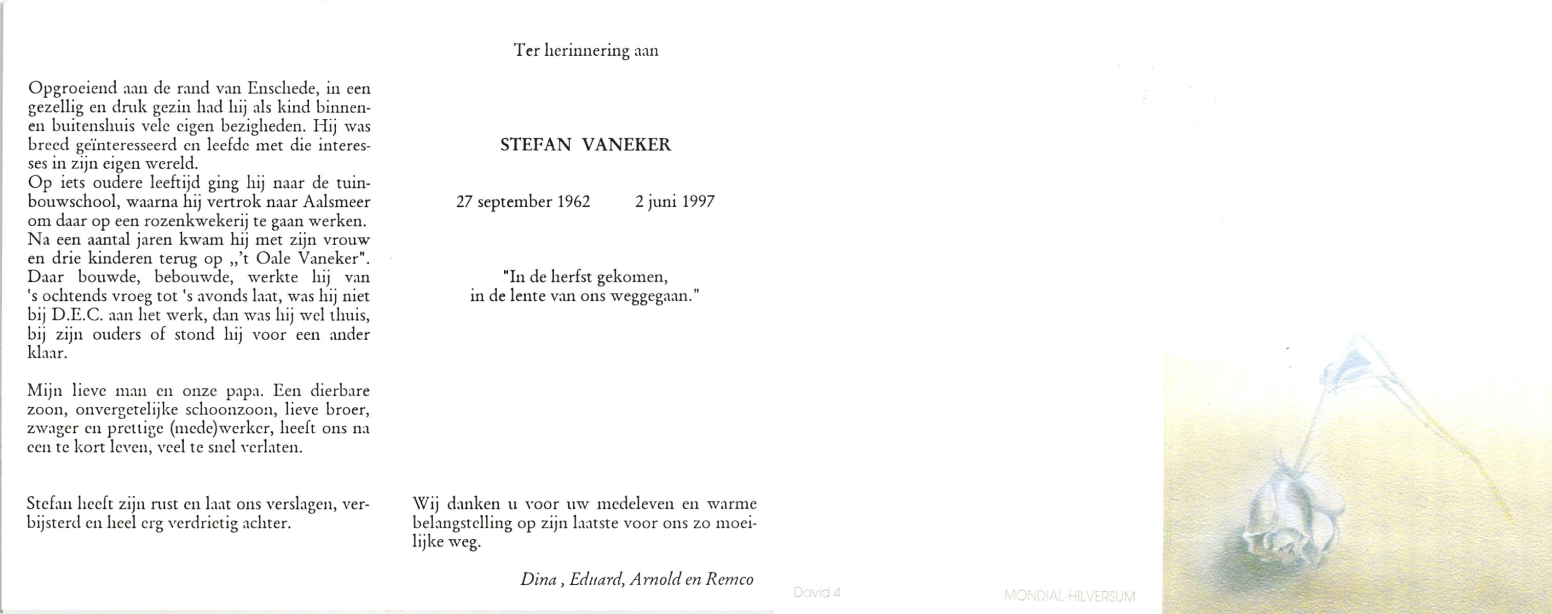 VEEN, van, Gerhardus Johannes (Gerhard), geboren op 17-3-1940 te Glanerbrug, overleden op 23-1-1992 te Glanerbrug op 51-jarige leeftijd, gecremeerd te Usselo.