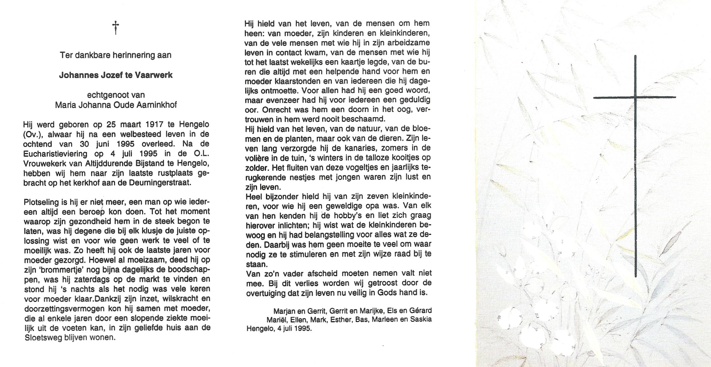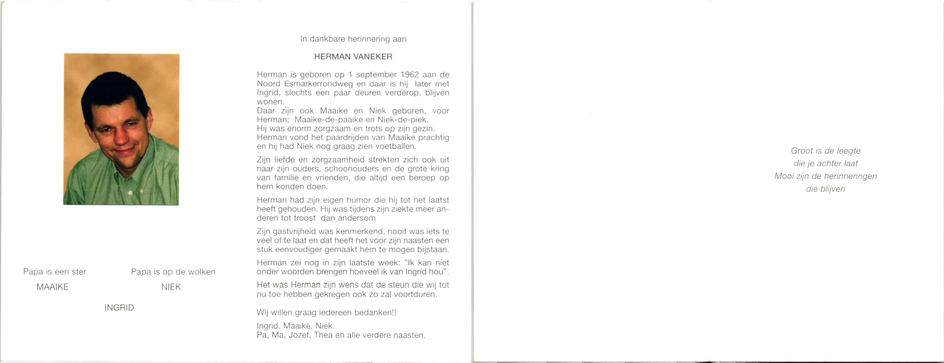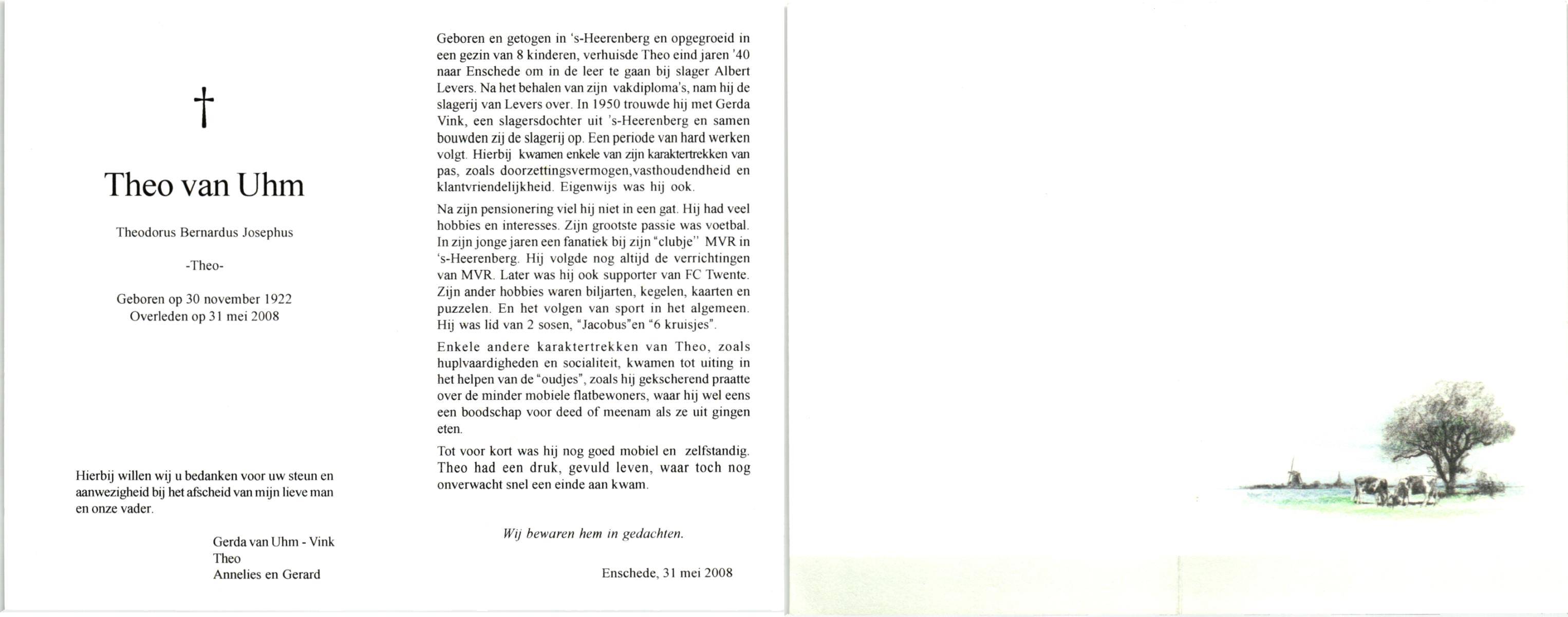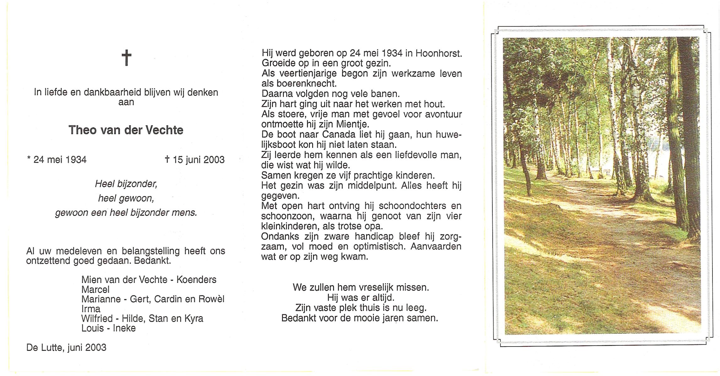 VEGT, van der, Herman, geboren op 5-9-1918 te Hellendoorn, overleden op 15-8-2006 te Ewijk op 87-jarige leeftijd, begraven op 19-8-2006 te Denekamp.