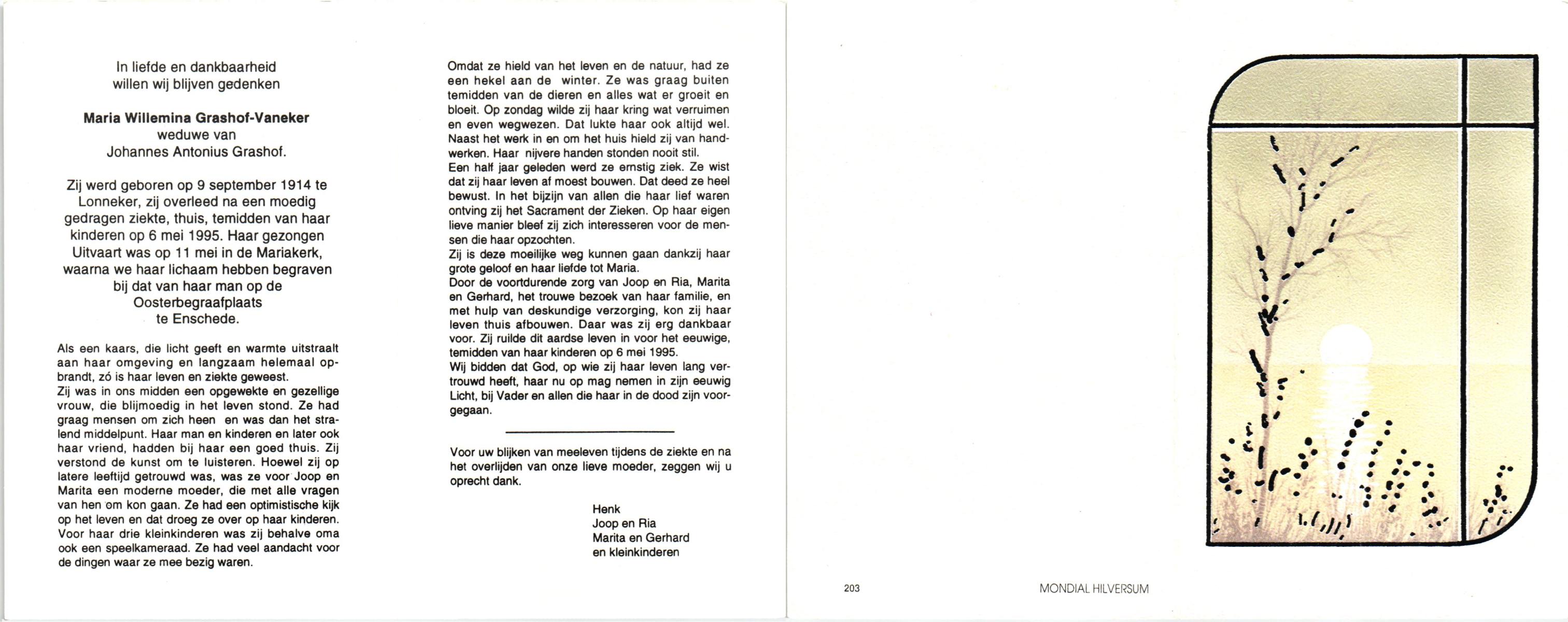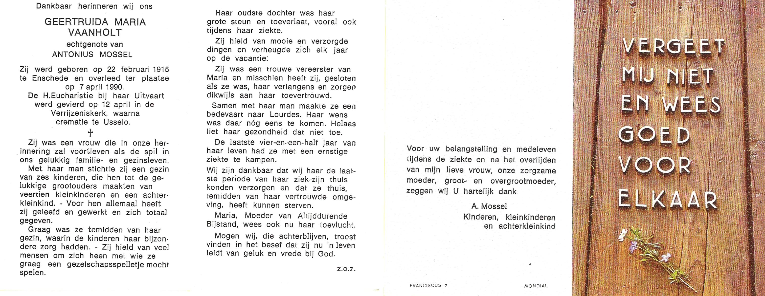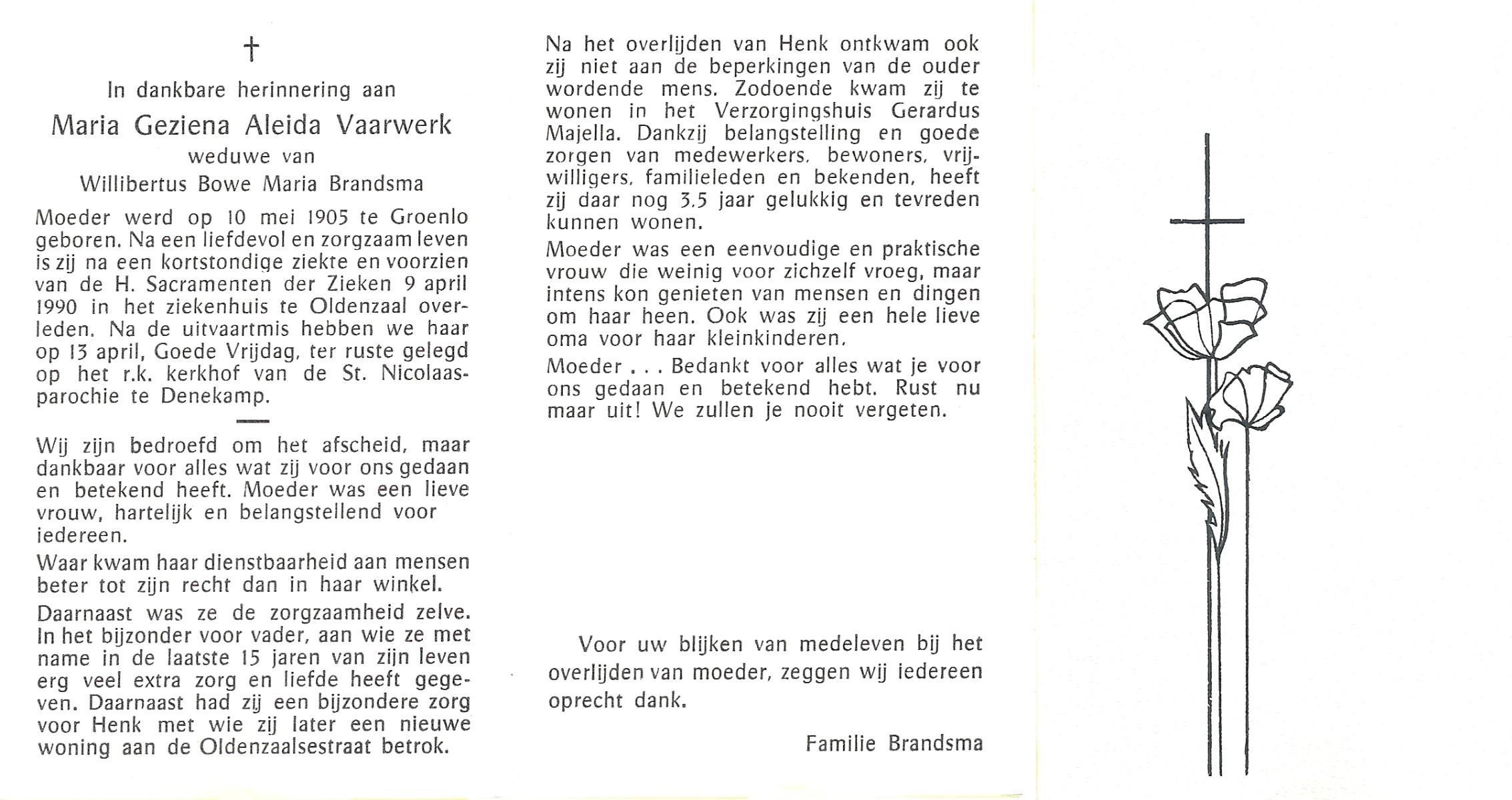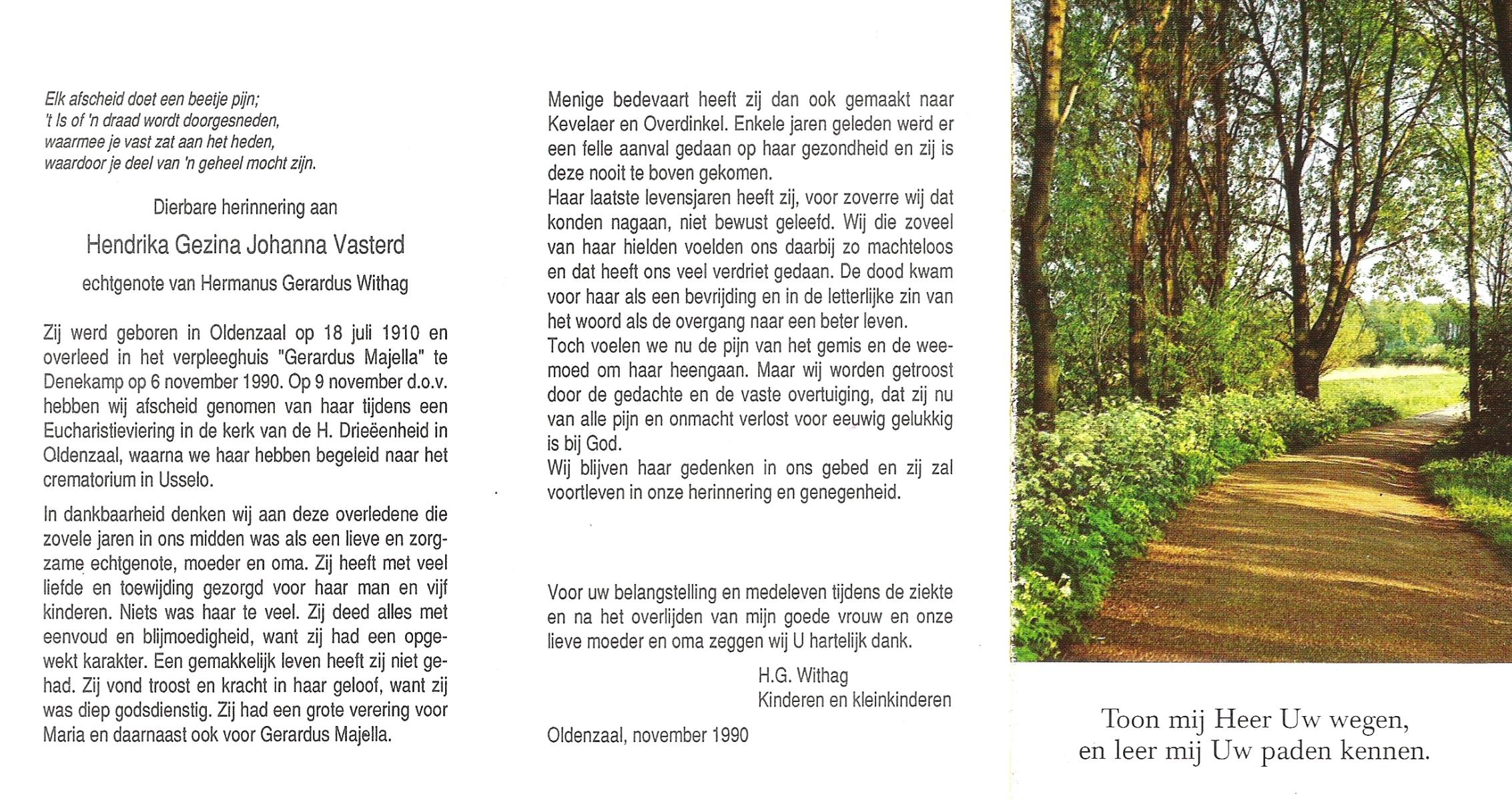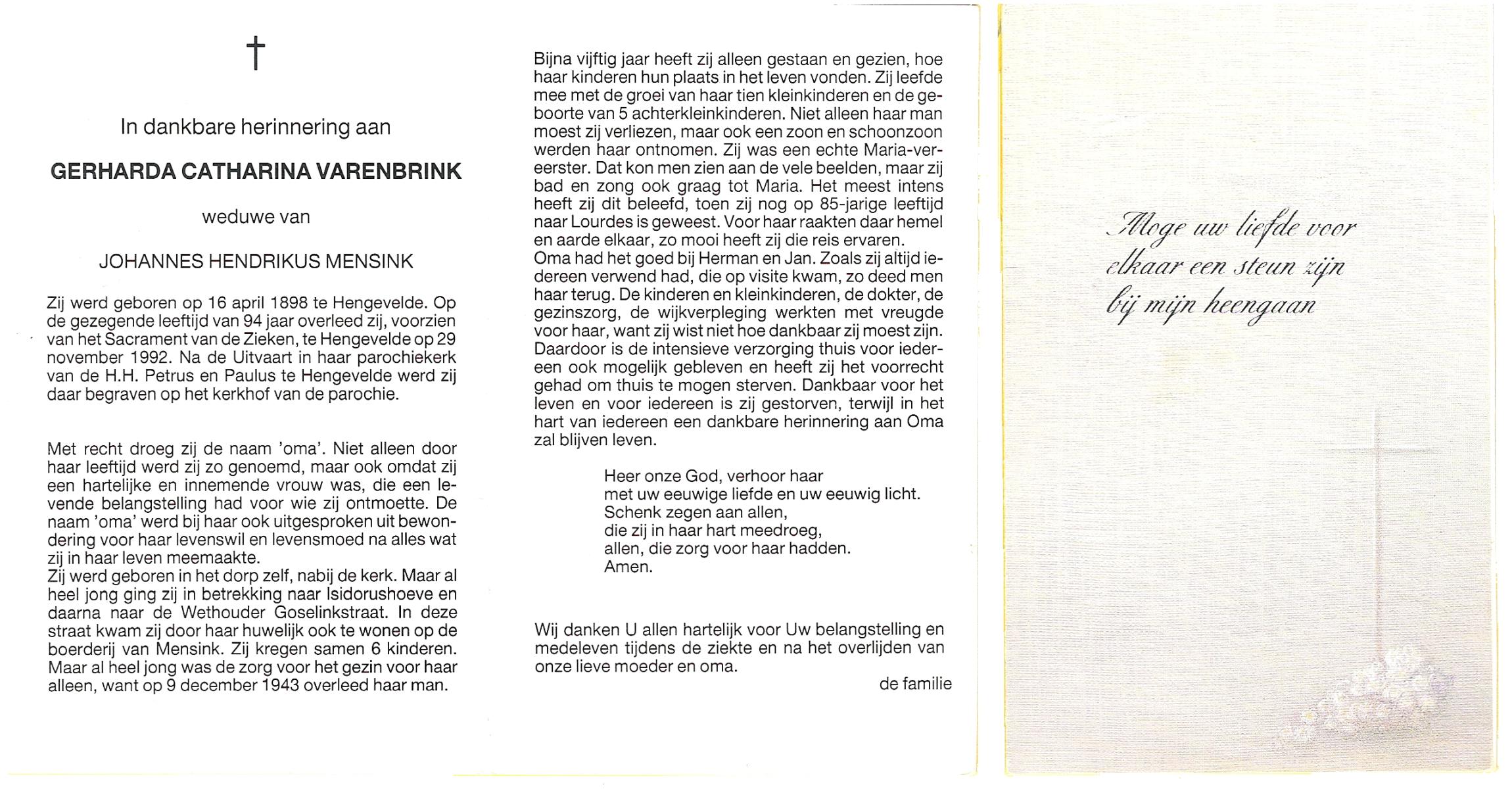 VEGER, Gesina Maria, geboren op 8-5-1903 te Lonneker, overleden op 15-11-1993 te Losser op 90-jarige leeftijd, gecremeerd op 18-11-1993.