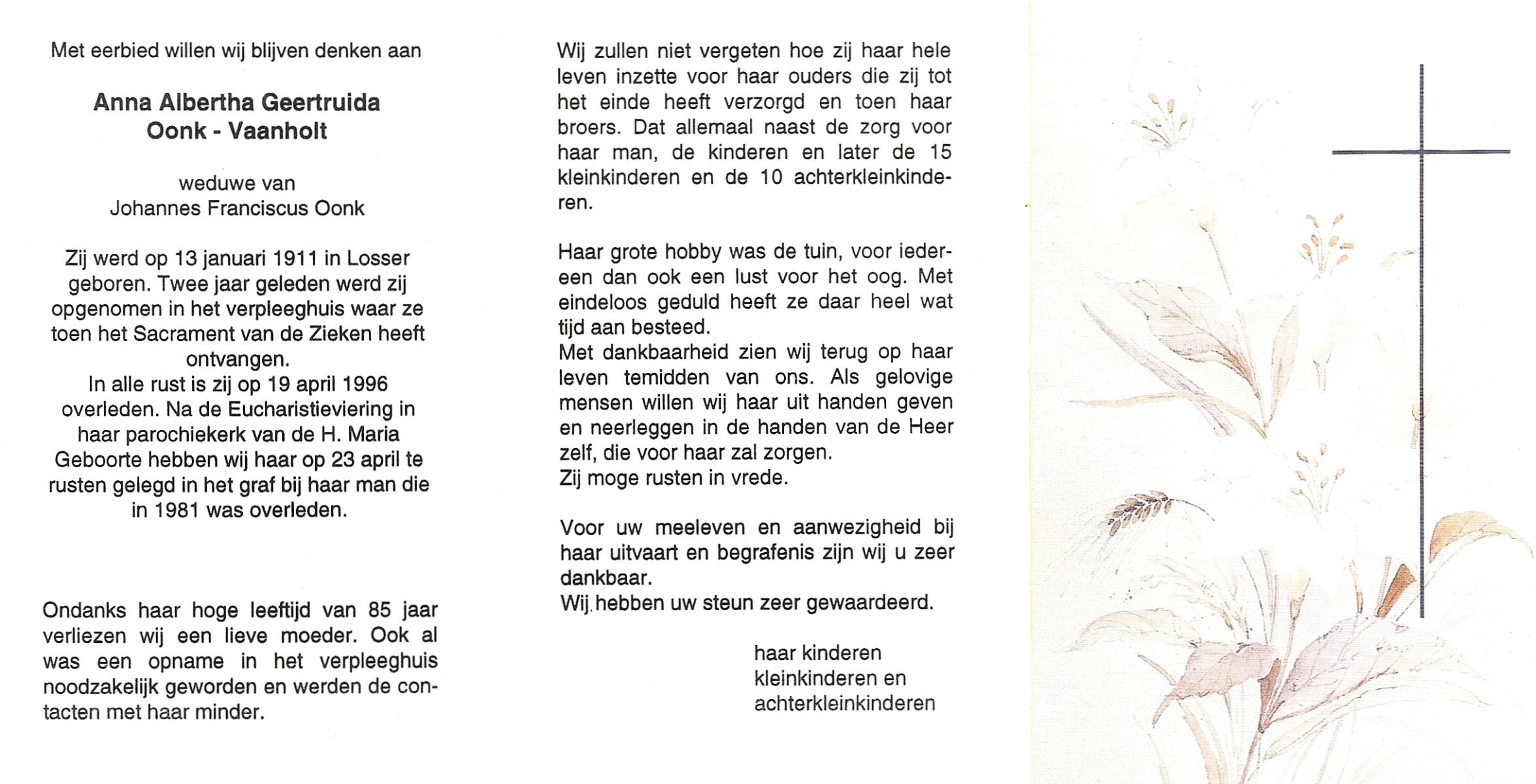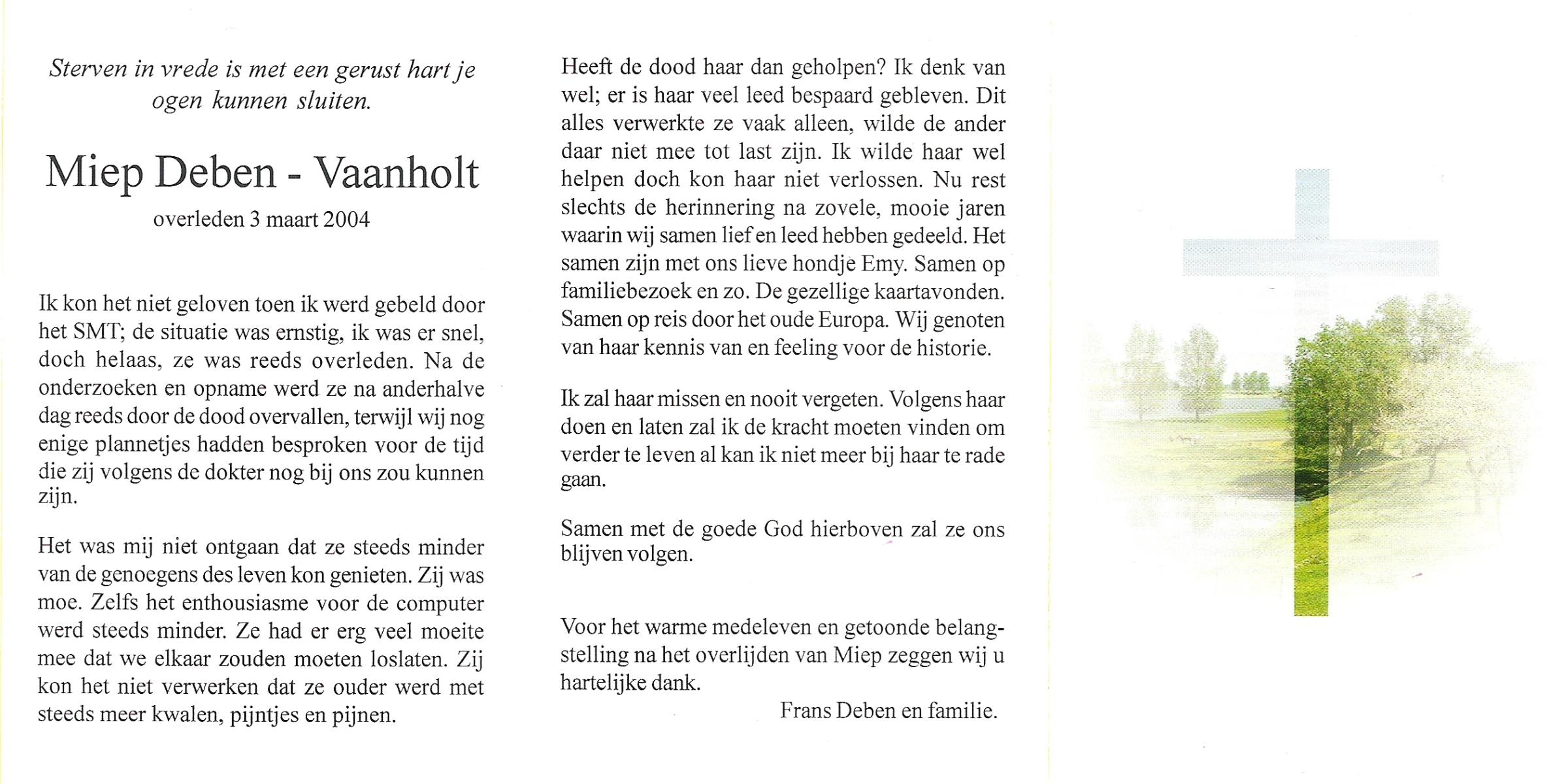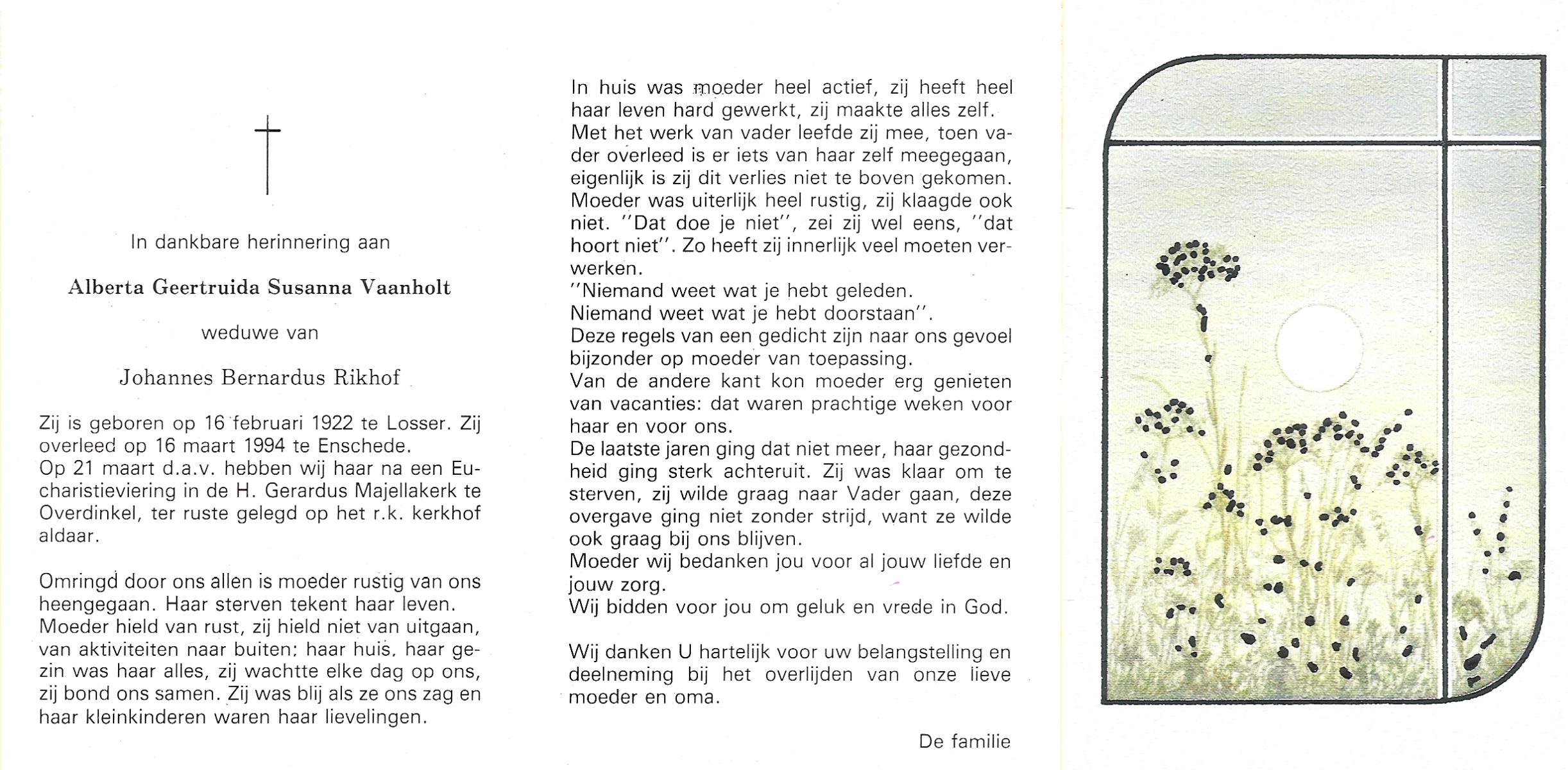 VEER, , Maria Anna Rosalia, geboren op 14-8-1918 te Vasse, overleden op 17-4-2004 te Borne op 85-jarige leeftijd, begraven op 22-4-2004 te Borne.