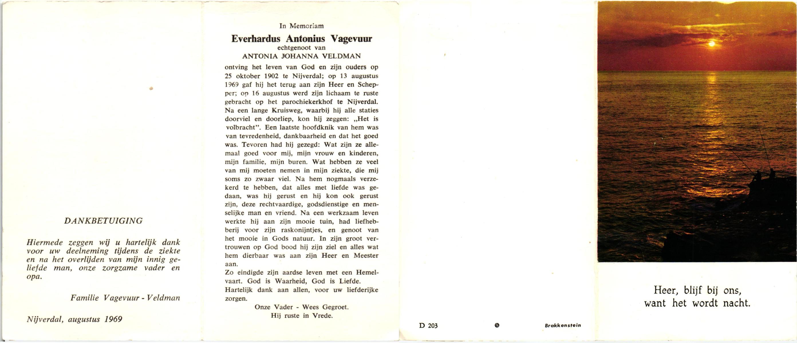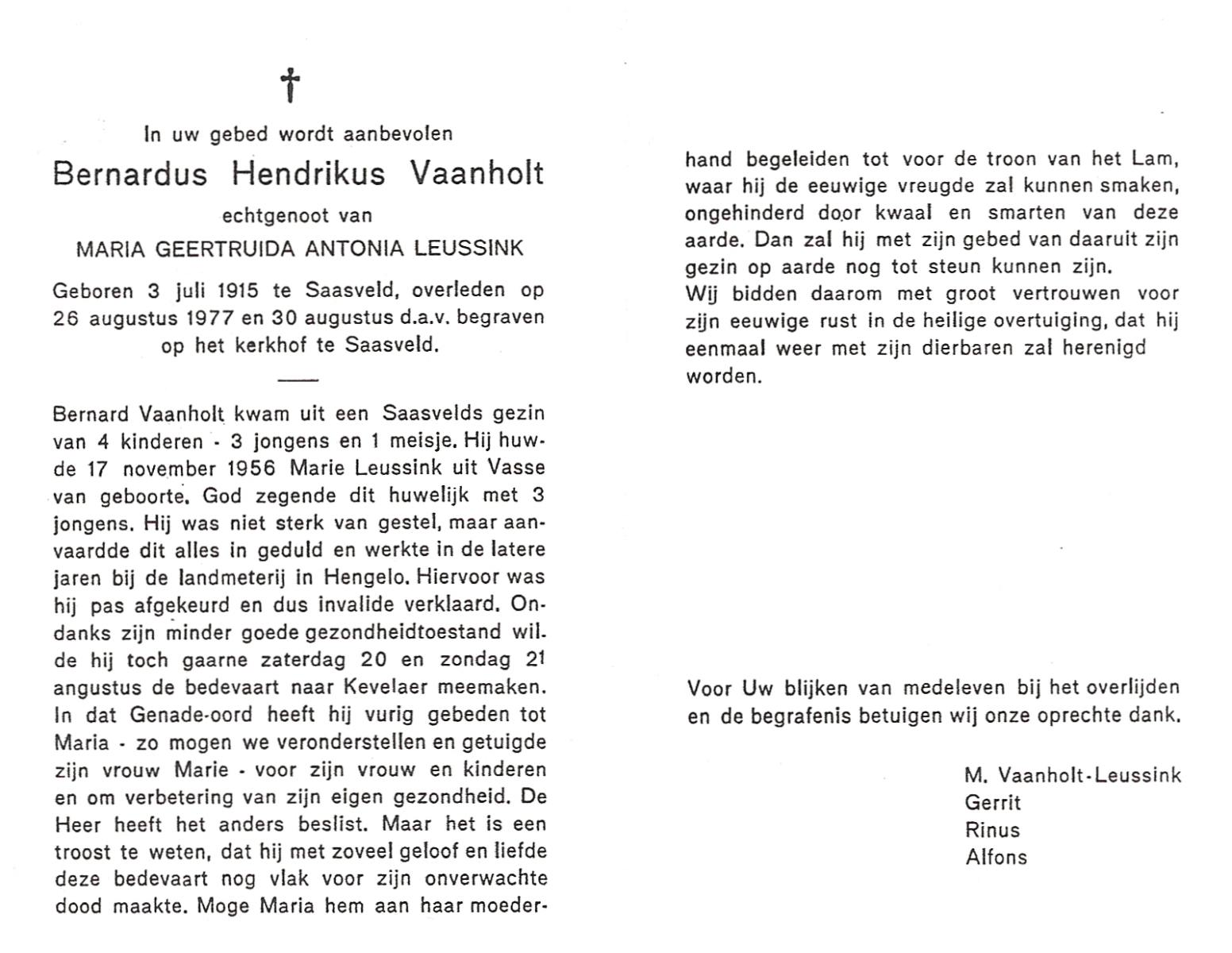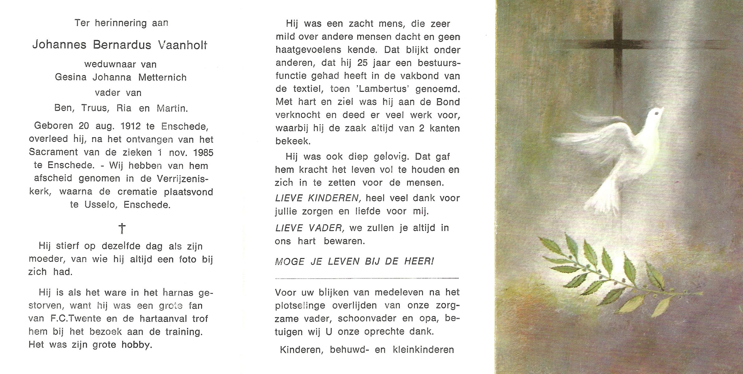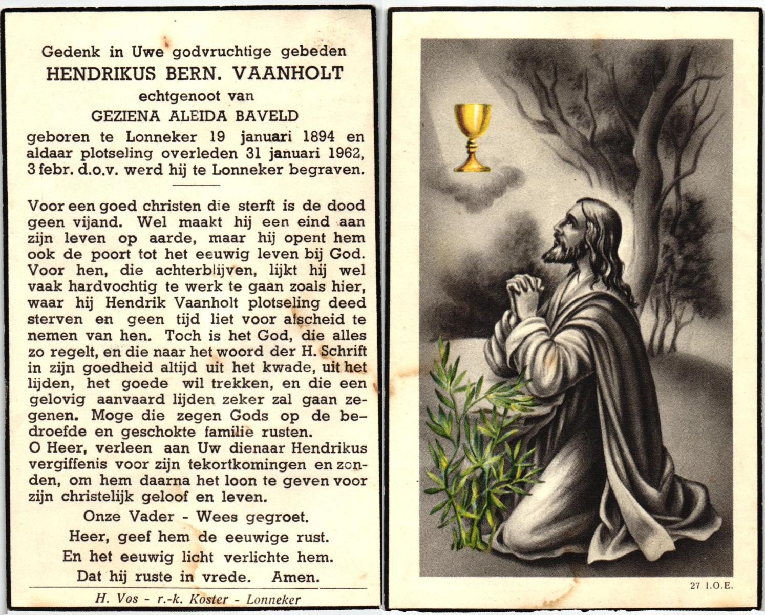 VEHOF, Bernardus Gerhardus, geboren op 04-01-1898 te Zeldam, overleden op 10-7-1987 te Hengelo (Ov.) op 89-jarige leeftijd.