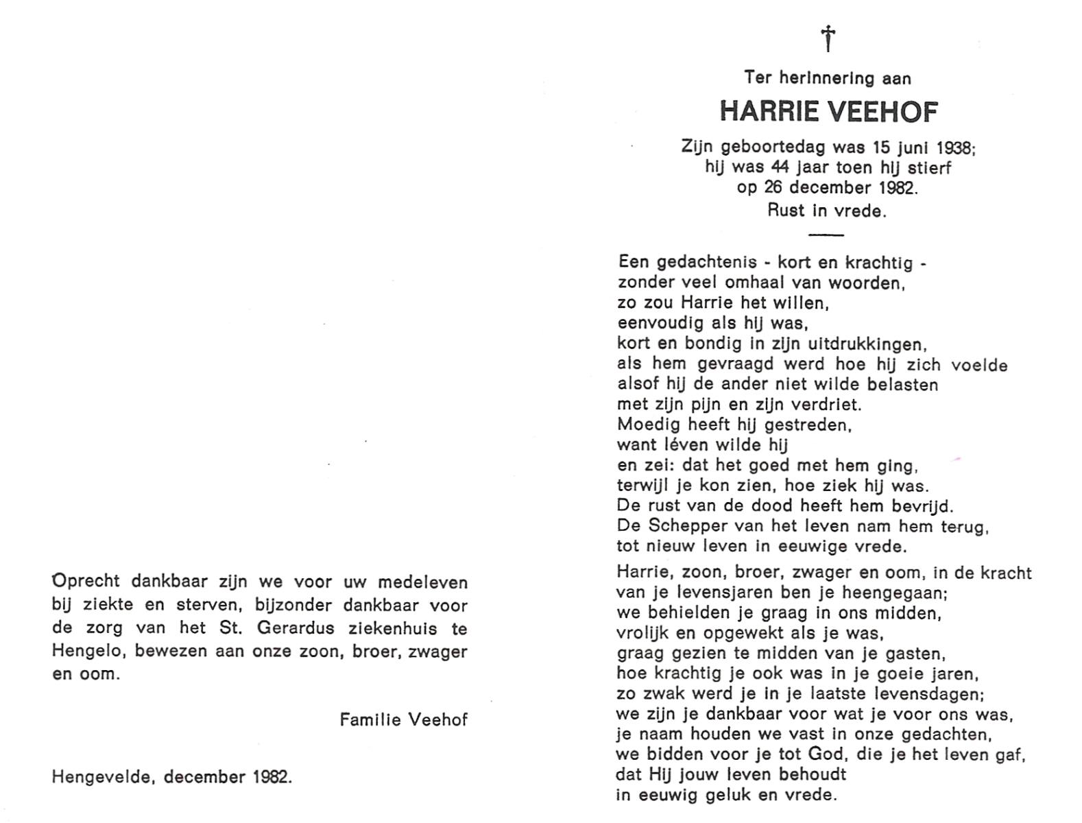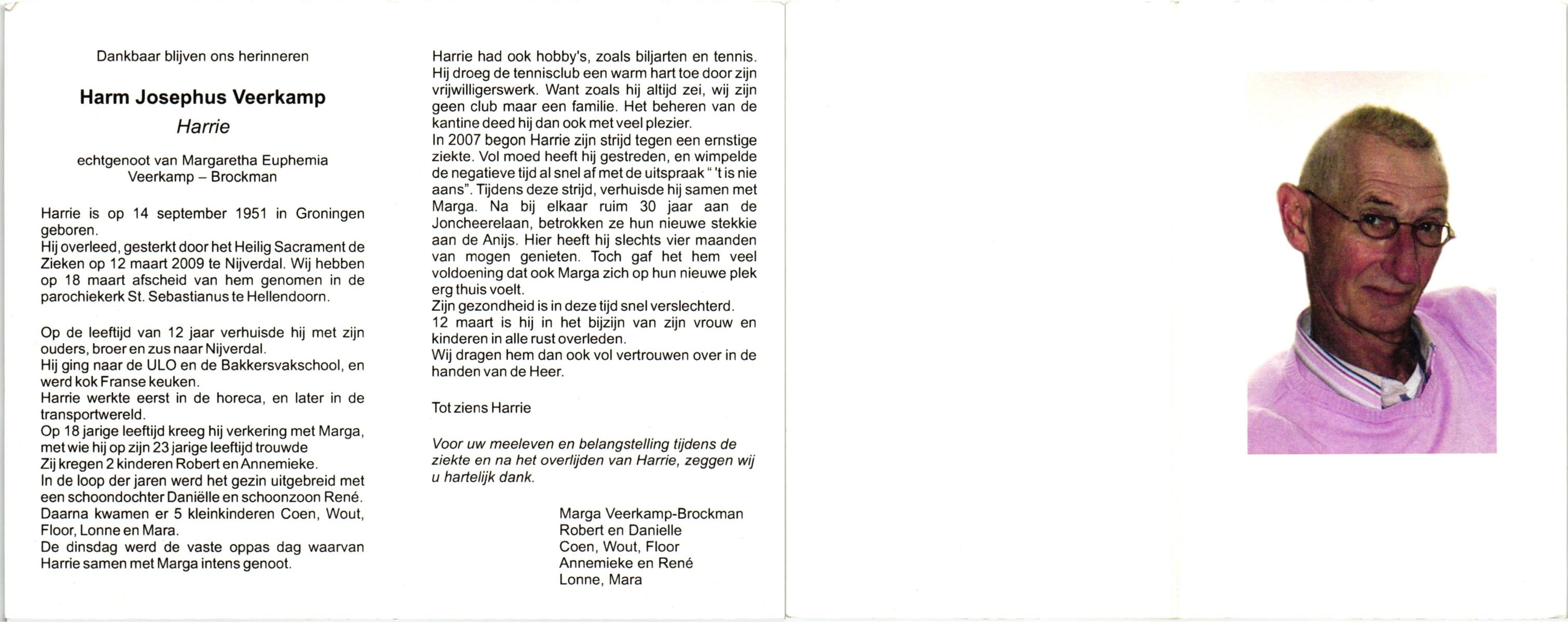 VEERKAMP, Harm Josephus (Harrie), geboren op 14-9-1951 te Groningen, overleden op 12-3-2009 te Hellendoorn, Nijverdal op 57-jarige leeftijd, begraven op 18-3-2009 te Hellendoorn, Nijverdal, rk.