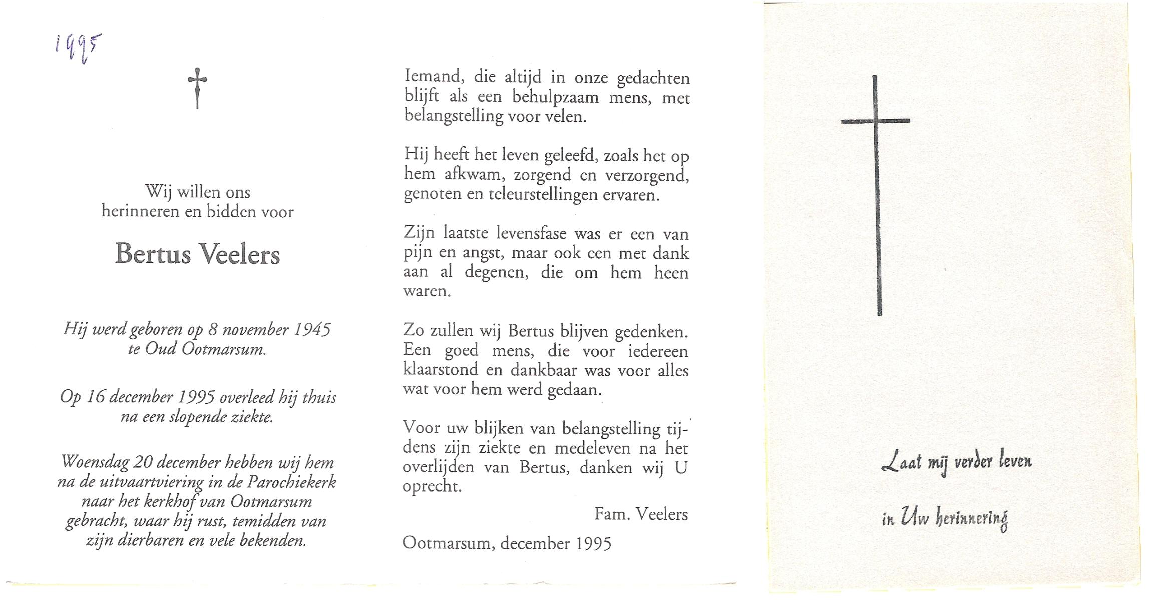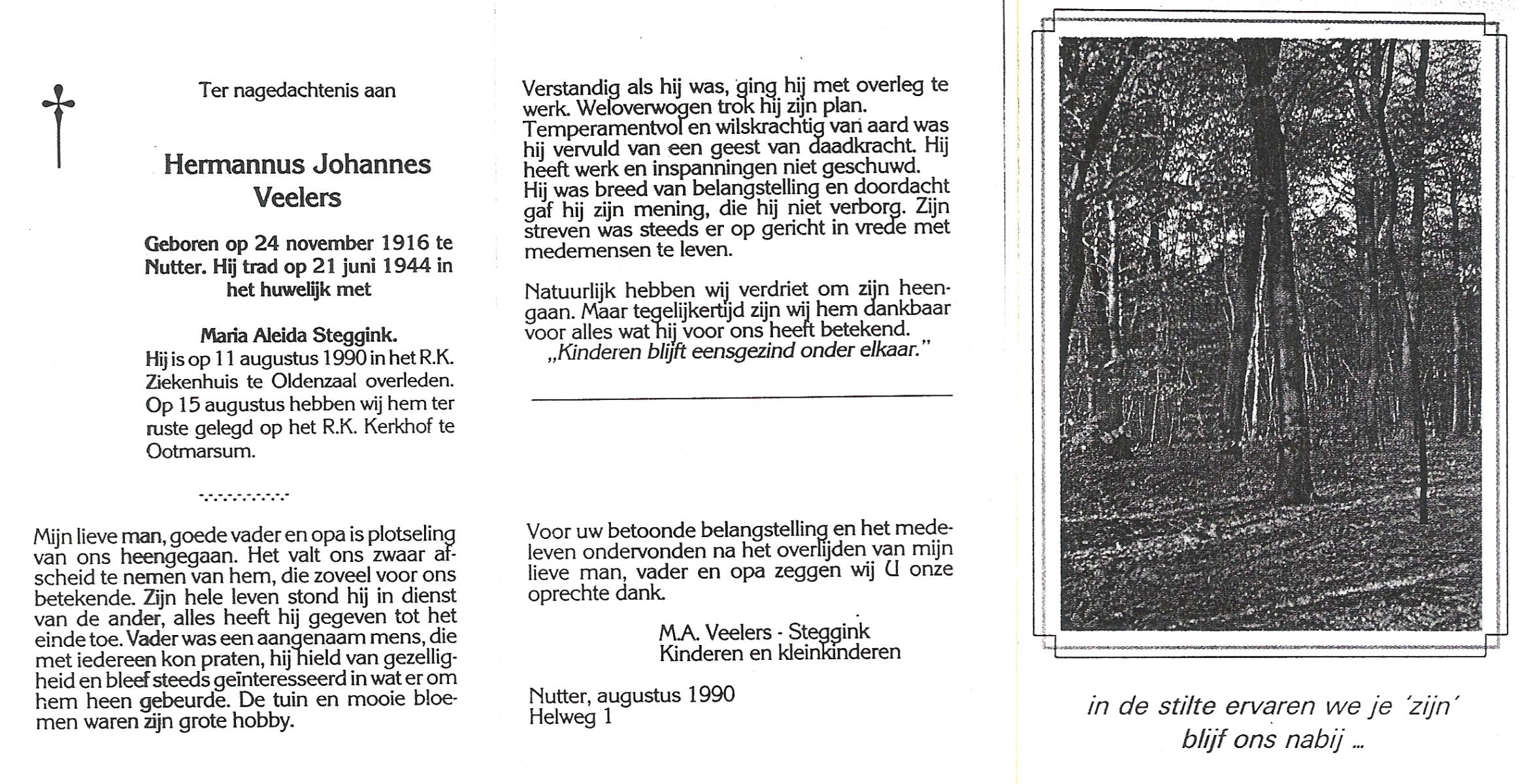 VEELERS, Hermannus Johannes, geboren op 24-1-1916 te Nutter, overleden op 11-8-1990 te Oldenzaal op 73-jarige leeftijd, begraven op 15-8-1990 te Ootmarsum R.K.kerkhof.