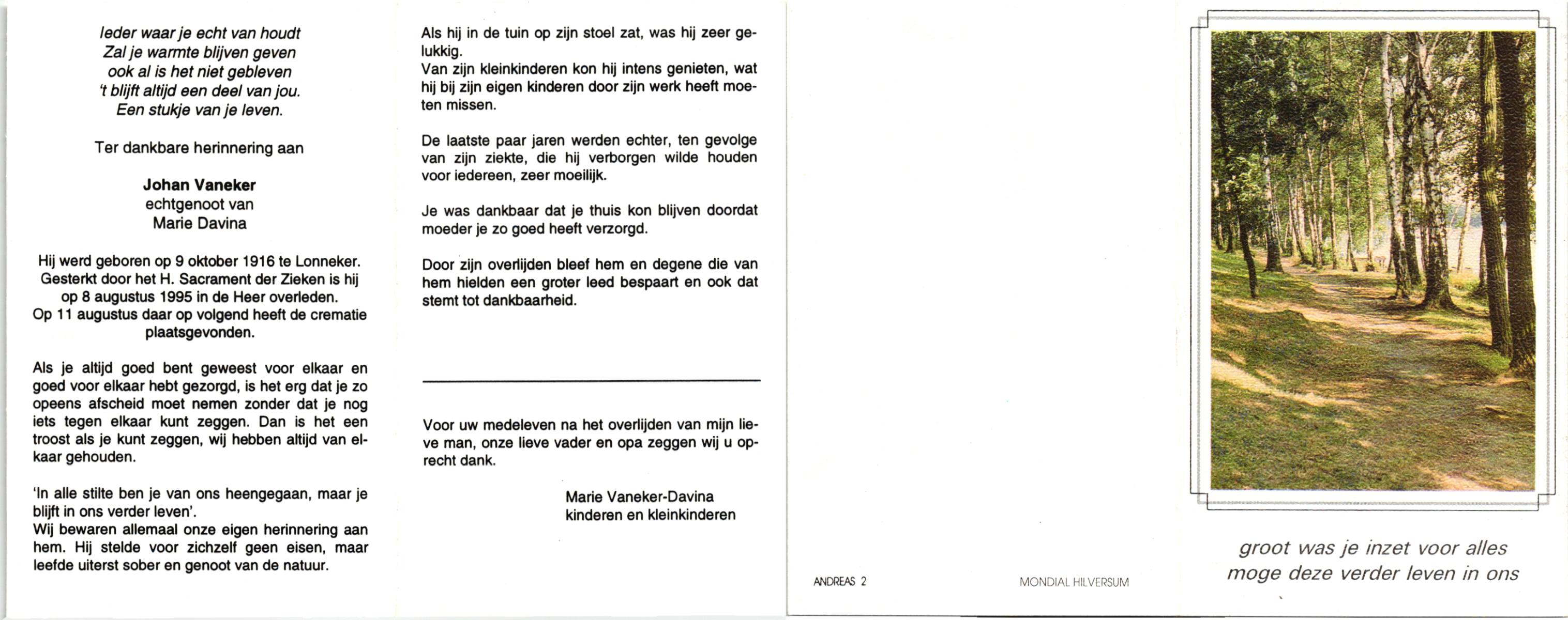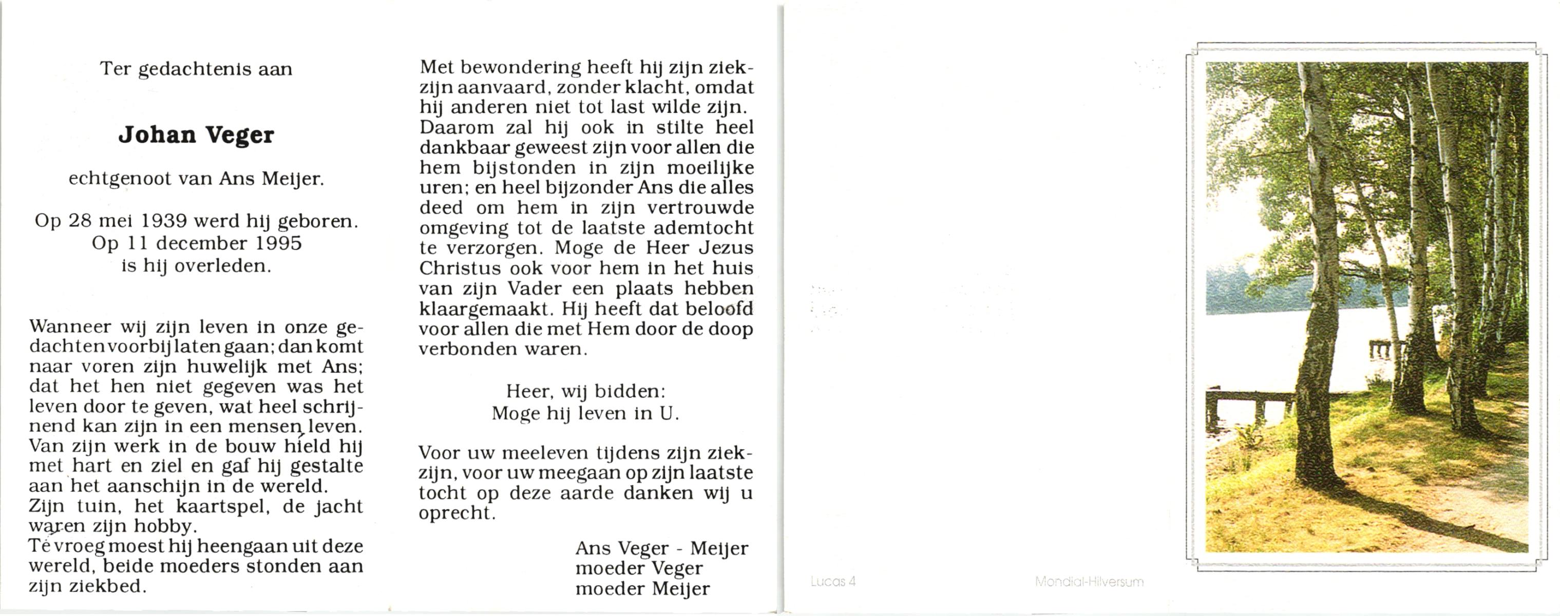 VEGER, , Johan, geboren op 28-5-1939, overleden op 1-12-1995 op 56-jarige leeftijd.