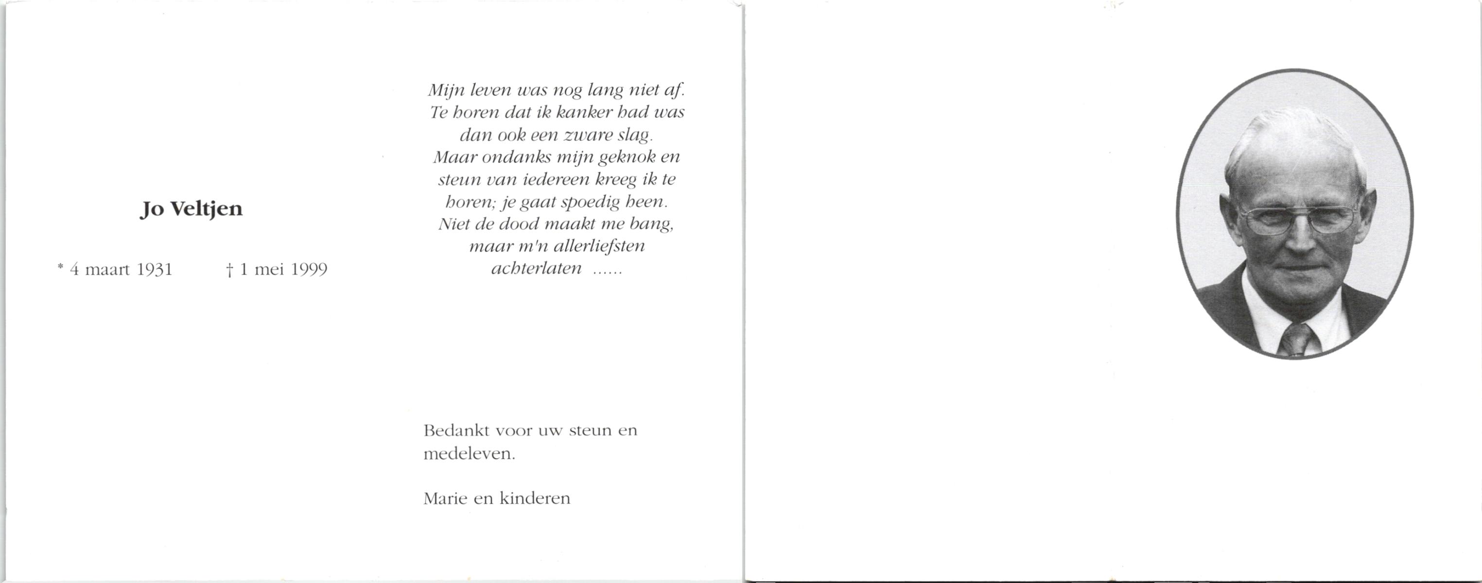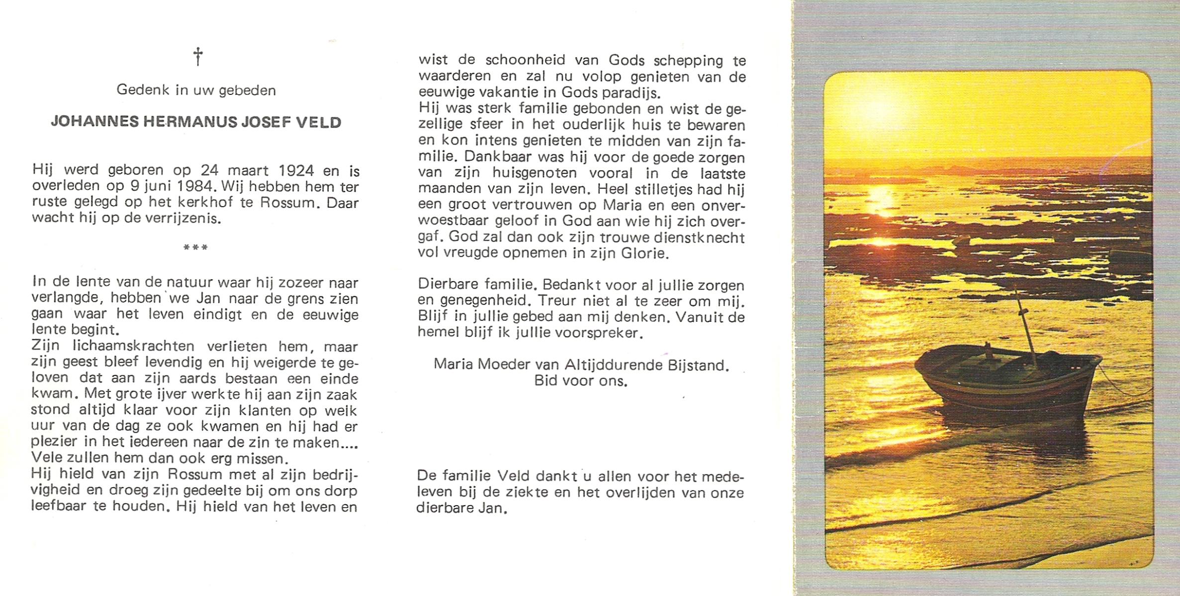VELD, Johannes Hermanus Josef, geboren op 24-3-1924, overleden op 9-6-1984 op 60-jarige leeftijd, begraven te Rossum.