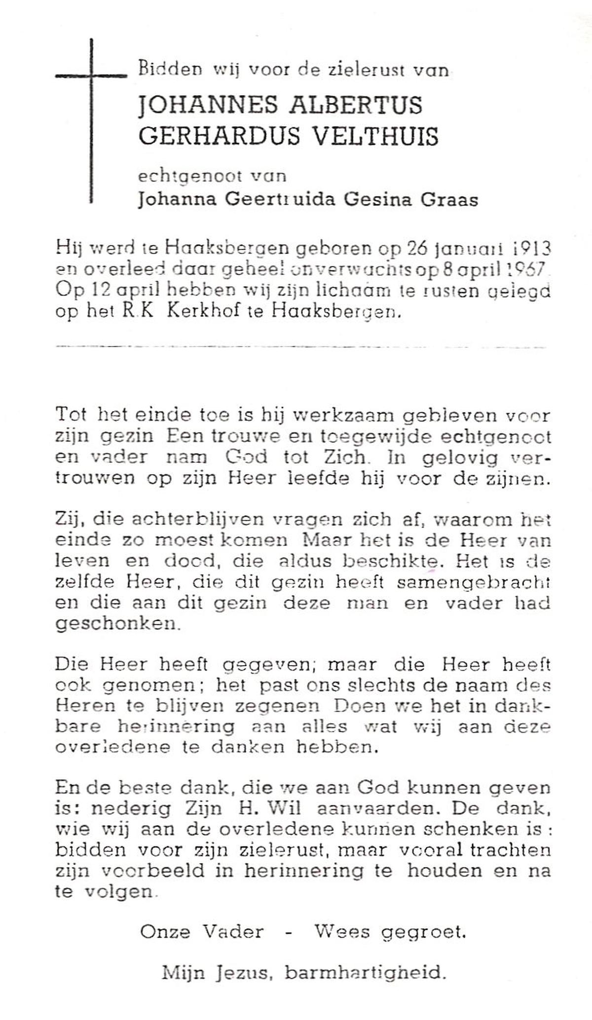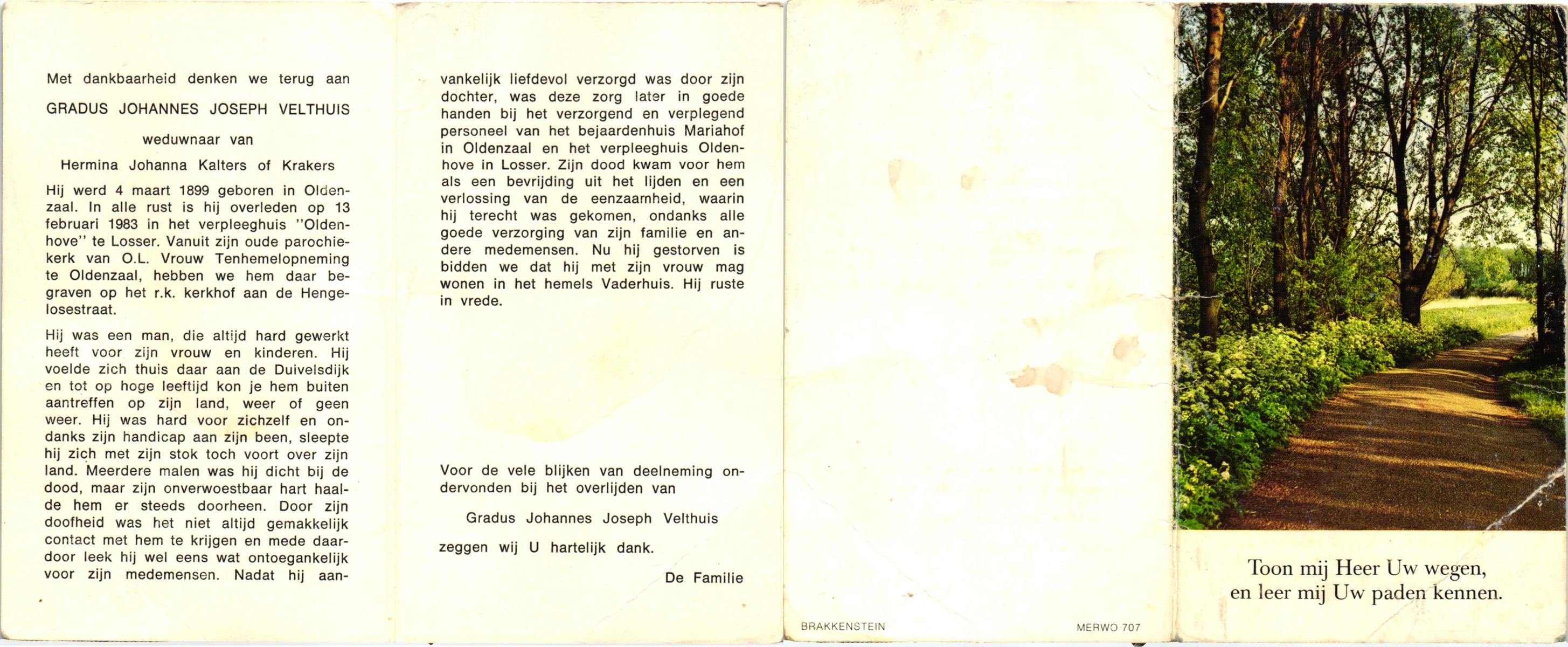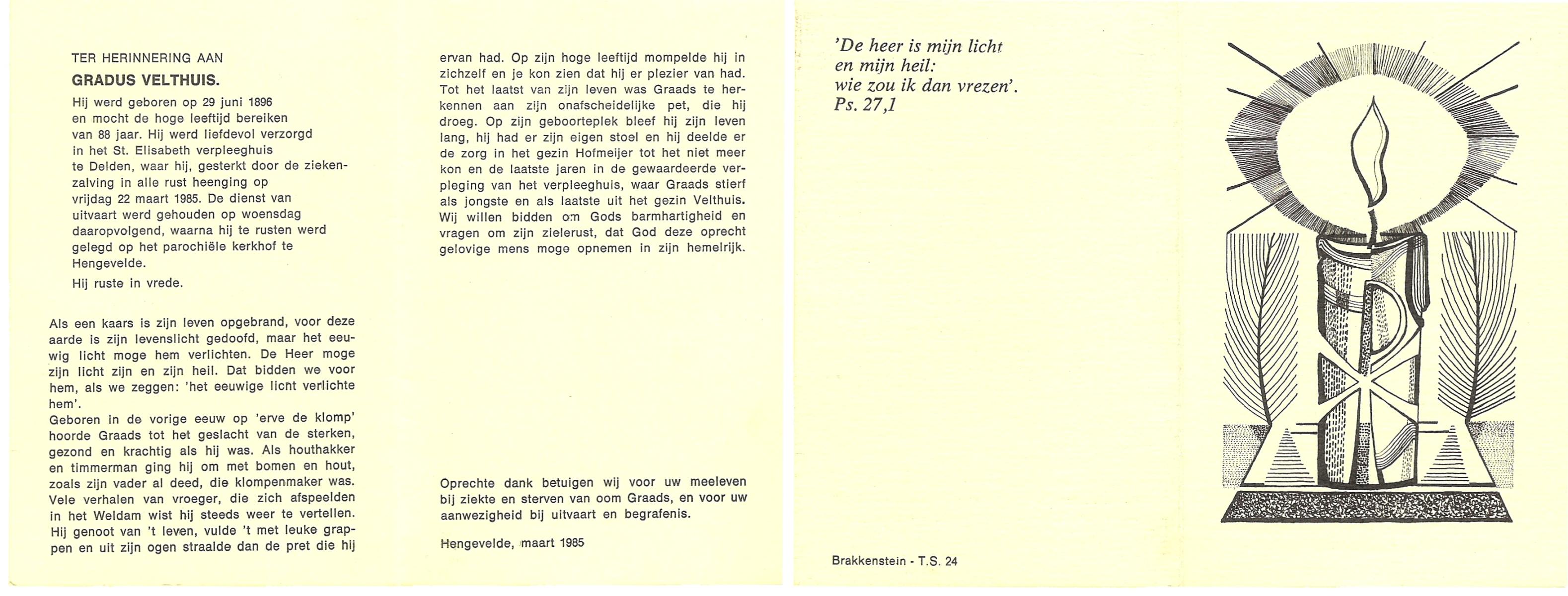 VELD, in het, Gradus Johannes, geboren op 10-10-1887 te Lonneker, overleden op 30-10-1967 op 80-jarige leeftijd, begraven op 2-11-1967 te Hengelo (Ov.).
