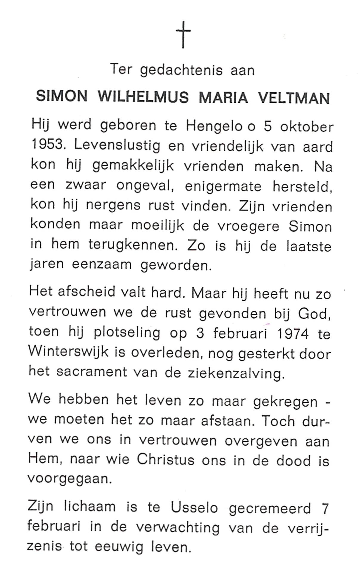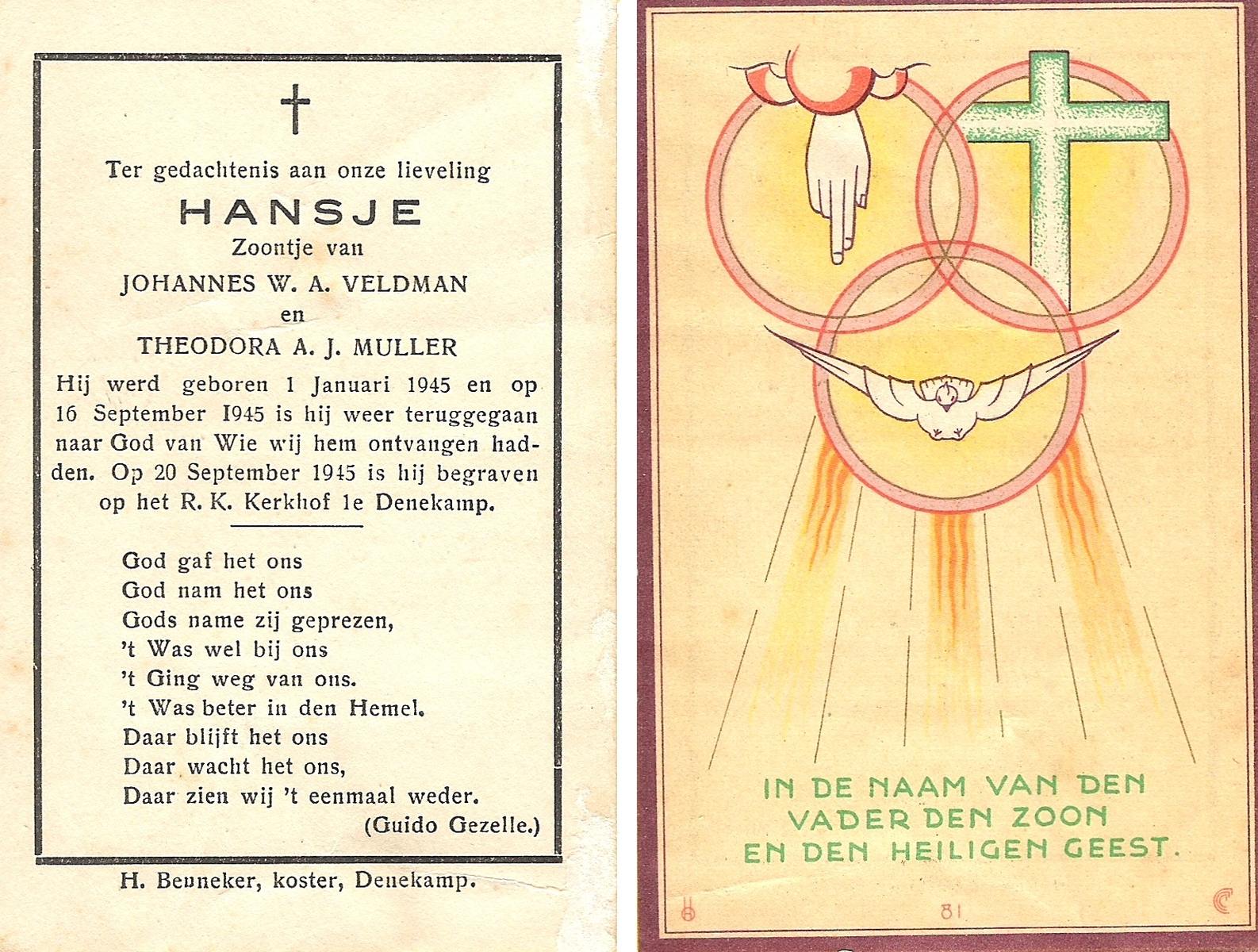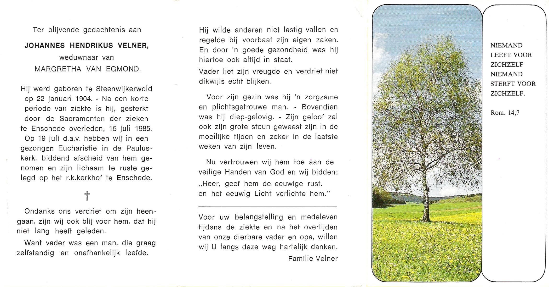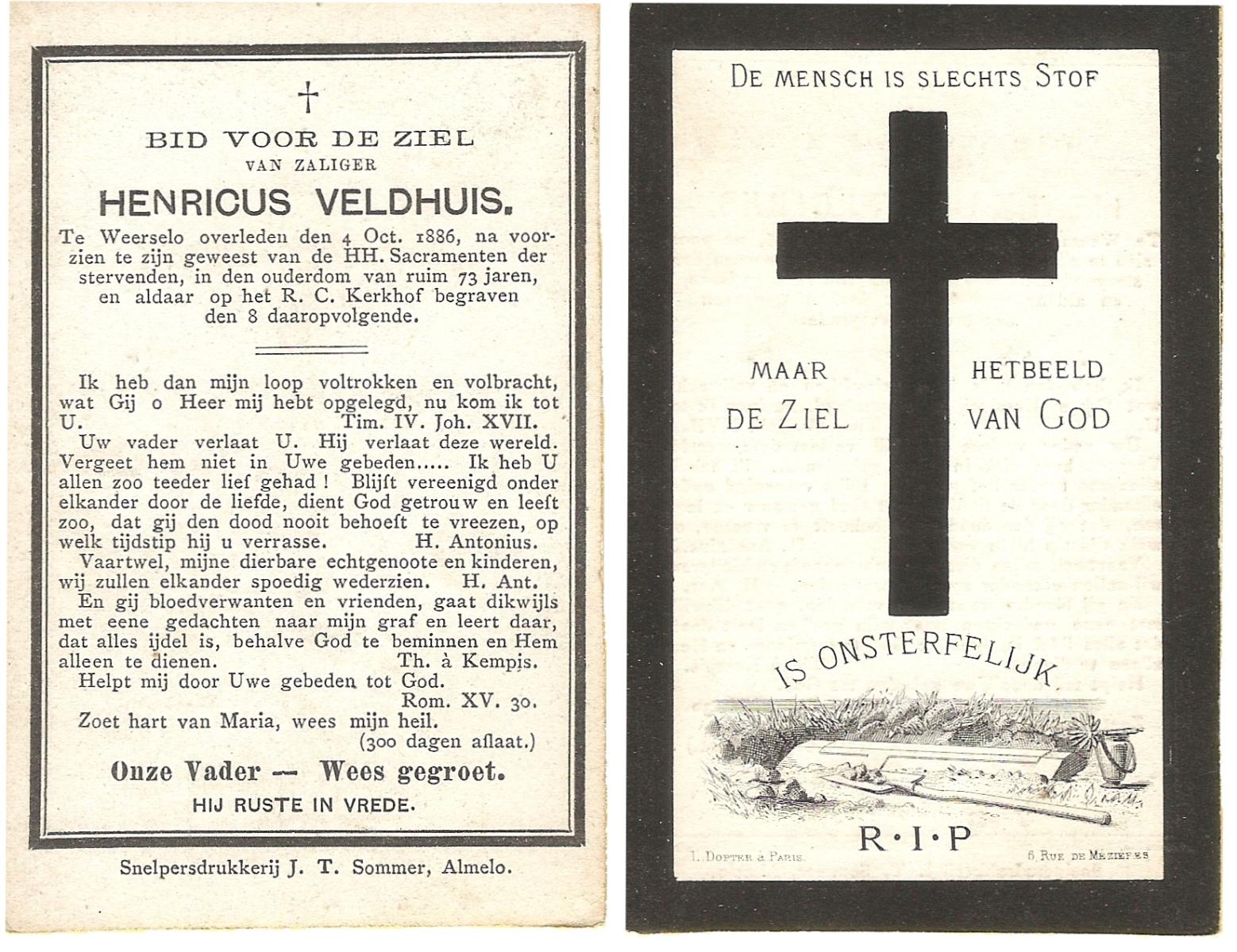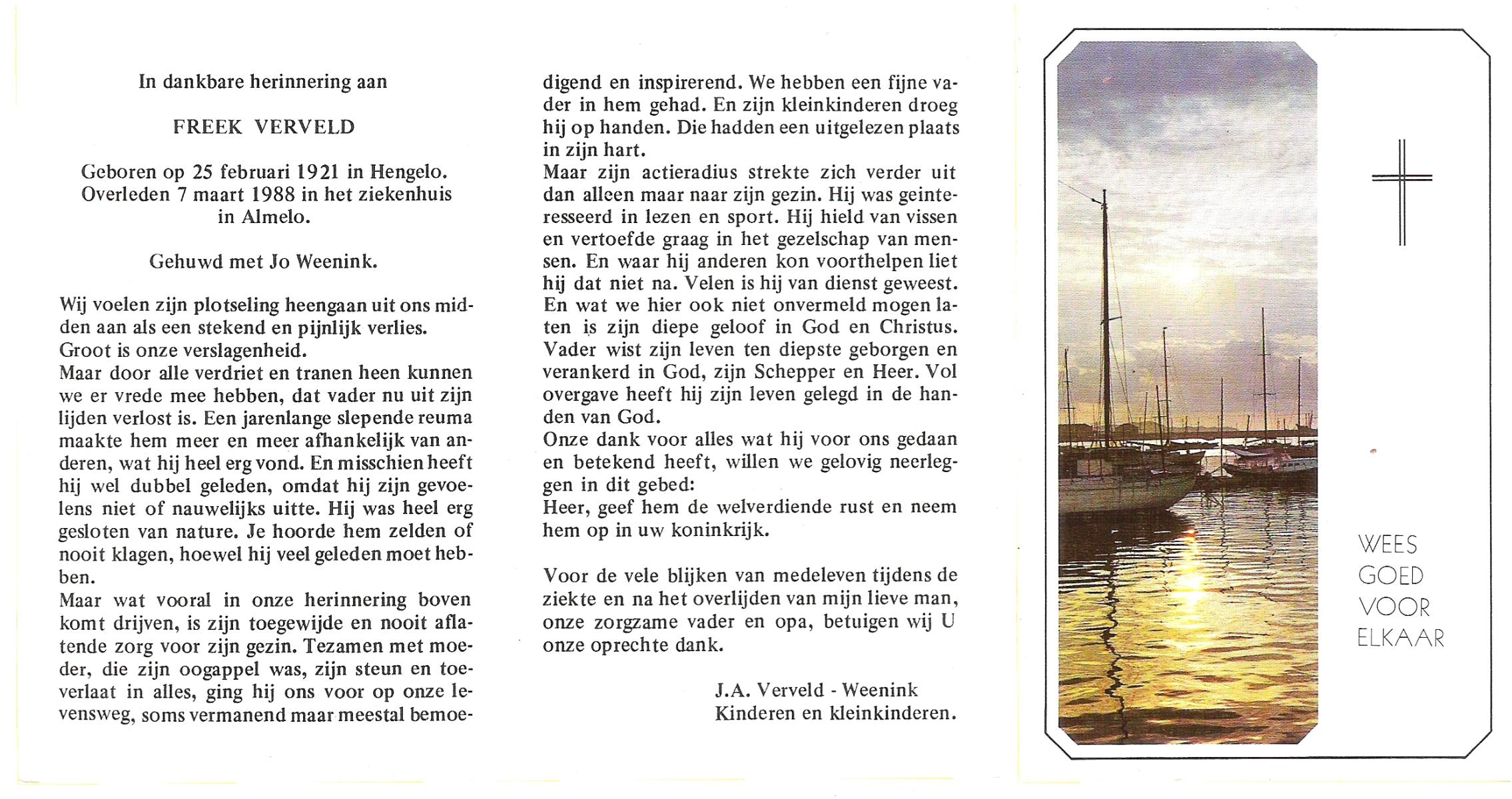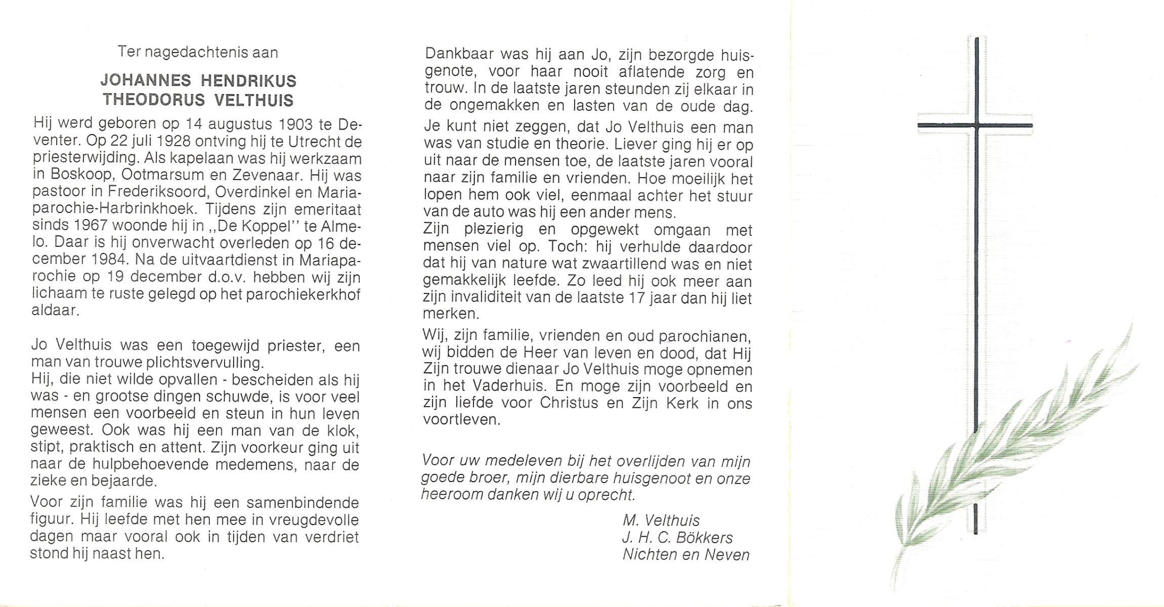 VELD, in het, Hendrik Antonius, geboren op 1-9-1924 te Weerselo, overleden op 8-2-1996 te Hengelo (Ov.) op 71-jarige leeftijd.