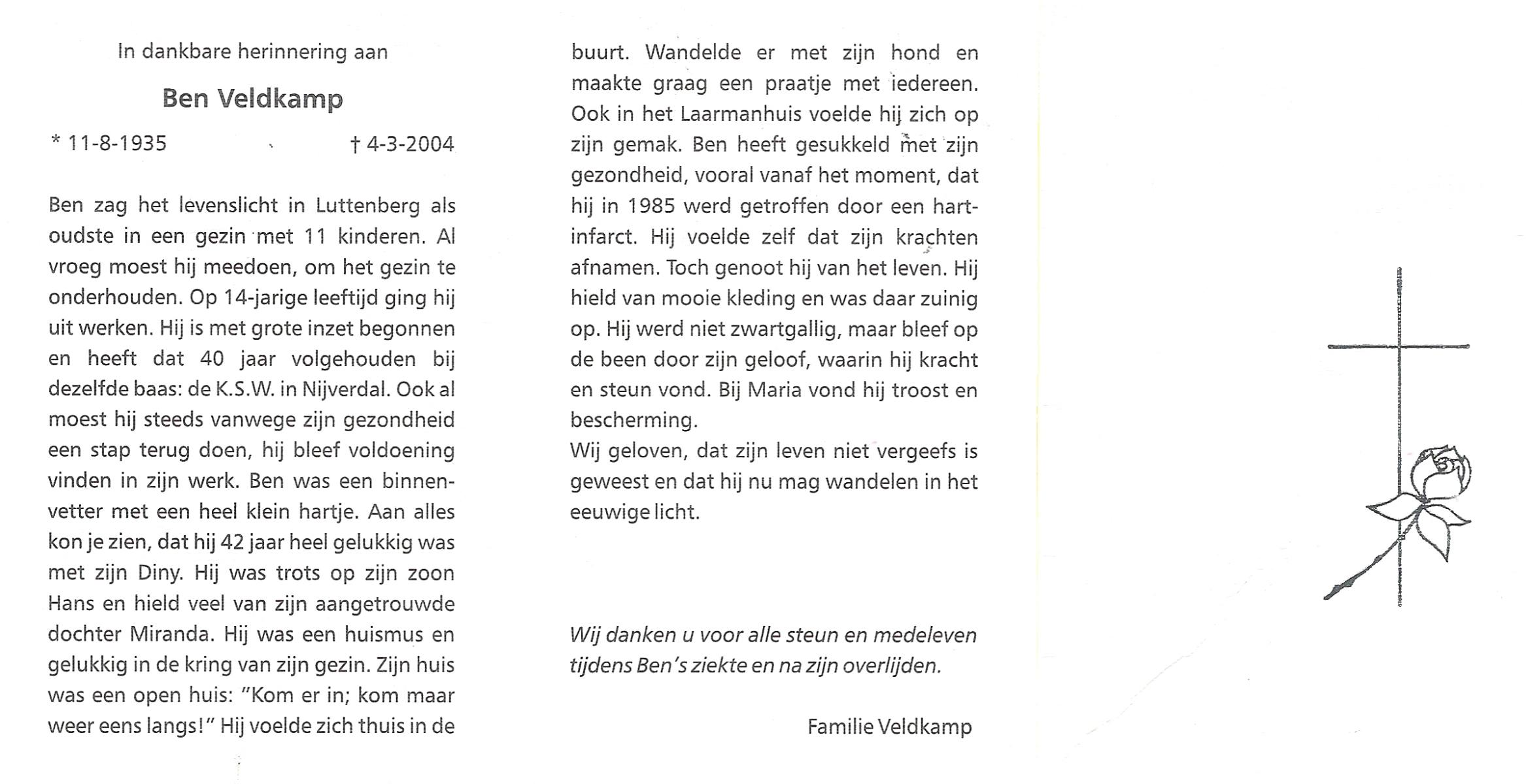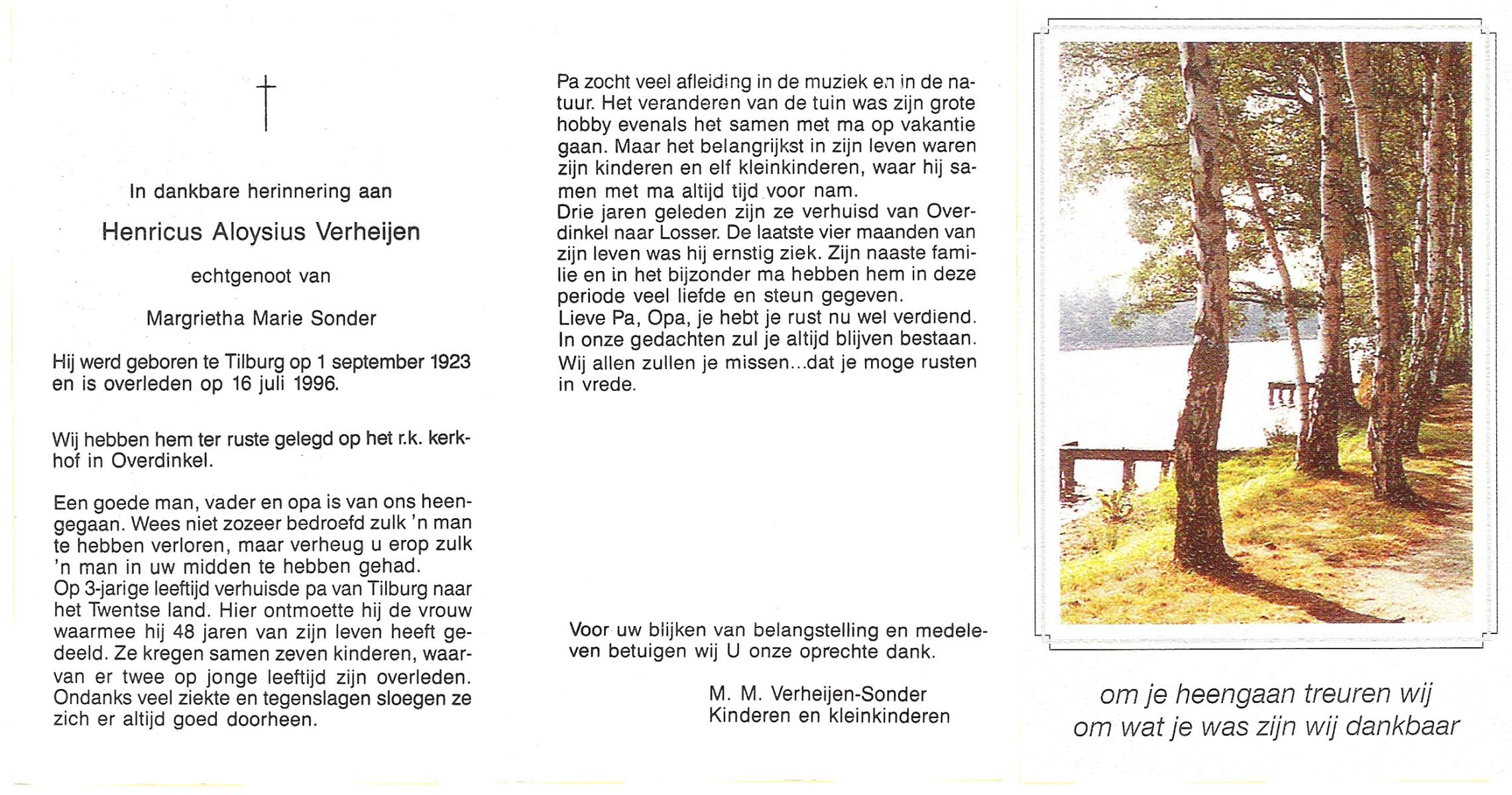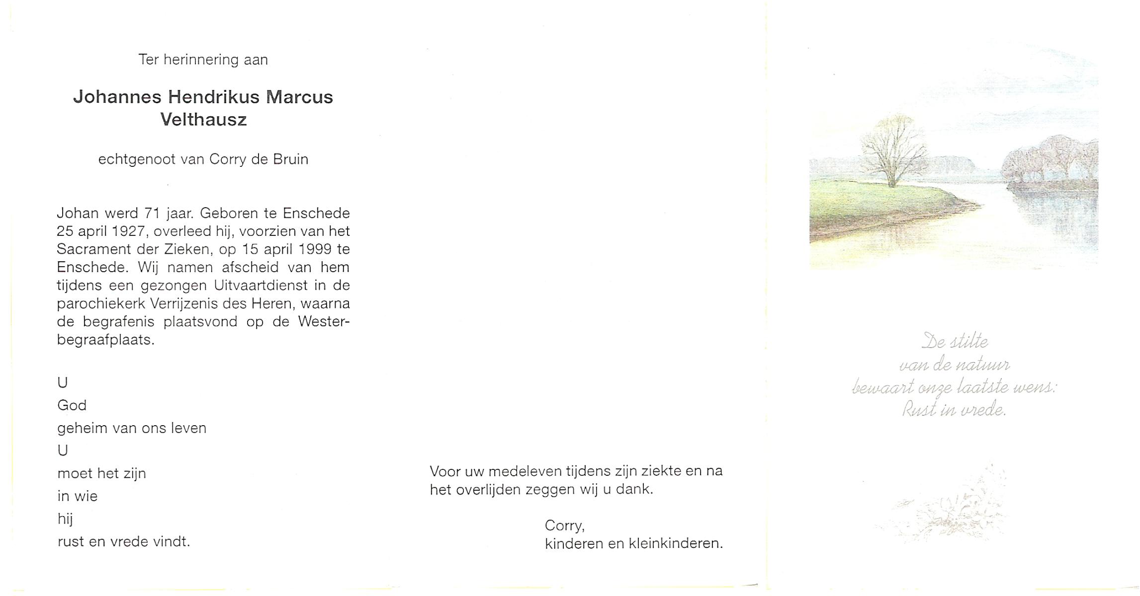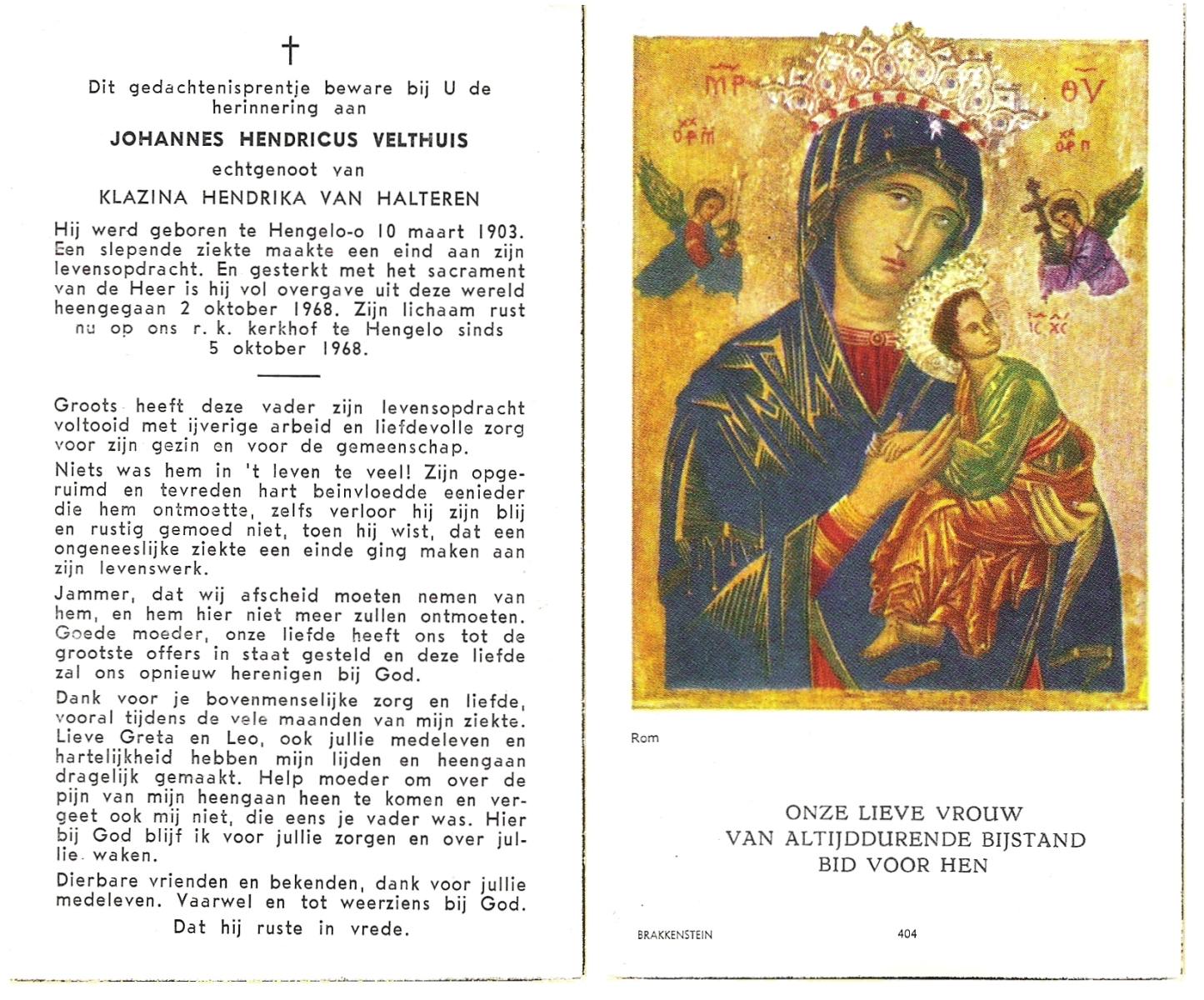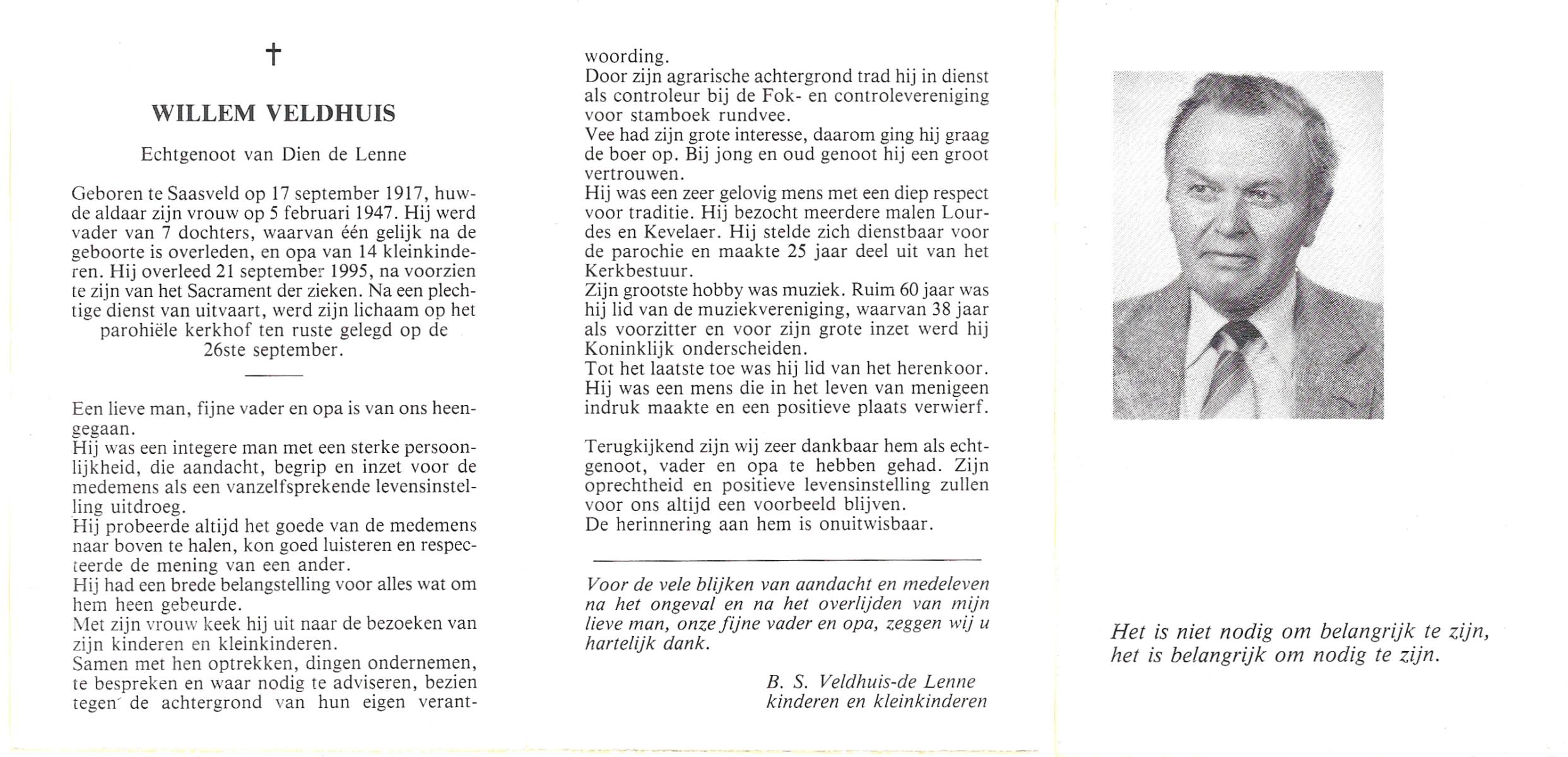 VELD, in het, Hendrik Antonius, geboren op 1-9-1924 te Weerselo, overleden op 8-2-1996 te Hengelo (Ov.) op 71-jarige leeftijd.