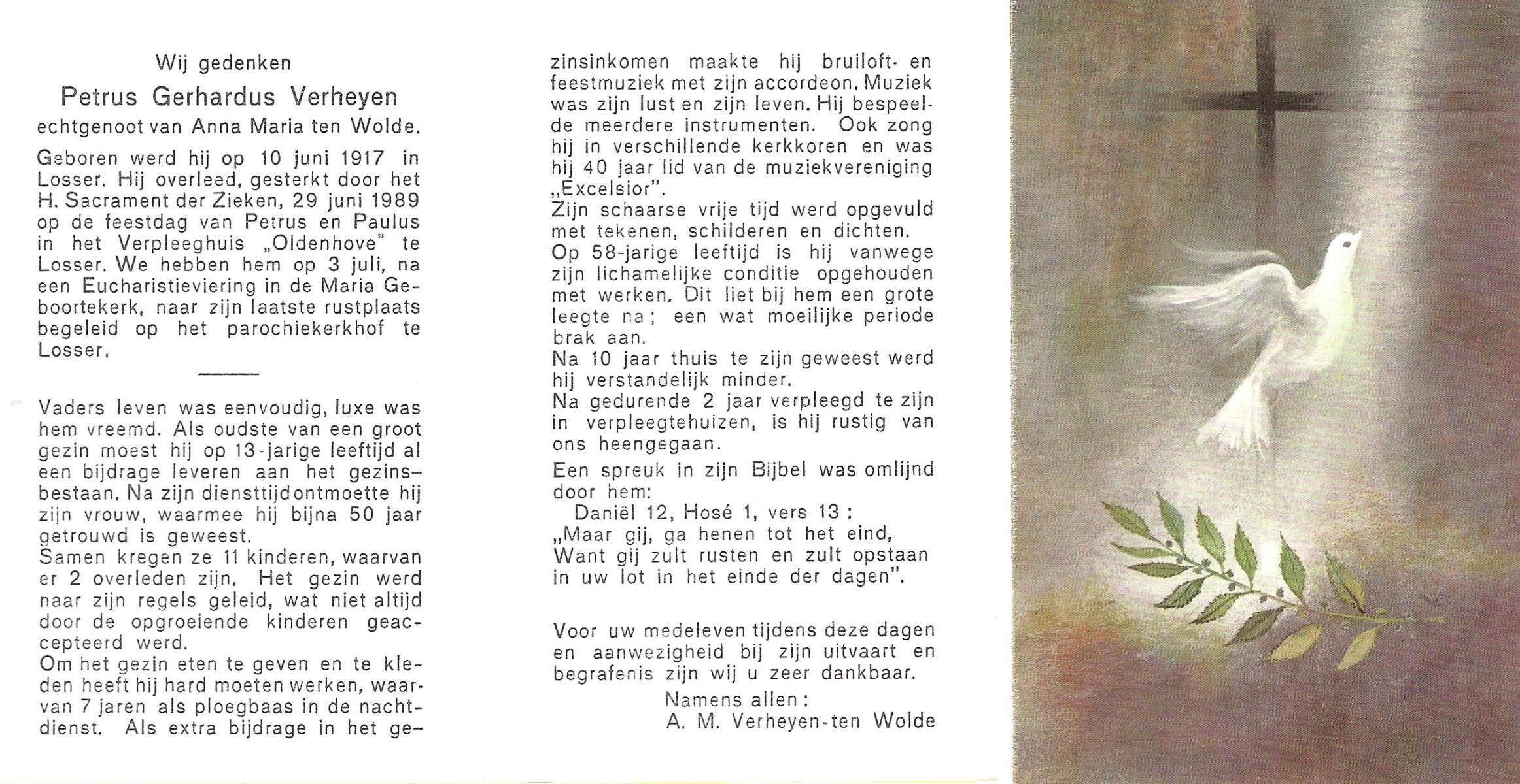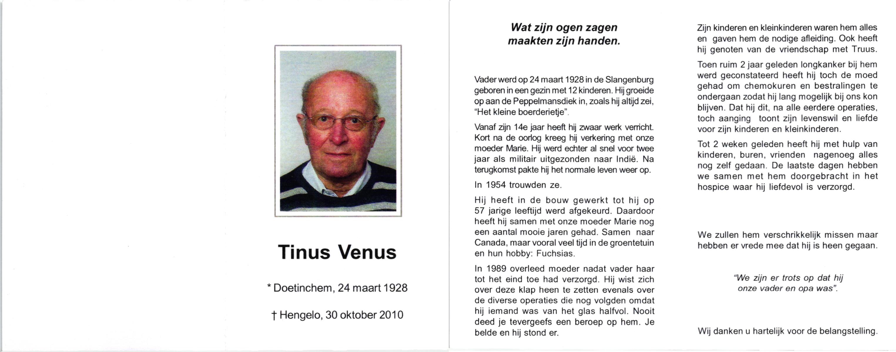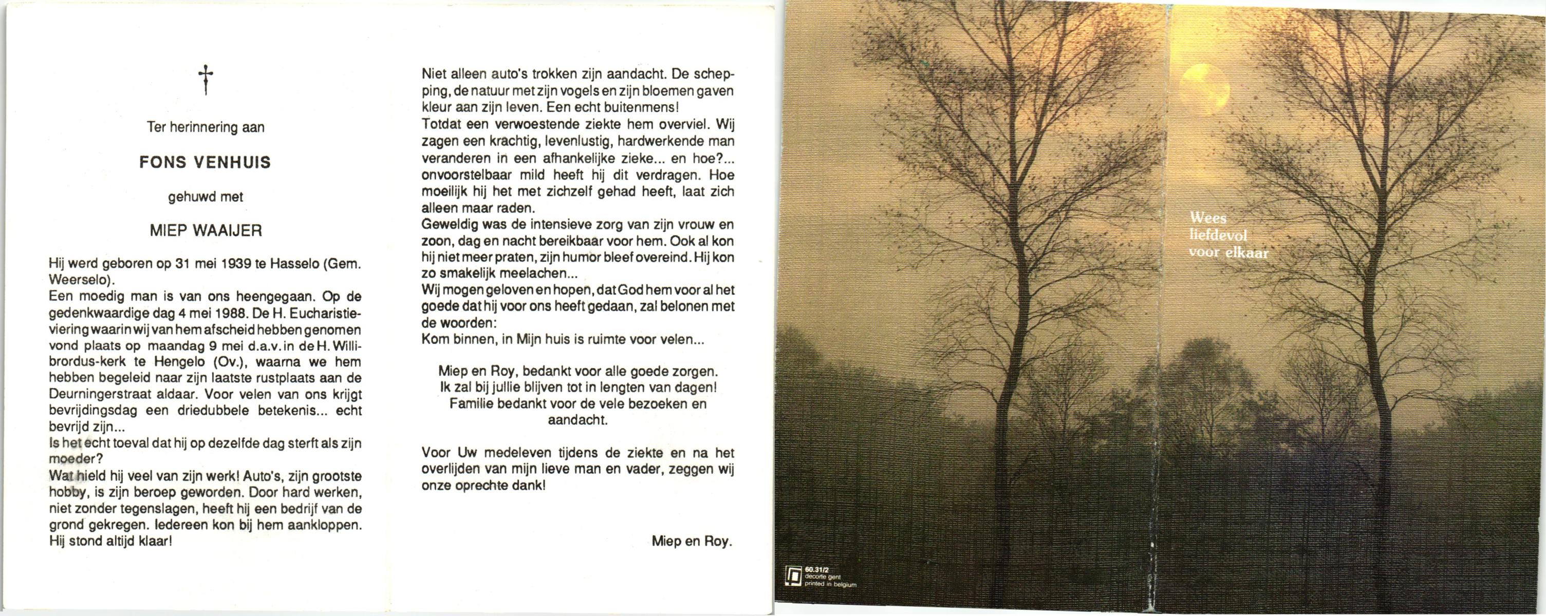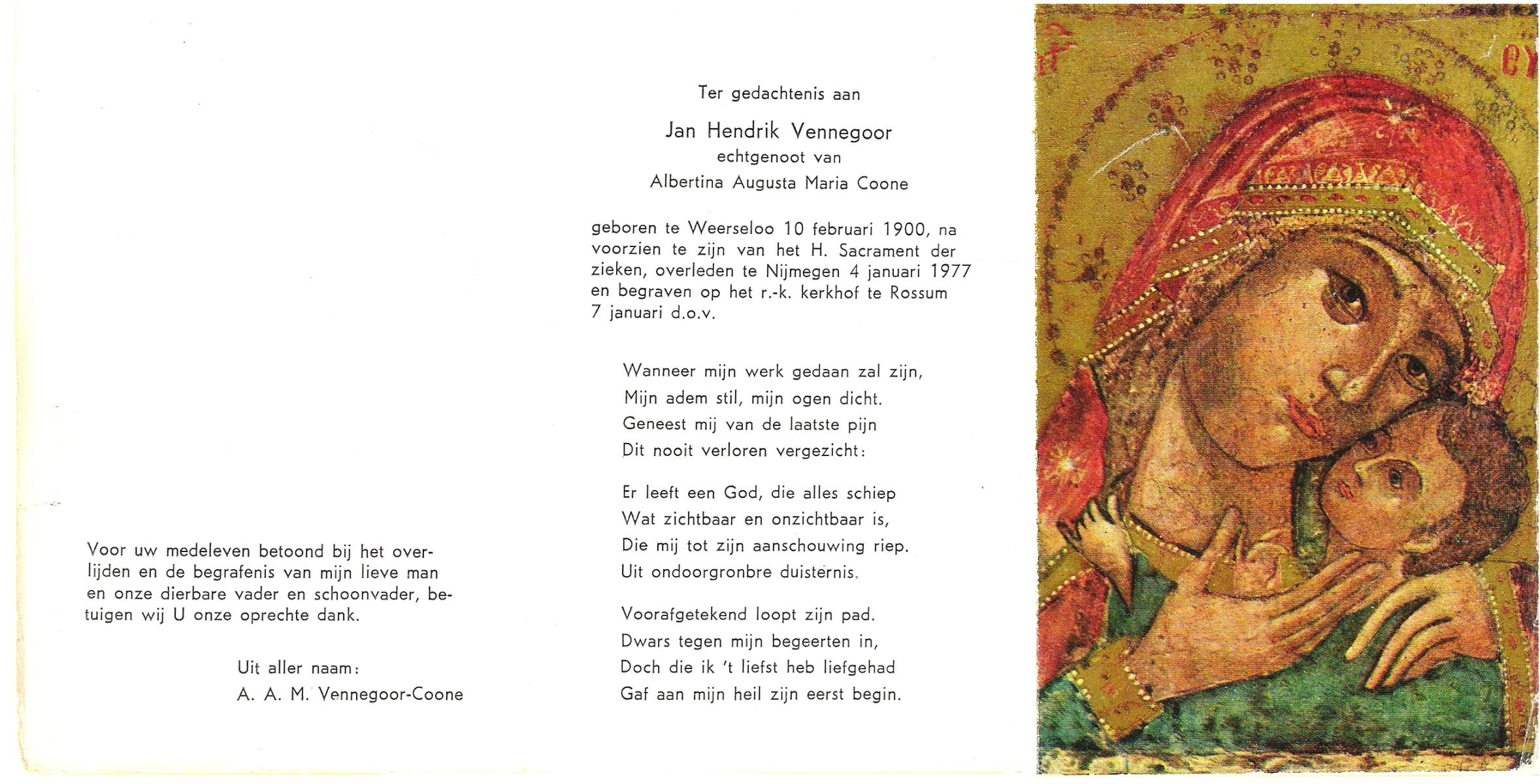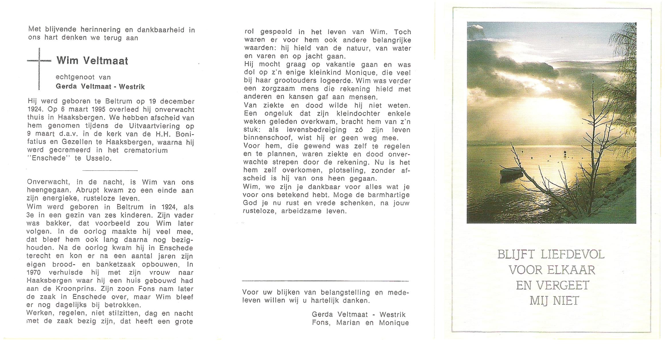 VELD, in het, Hendrik Antonius, geboren op 1-9-1924 te Weerselo, overleden op 8-2-1996 te Hengelo (Ov.) op 71-jarige leeftijd.
