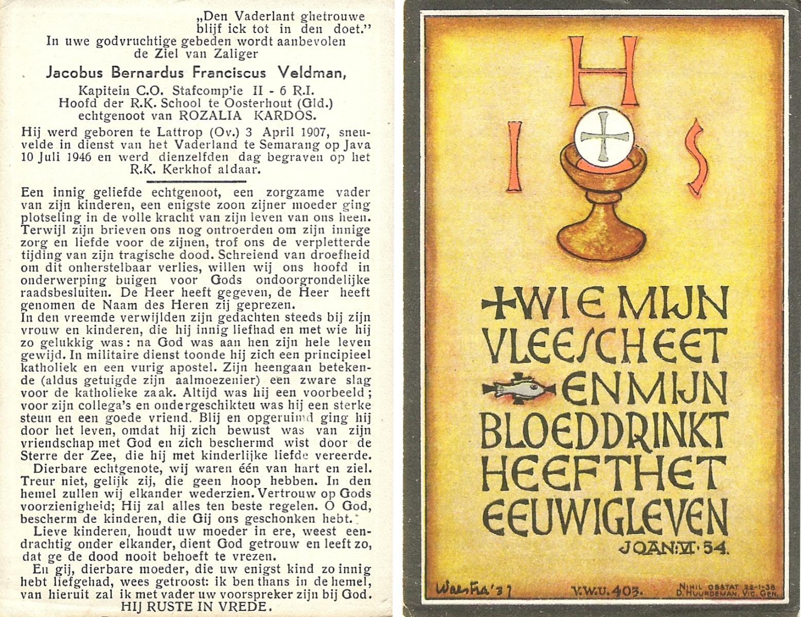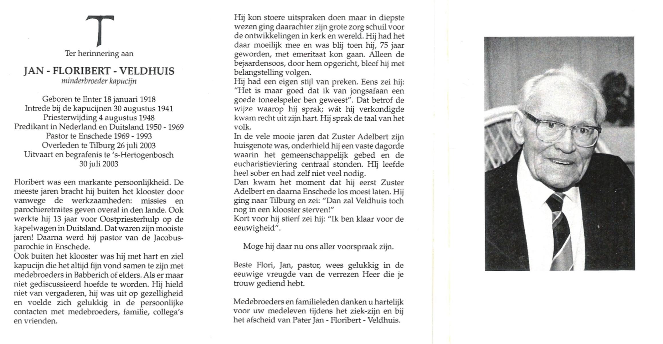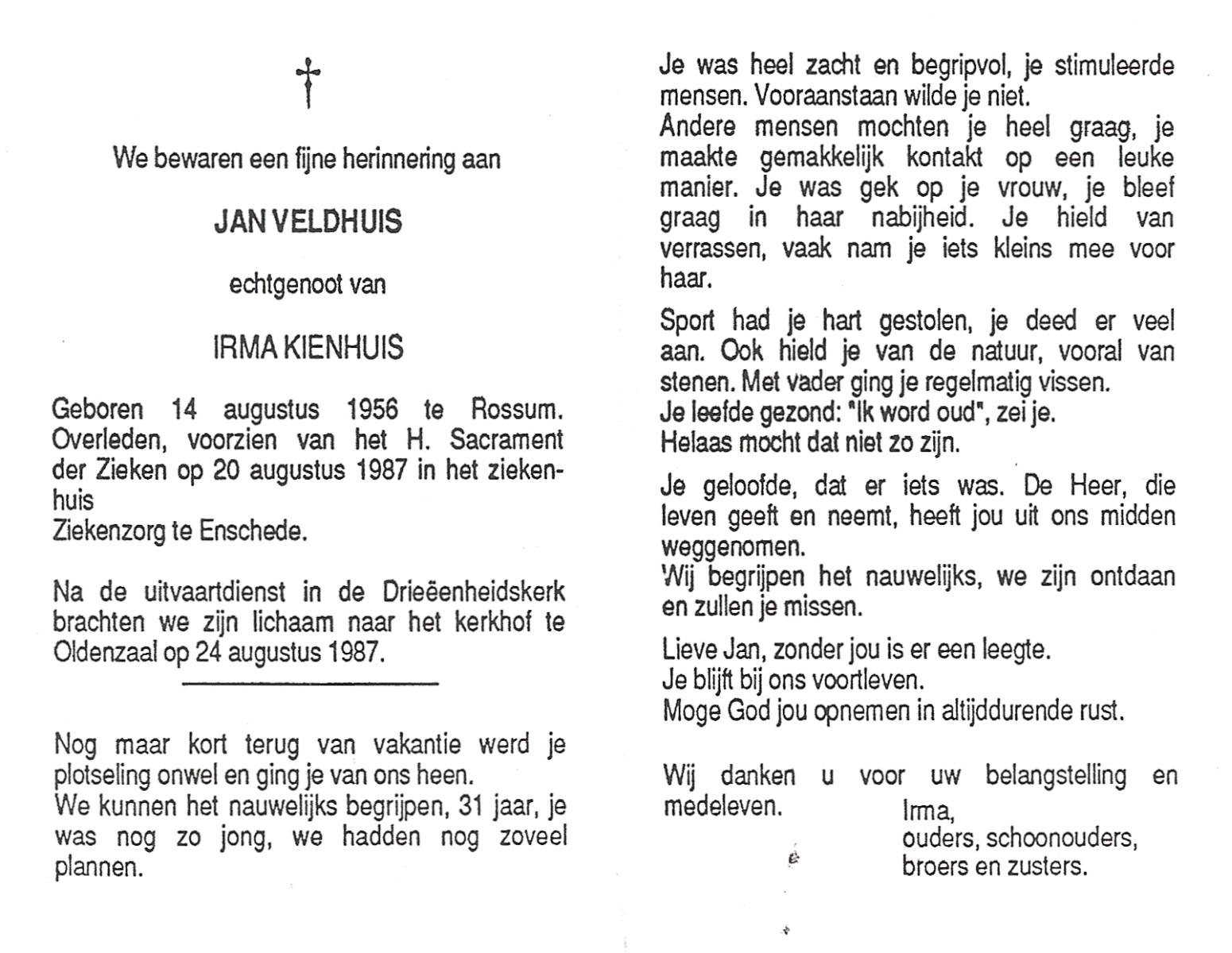 VELD, in het, Jan, geboren op 8-9-1916 te Hengelo (O), overleden op 13-6-1986 te Breda op 70-jarige leeftijd.