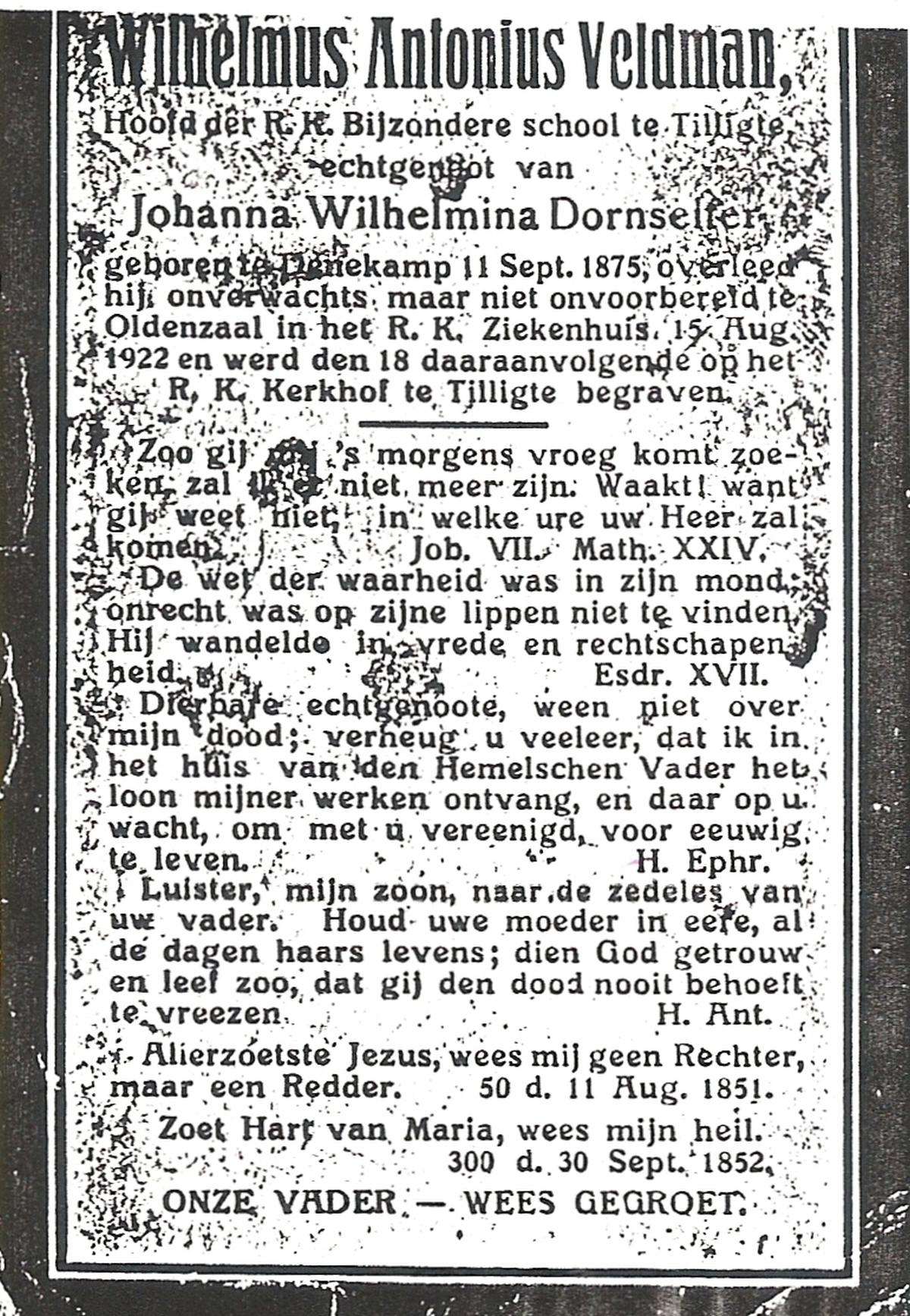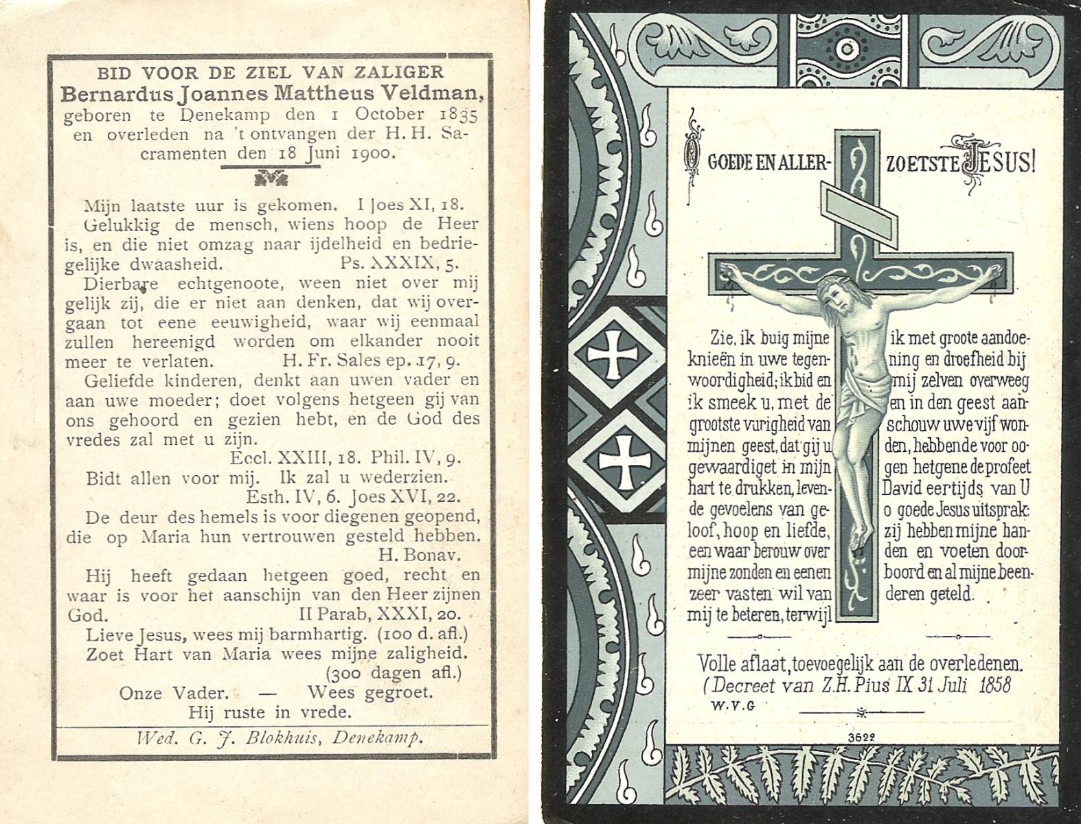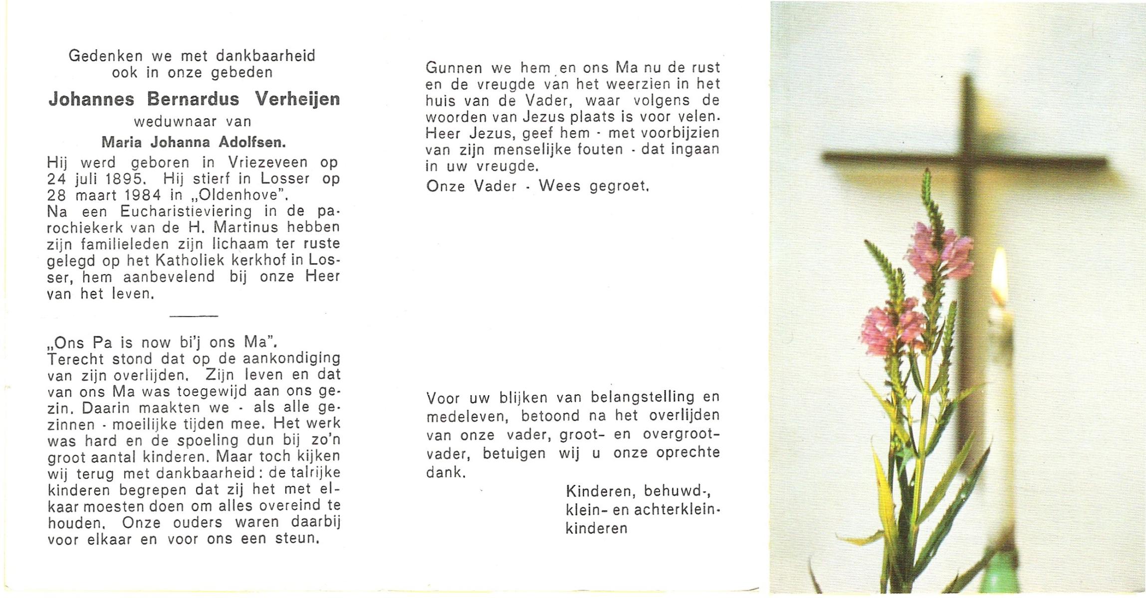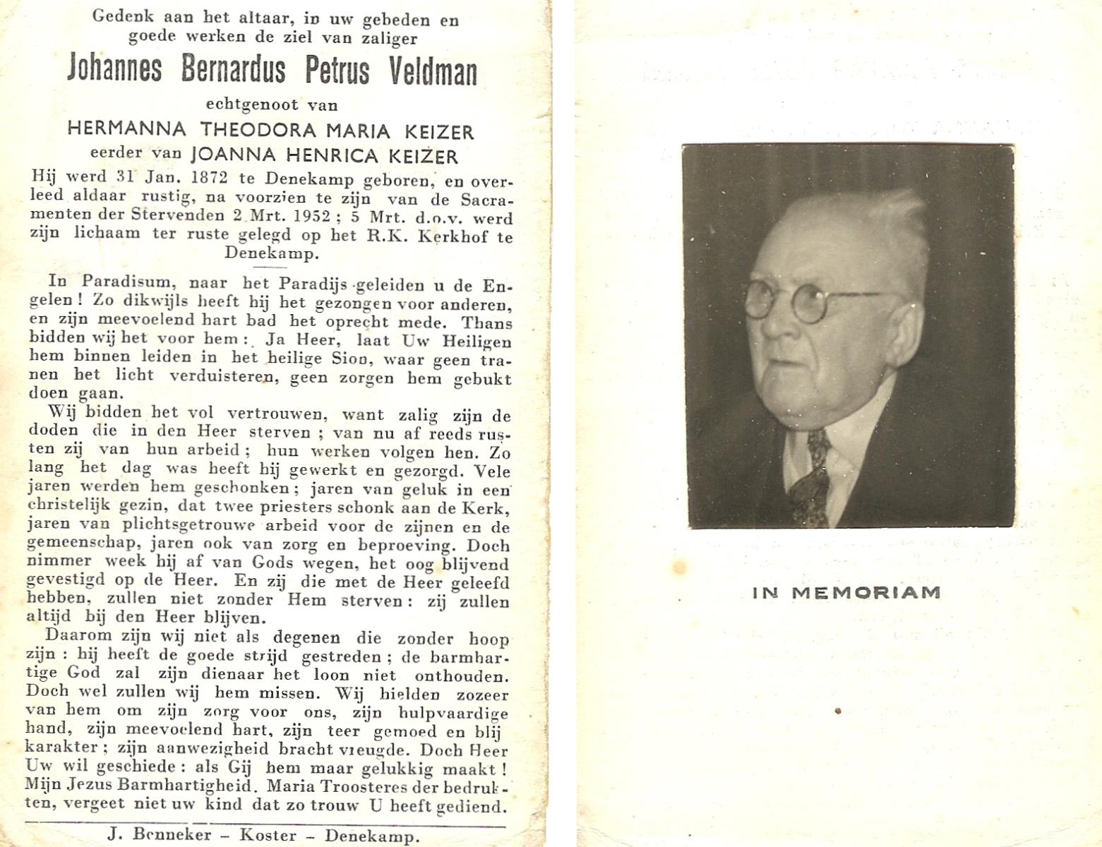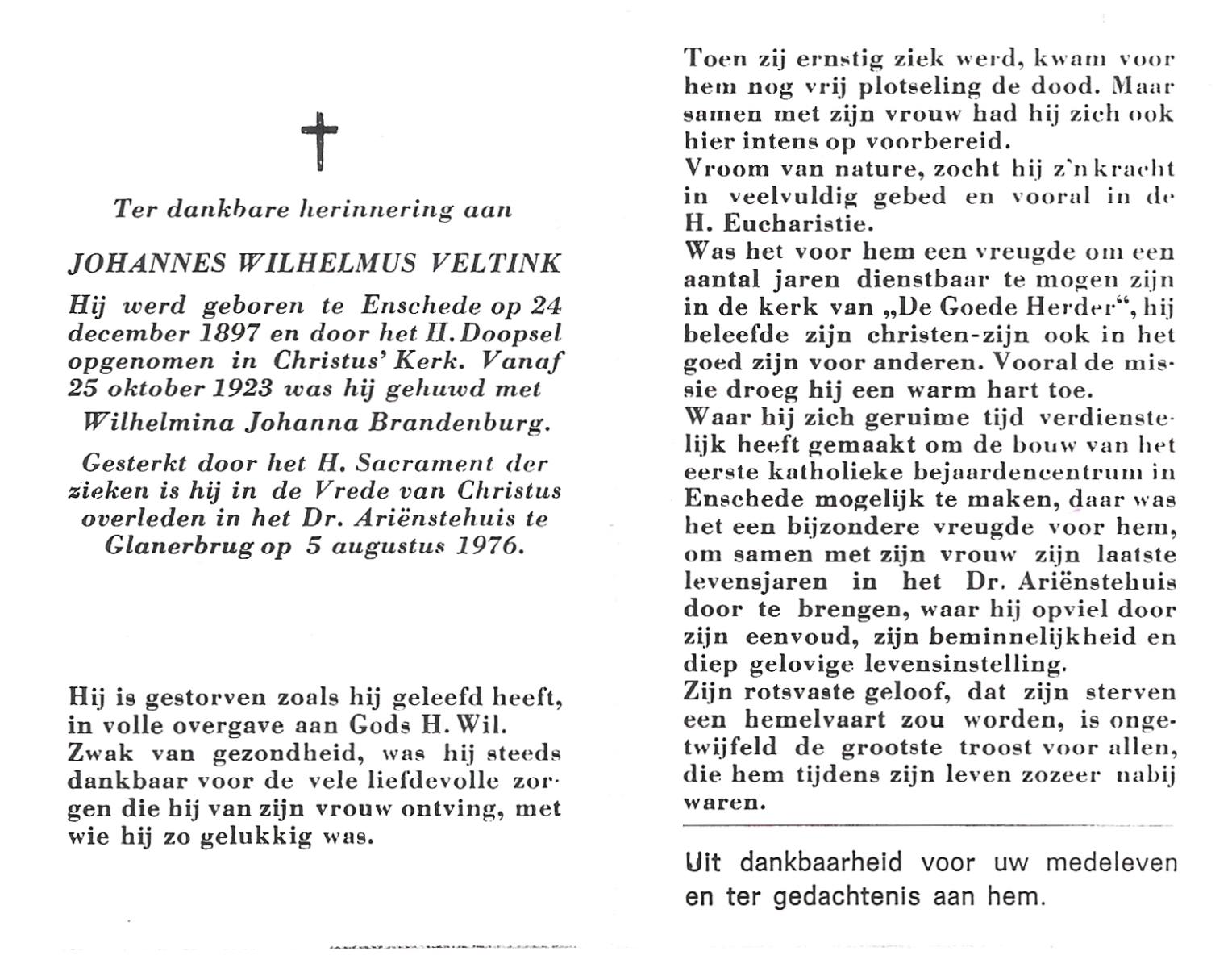 VELD, in het, Johannes Bernardus, geboren op 23-09-1893 te Losser, overleden op 28-8-1975 te Oldenzaal op 81-jarige leeftijd, begraven op 2-9-1975 te Denekamp.