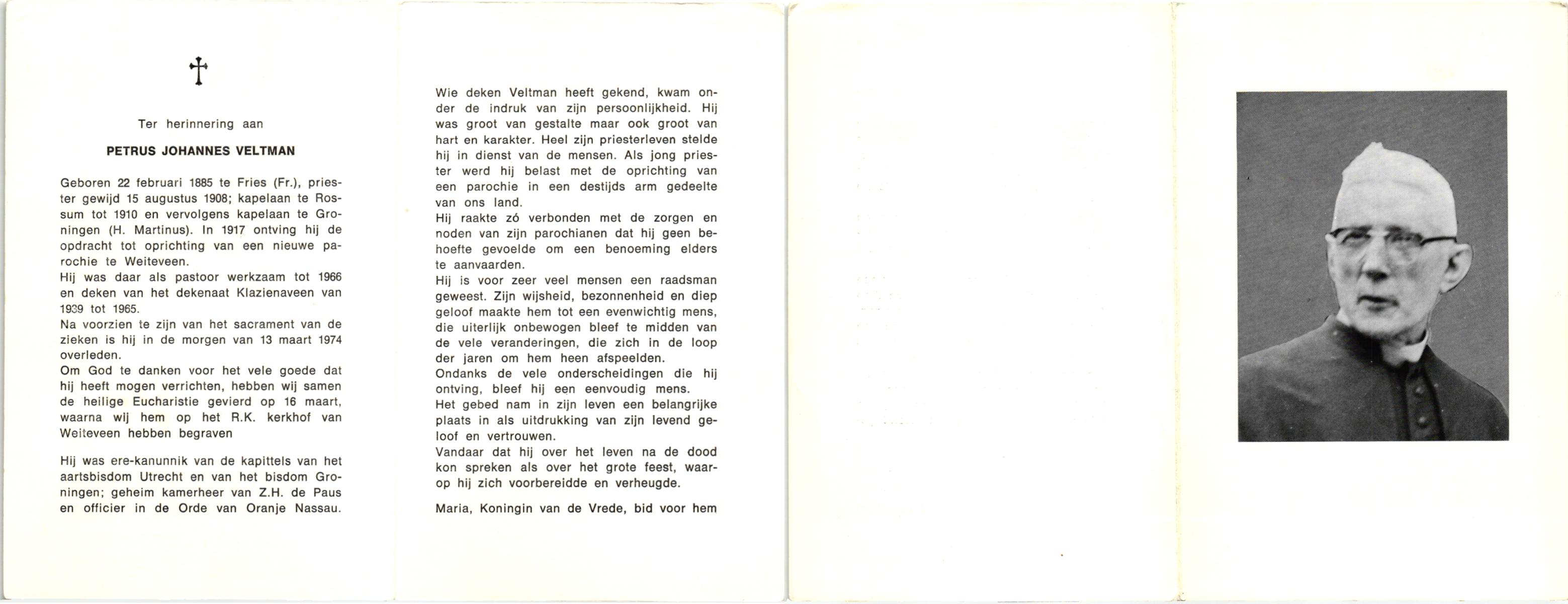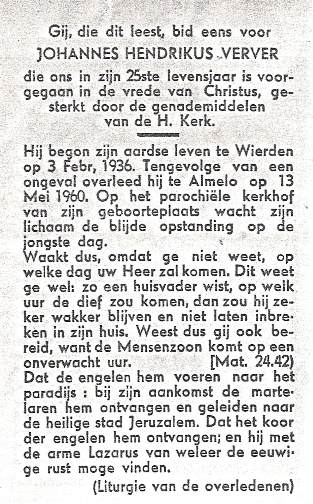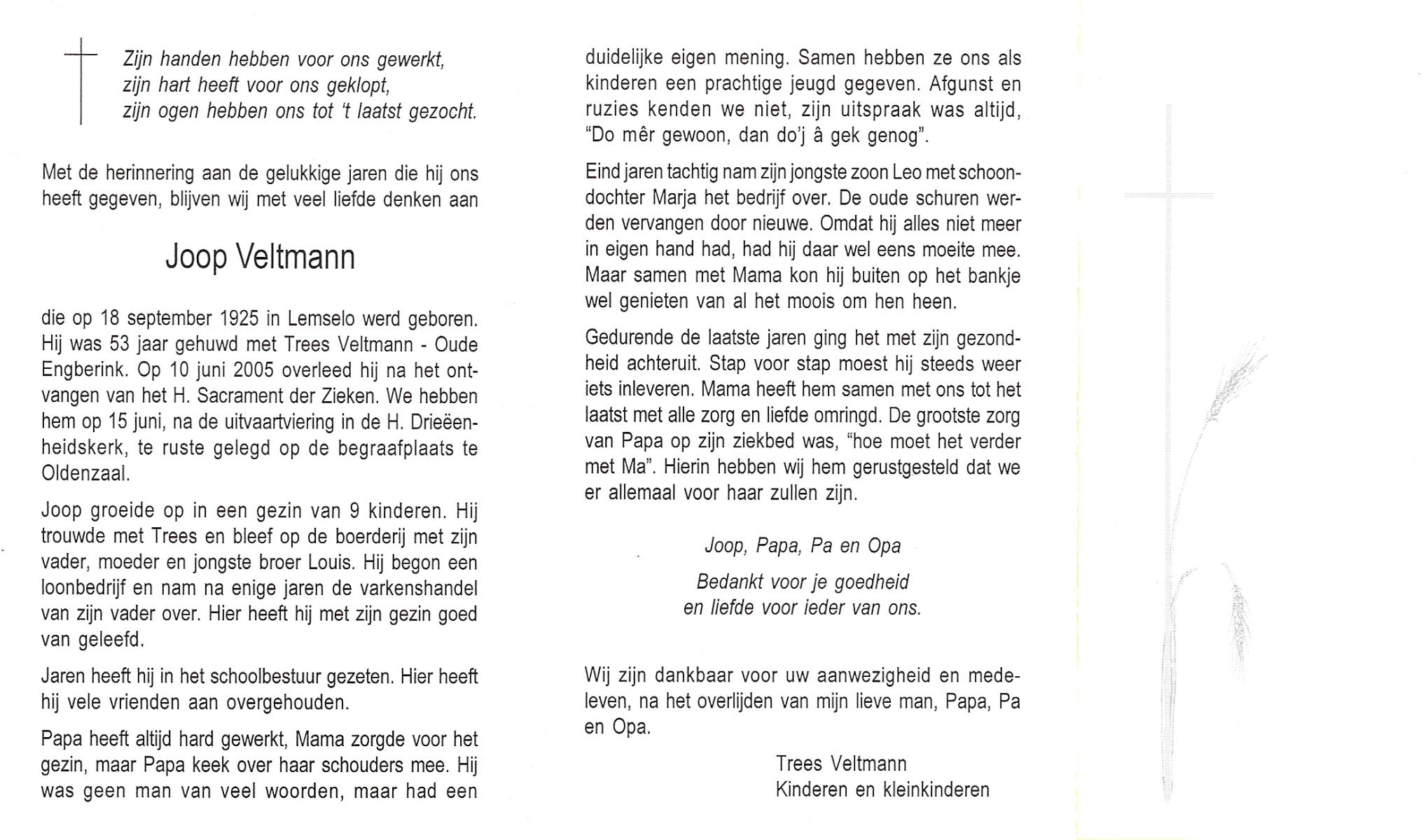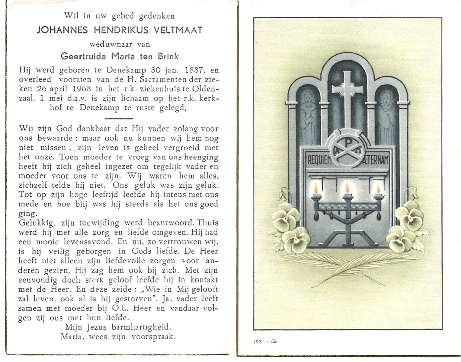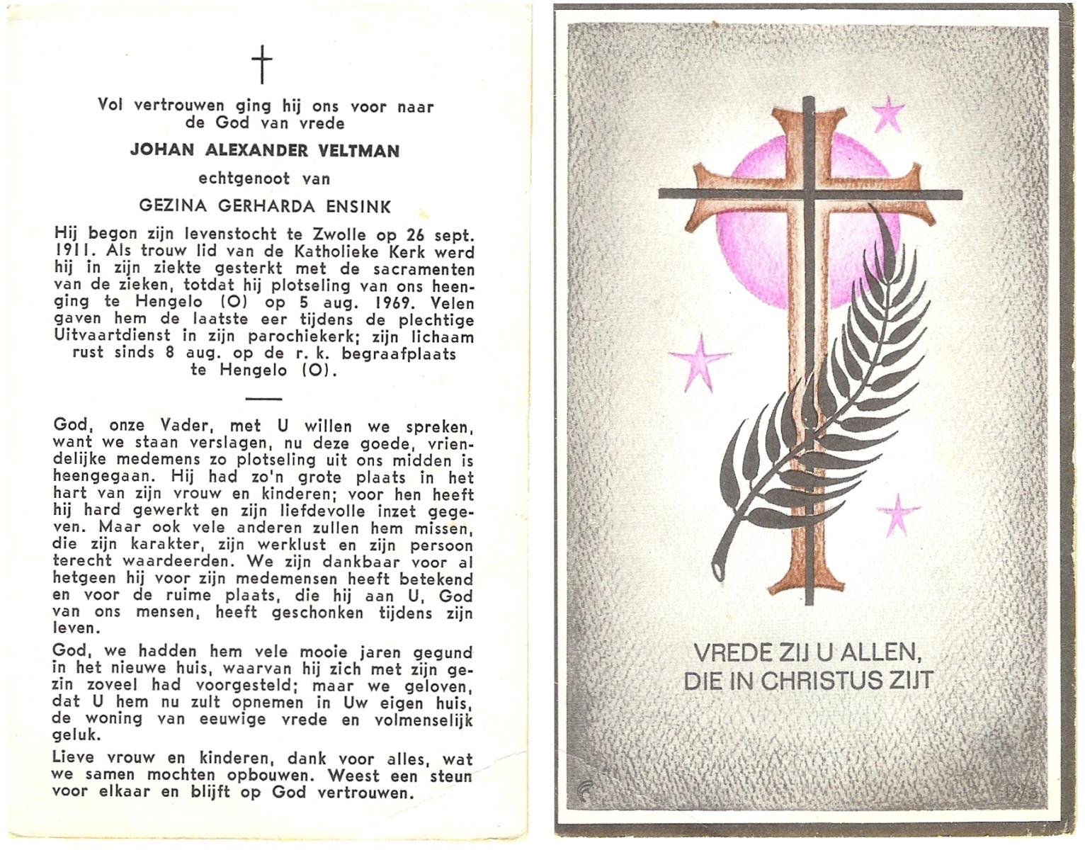 VELDBOER, Johannes Hendrikus, geboren op 13-07-1893 te Ootmarsum, overleden op 8-3-1972 te Oldenzaal op 78-jarige leeftijd, begraven op 11-3-1972 te Ootmarsum.