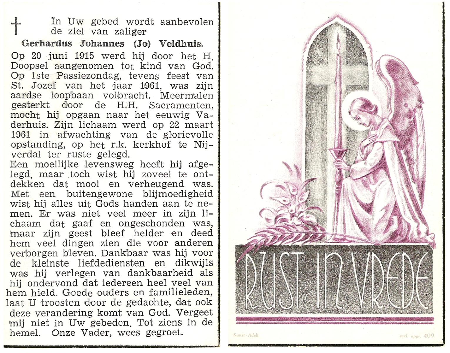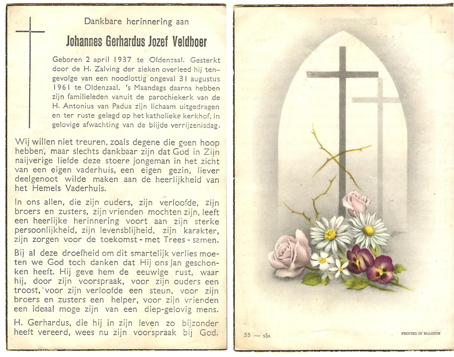 VELDBOER, Johannes Gerhardus Jozef, geboren op 2-4-1937 te Oldenzaal, overleden op 31-8-1961 te Oldenzaal op 24-jarige leeftijd, begraven te Oldenzaal.