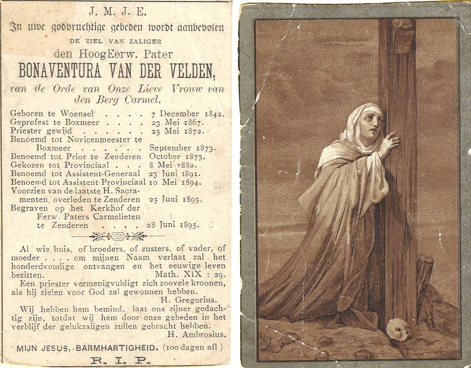 VELDEN, van der, Bonaventura, geboren op 07-12-1842 te Woensel, overleden op 25-06-1895 te Zenderen op 52-jarige leeftijd, begraven op 28-06-1895 te Zenderen.