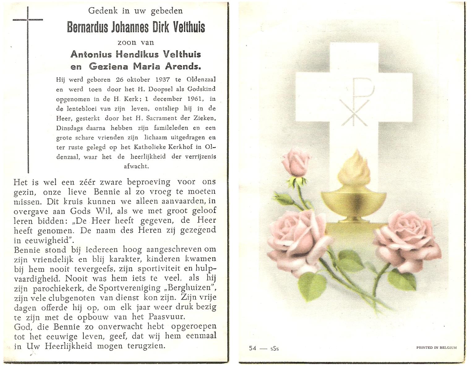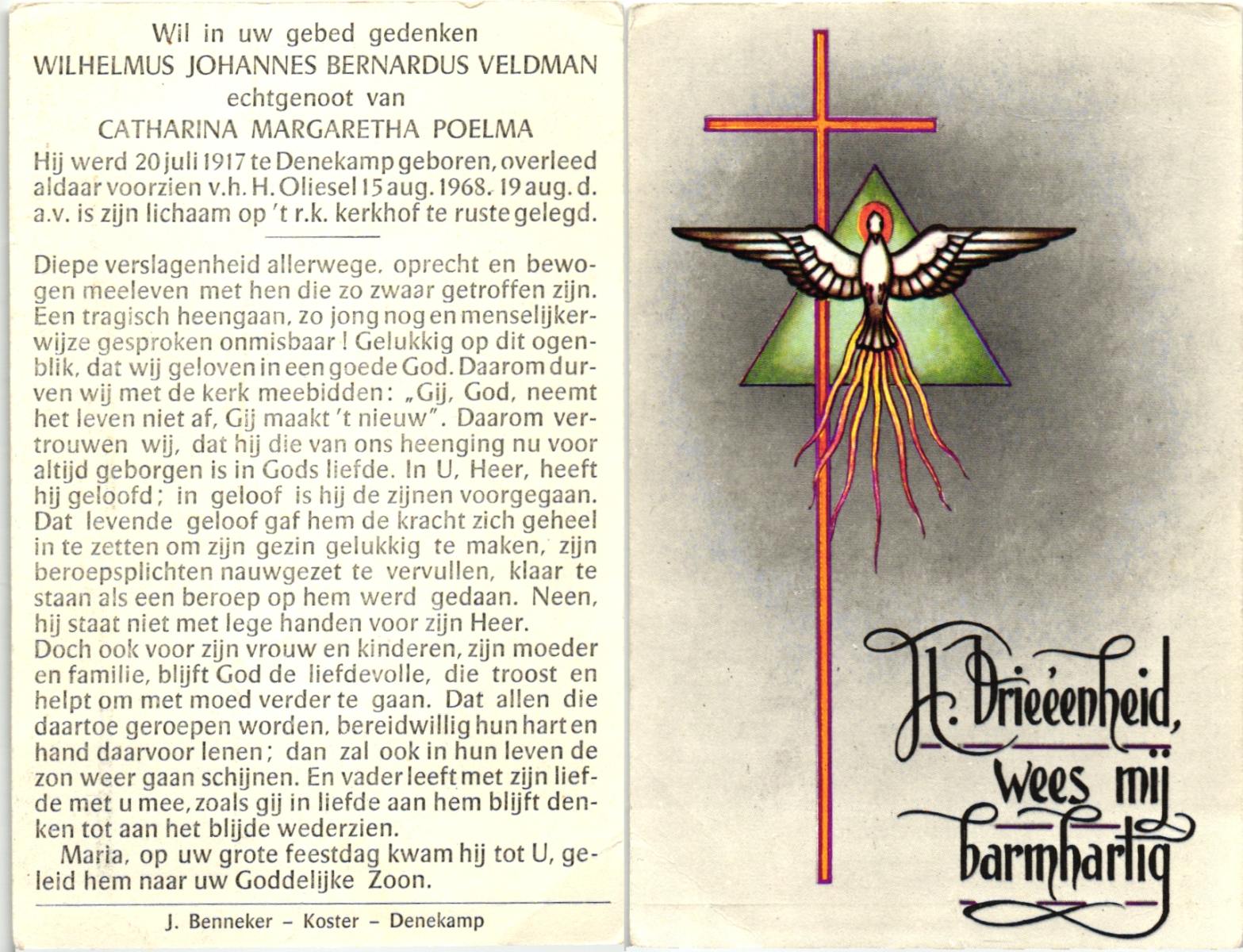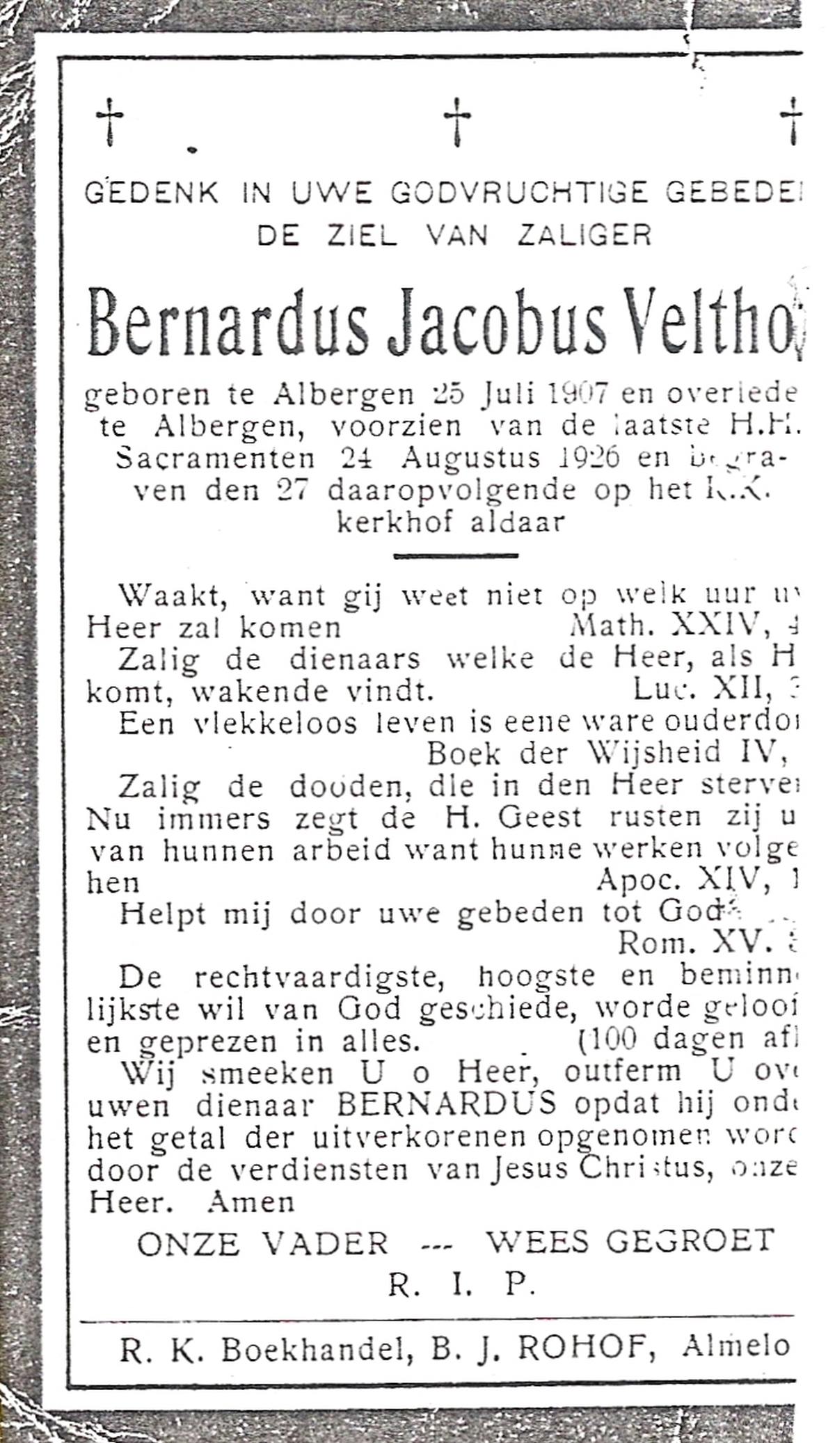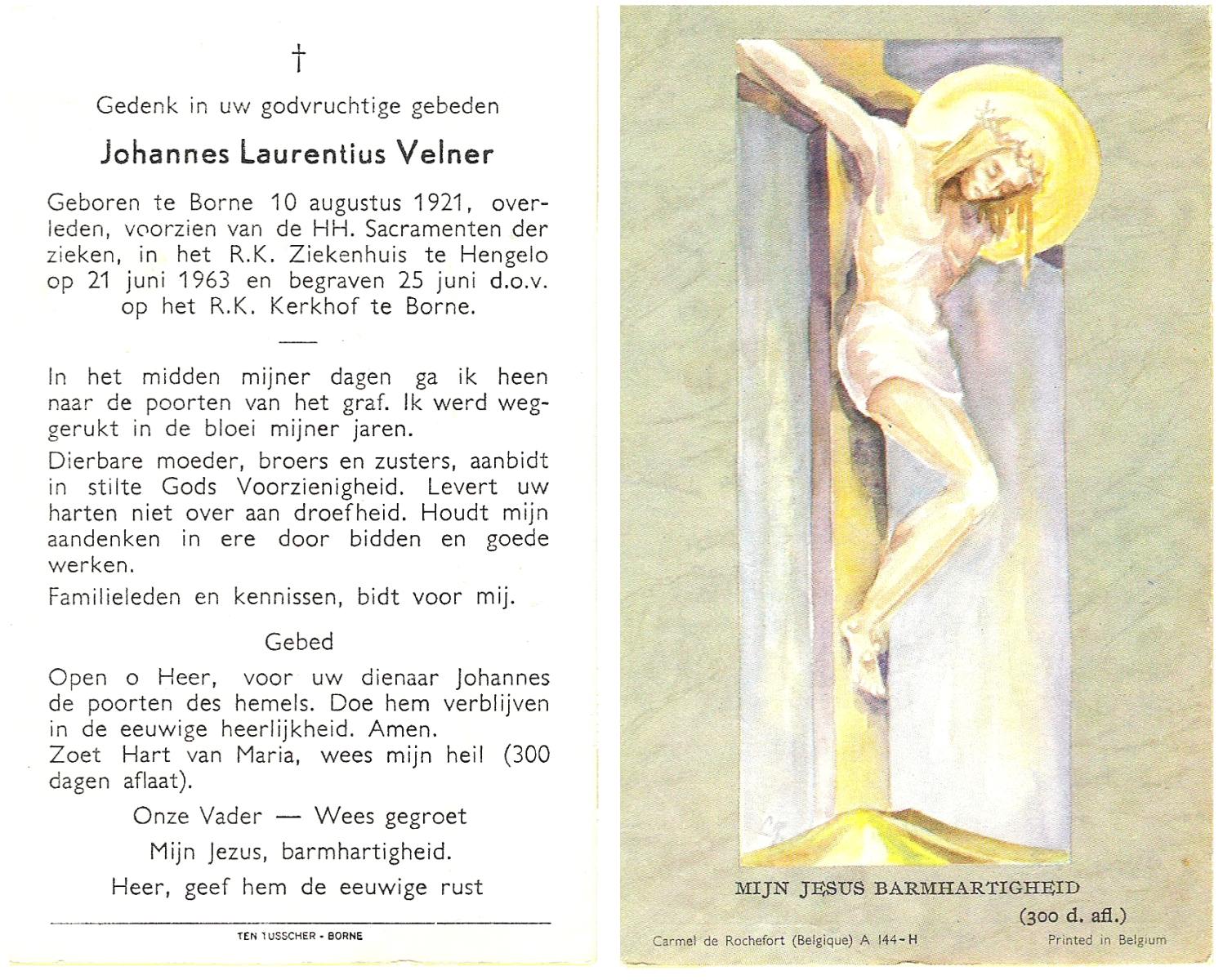 VELDHOF, Bernardus Wilhelmus, geboren op 20-10-1911 te Borne, overleden op 7-5-1972 op 60-jarige leeftijd, begraven op 10-5-1972 te Borne.