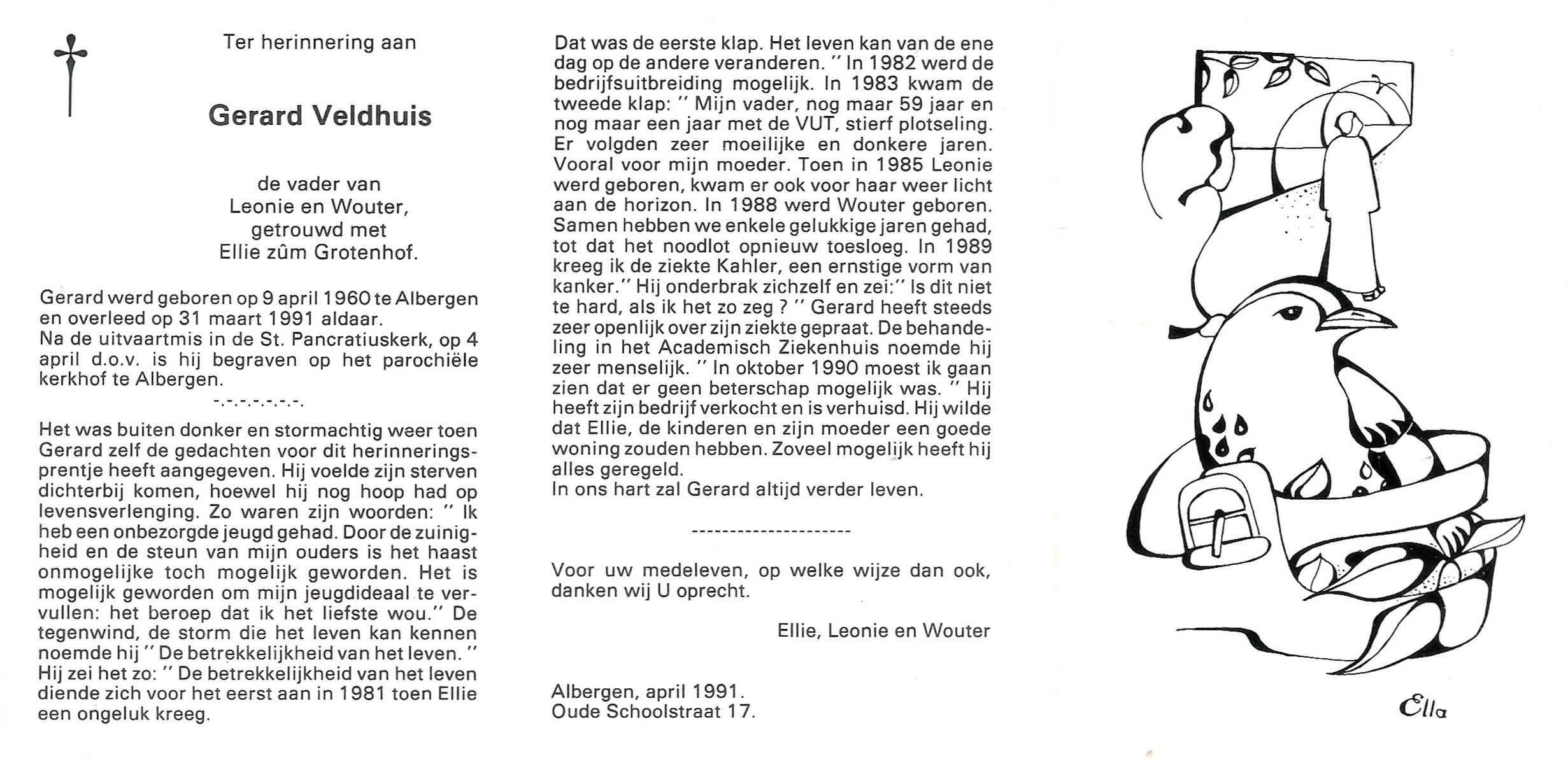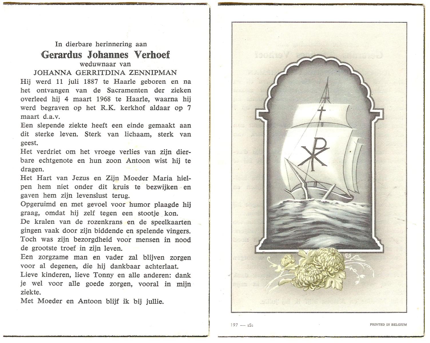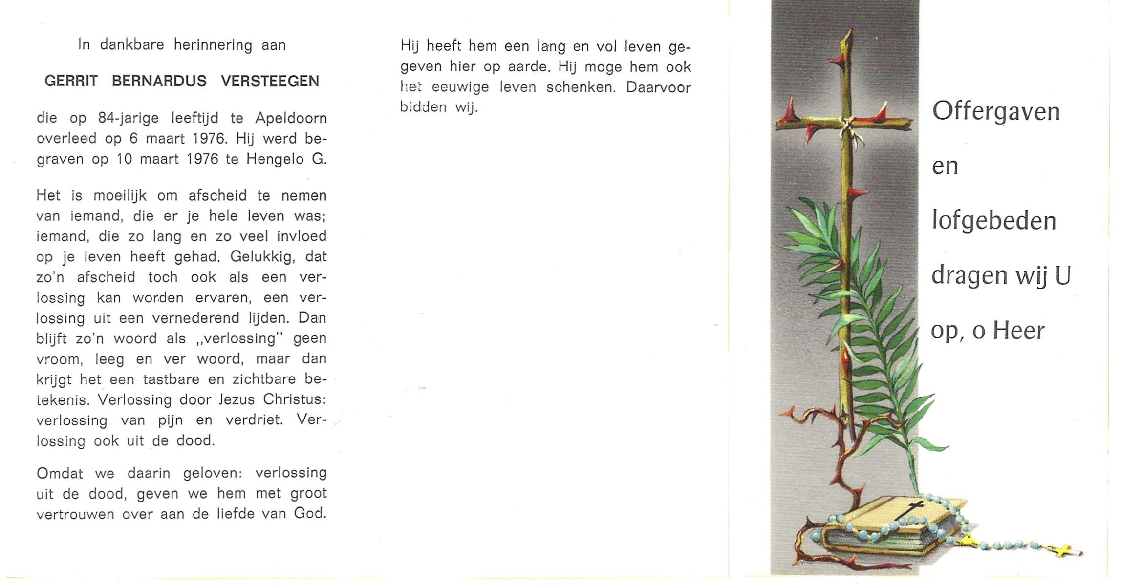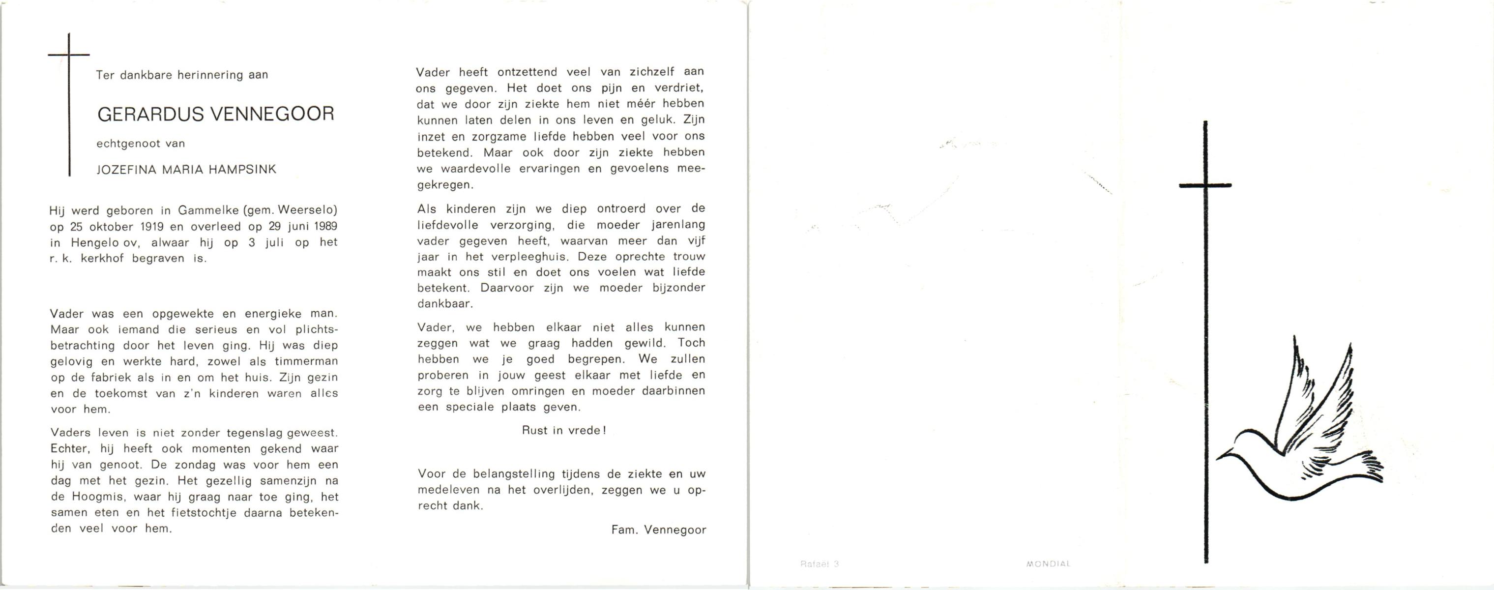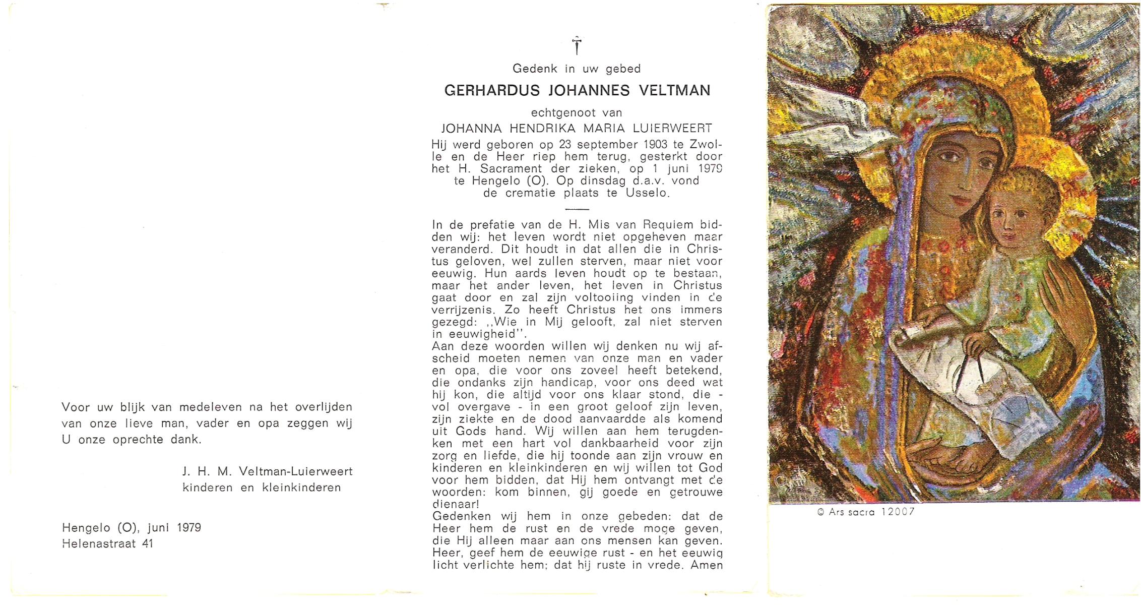 VELDHOF, Gerardus, geboren op 9-5-1917 te Albergen, overleden op 20-10-1989 te Almelo op 71-jarige leeftijd, begraven op 23-10-1989 te Albergen.
