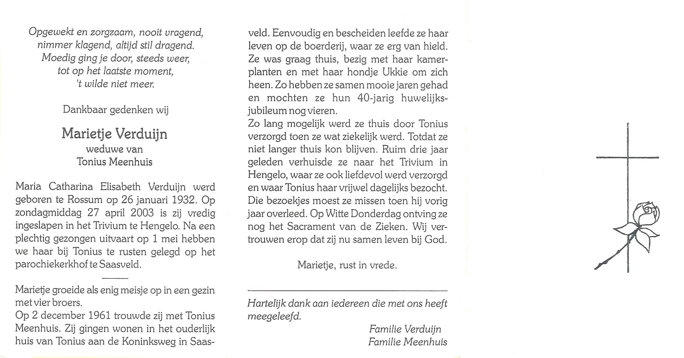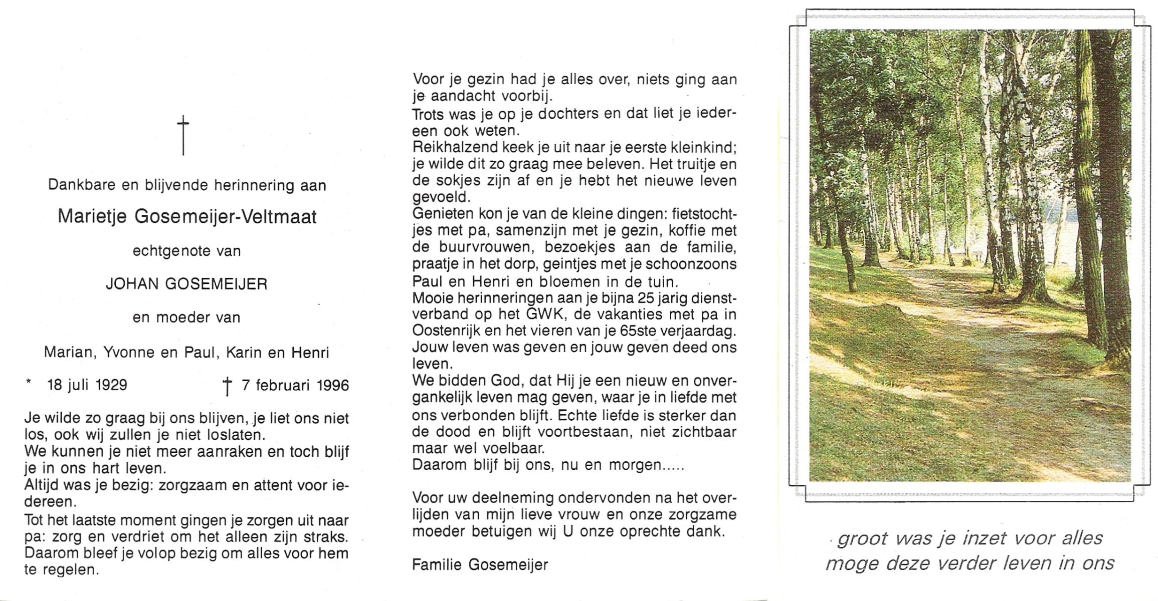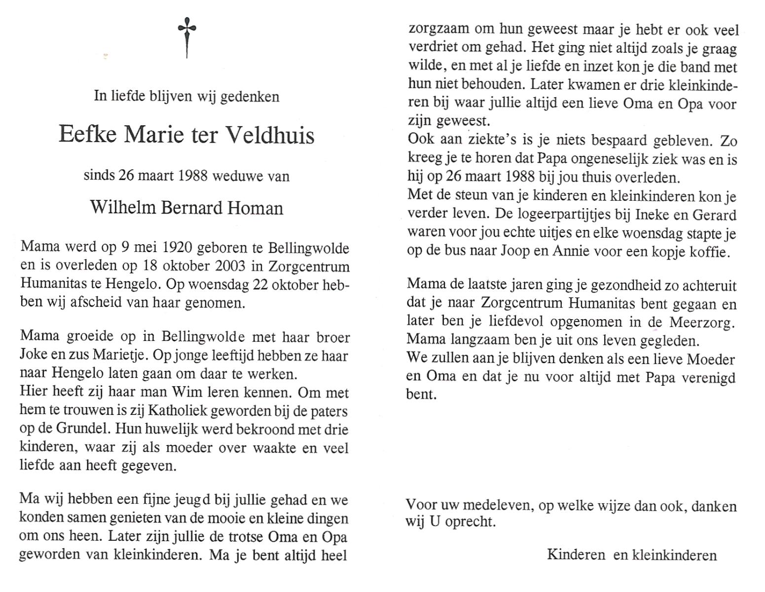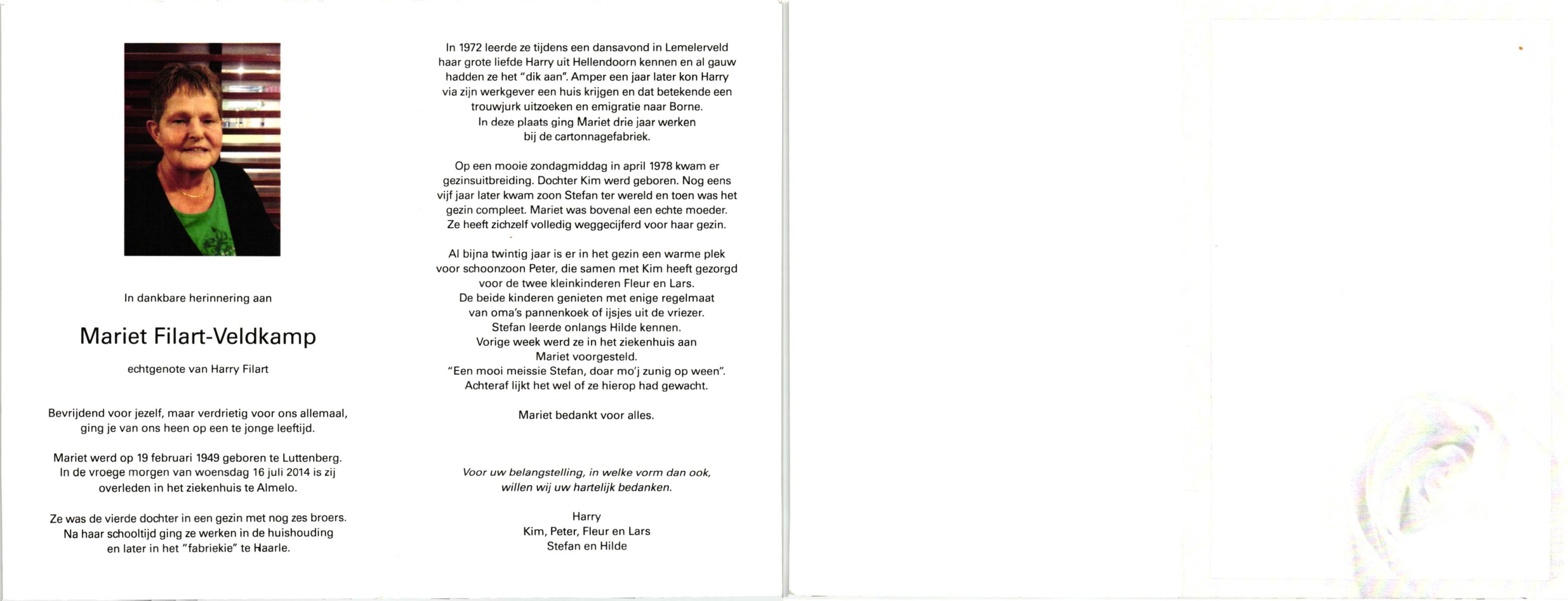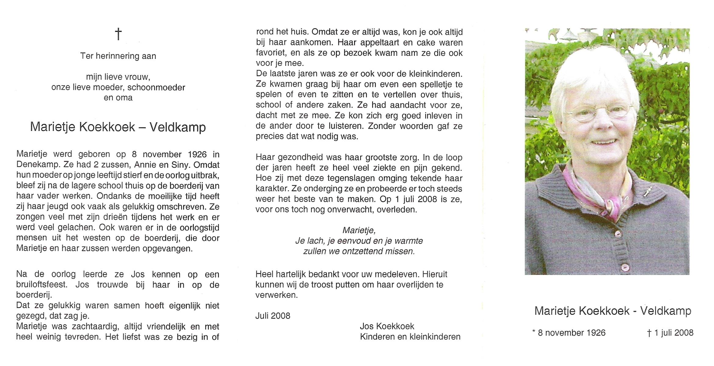 VELD, in het, Marietje, geboren op 20-11-1928 te Weerselo, overleden op 25-4-2007 te Weerselo op 78-jarige leeftijd.