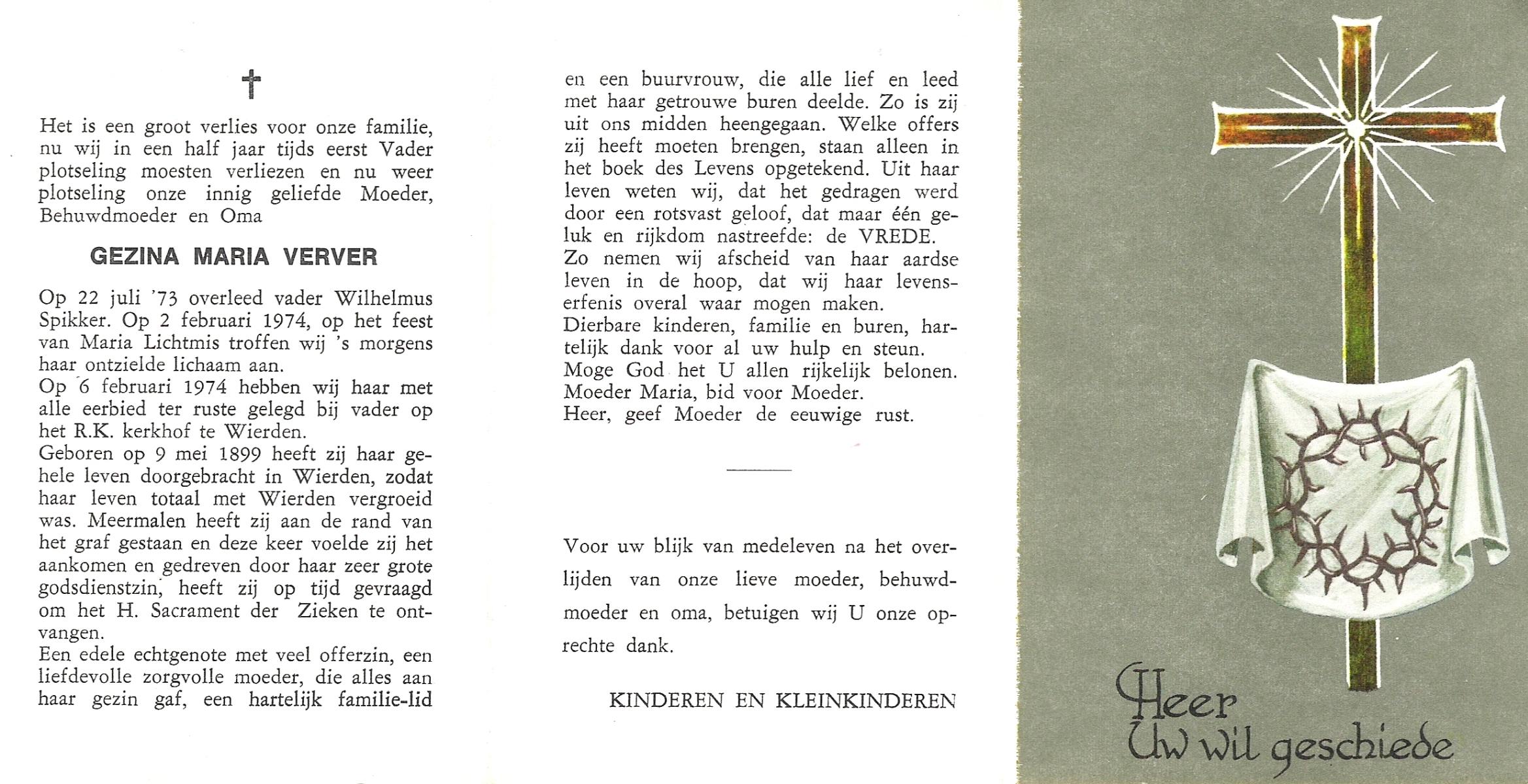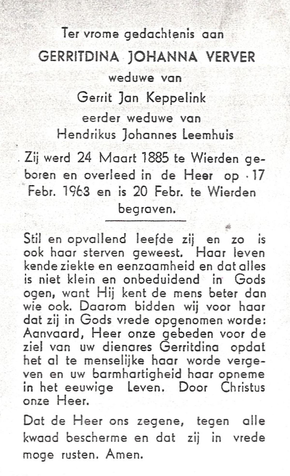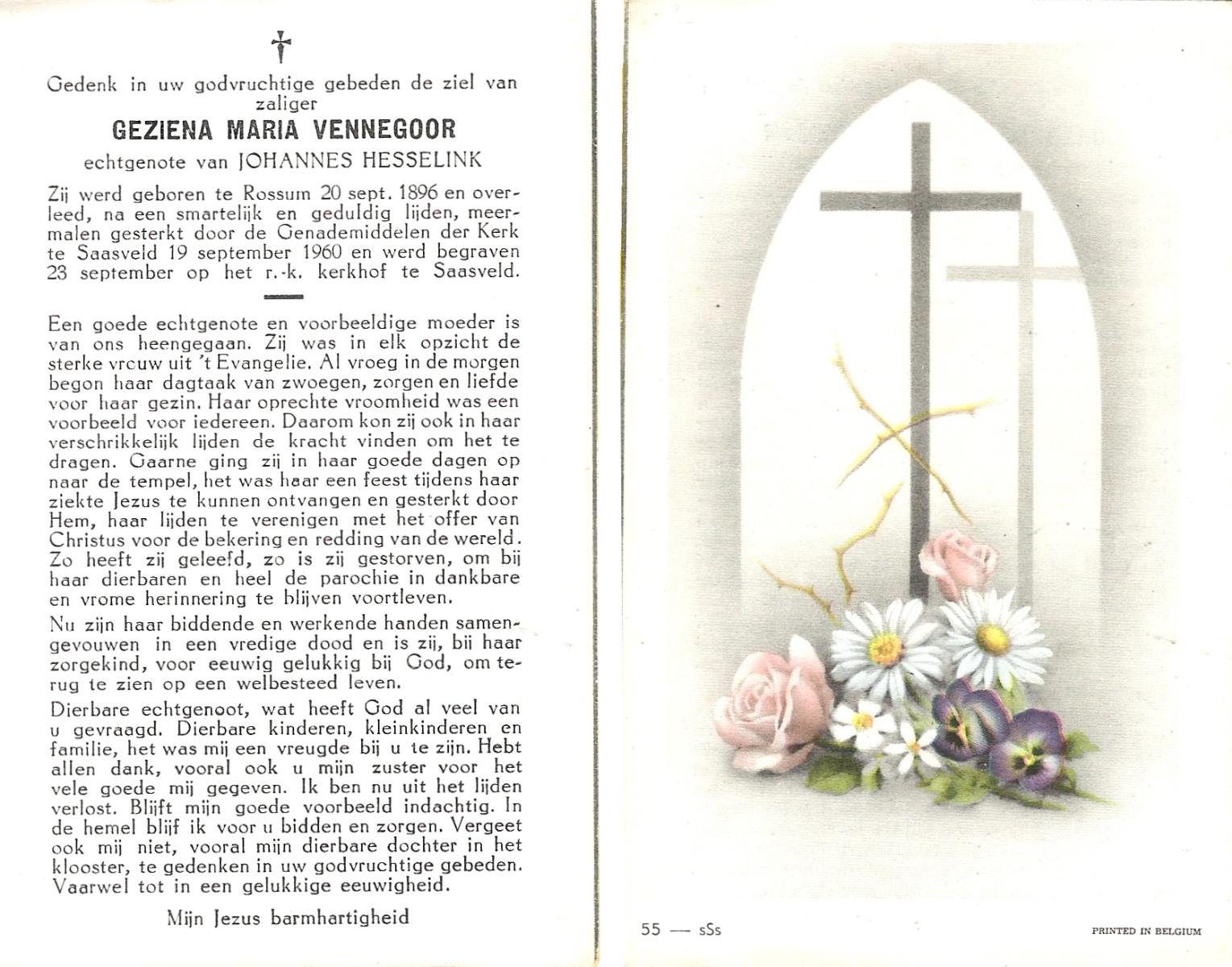 VISSCHEDIJK, Gezina Maria, geboren op 04-09-1876 te Weerselo, overleden op 21-2-1963 te Losser op 86-jarige leeftijd, begraven op 25-2-1963 te Losser.