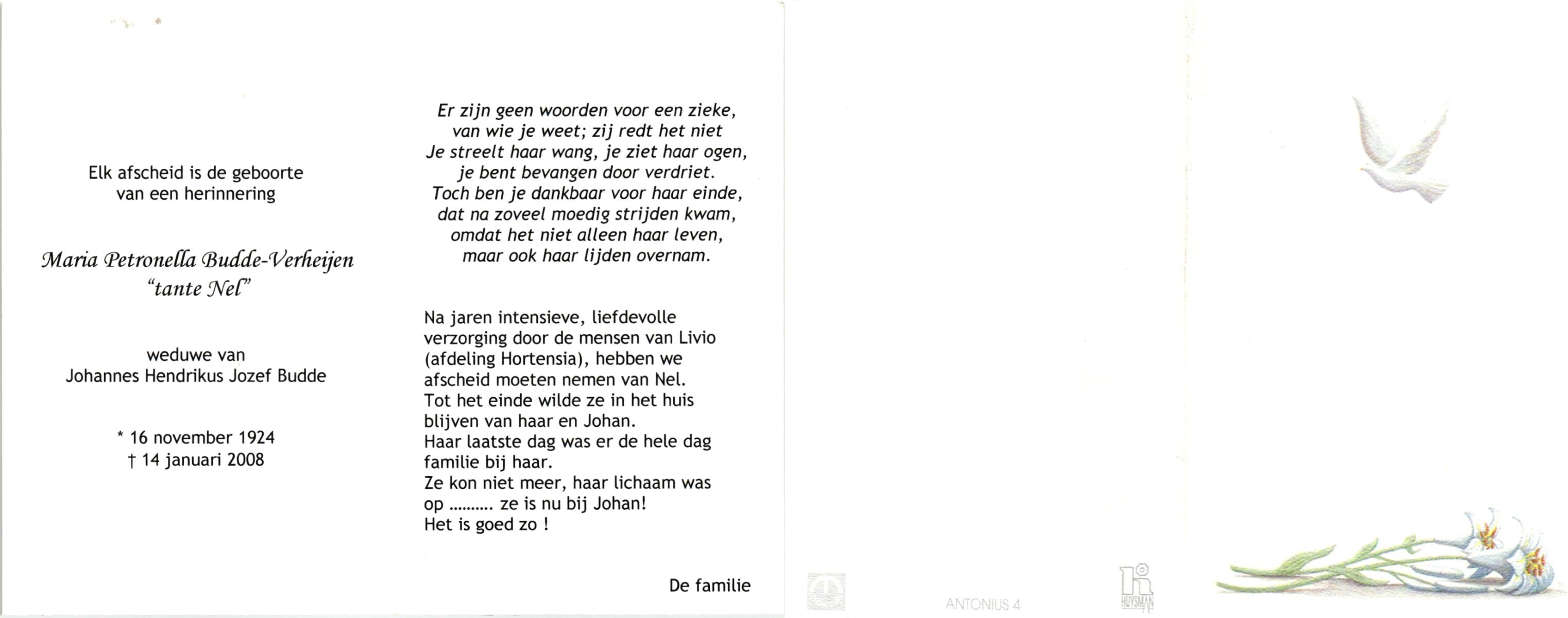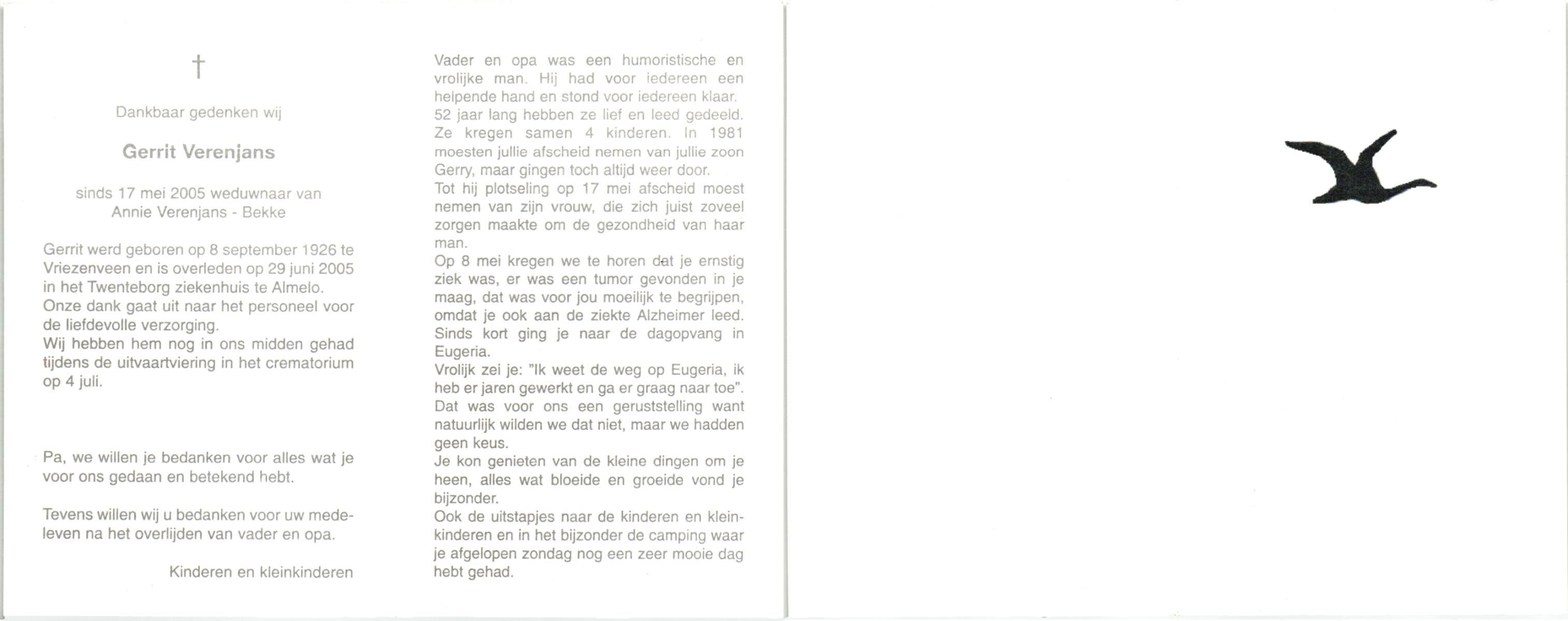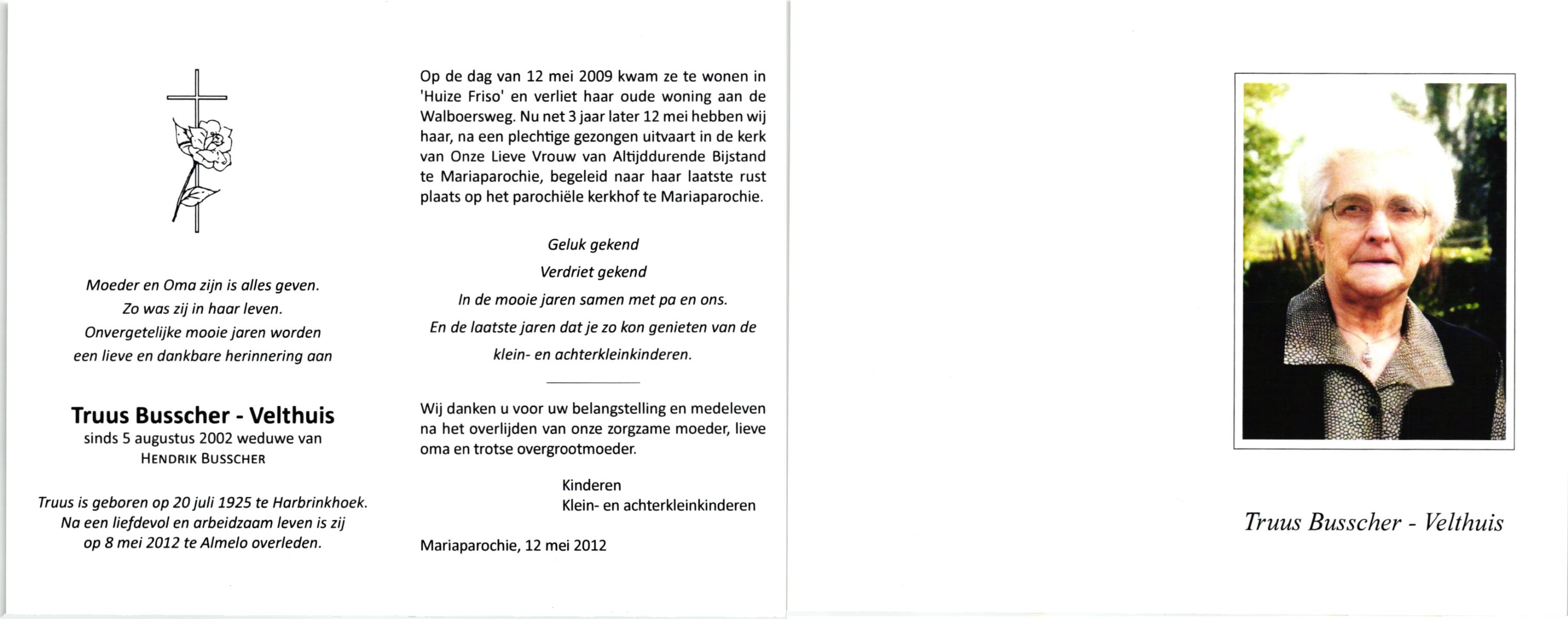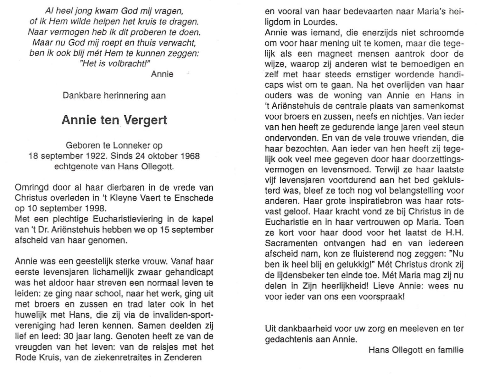 VELDE, ten, Annie, geboren op 11-9-1912 te Albergen, overleden op 31-7-2008 te Almelo op 95-jarige leeftijd.