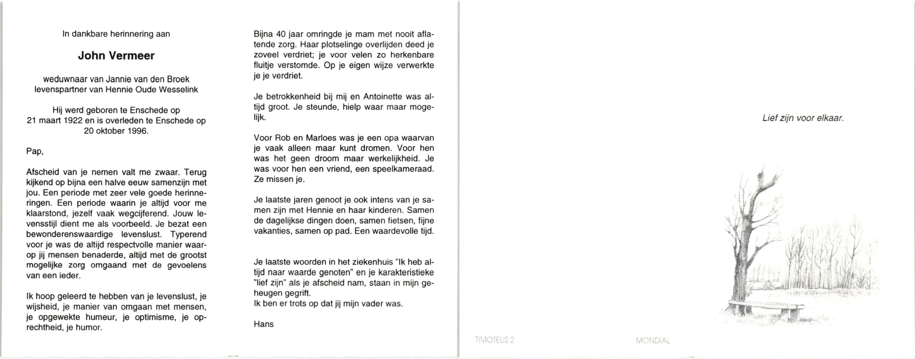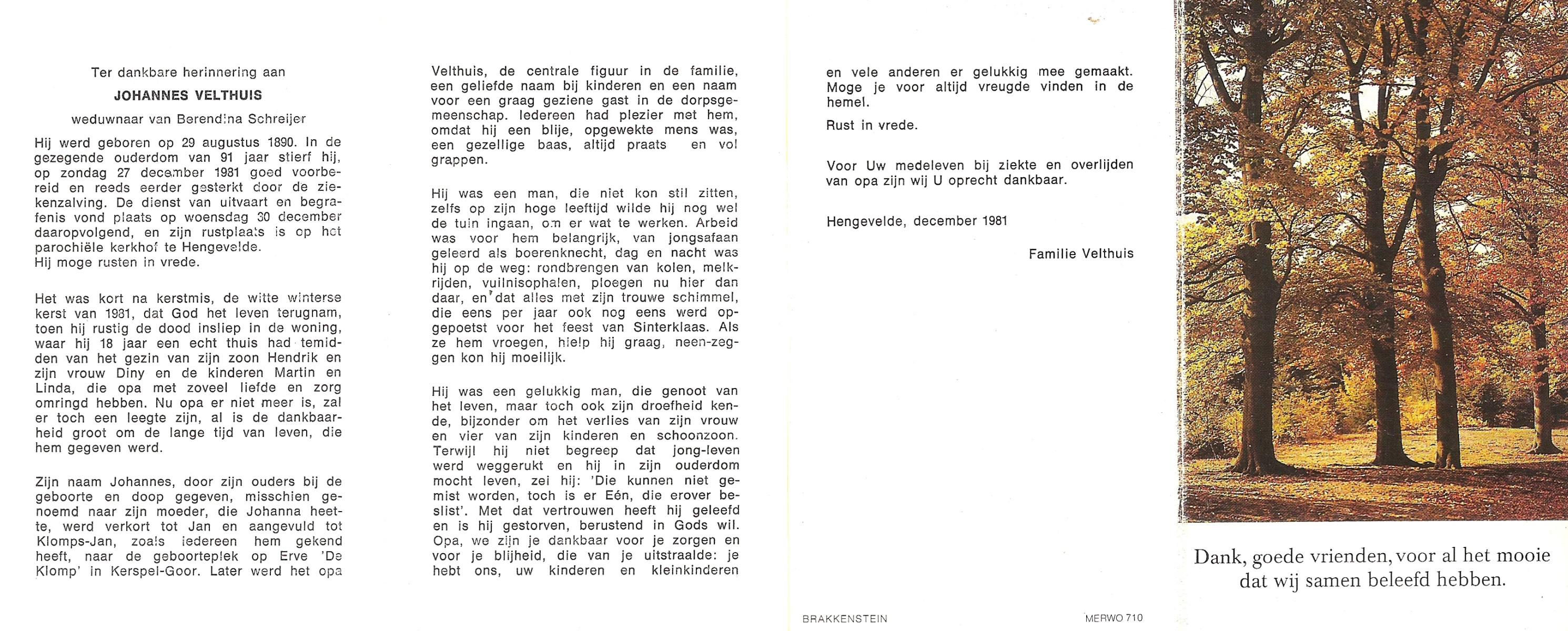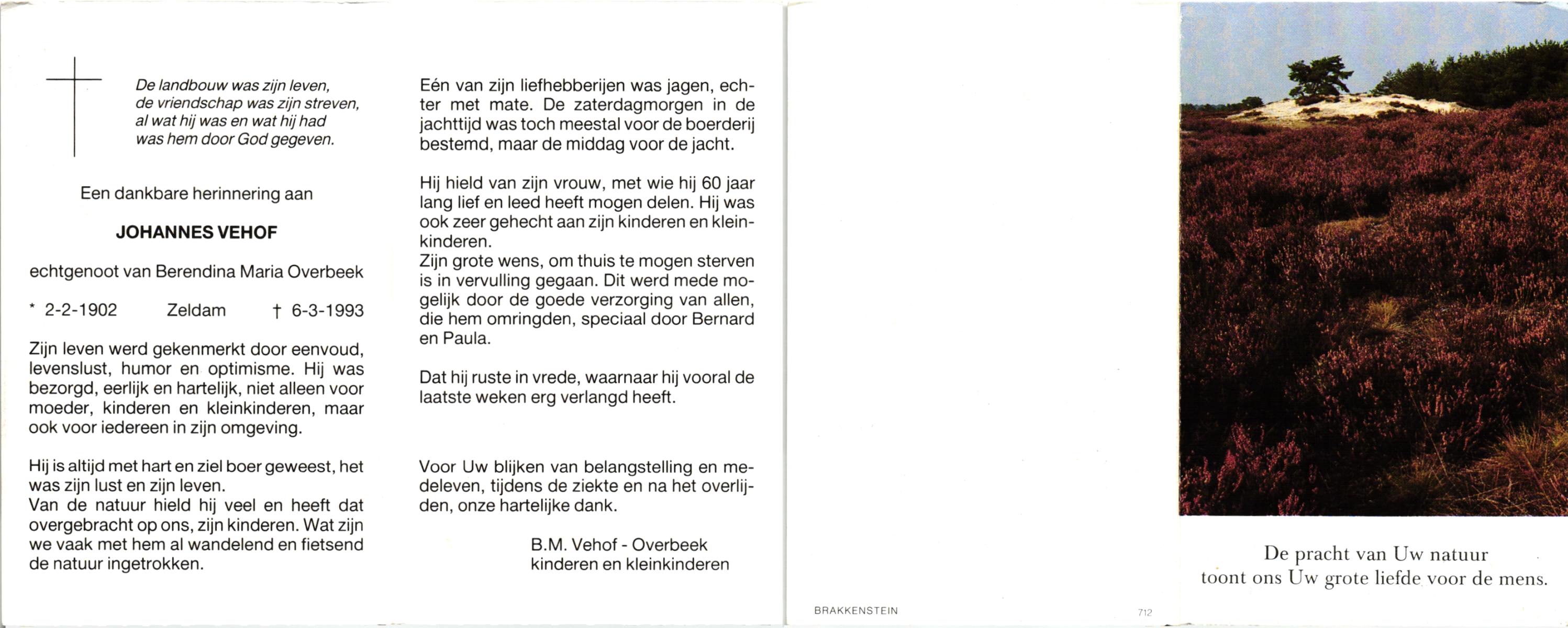 VEHOF, , Johannes, geboren op 2-2-1902 te Zeldam, overleden op 6-3-1993 te Zeldam op 91-jarige leeftijd.
