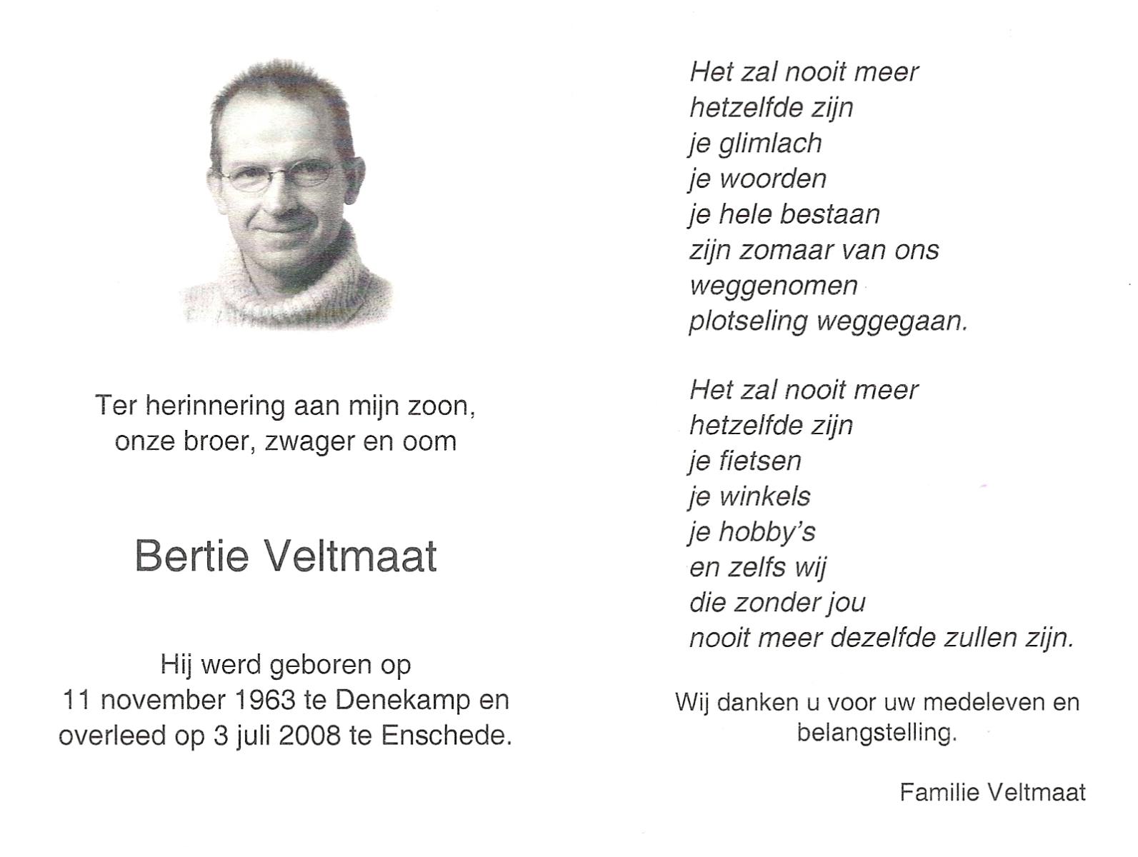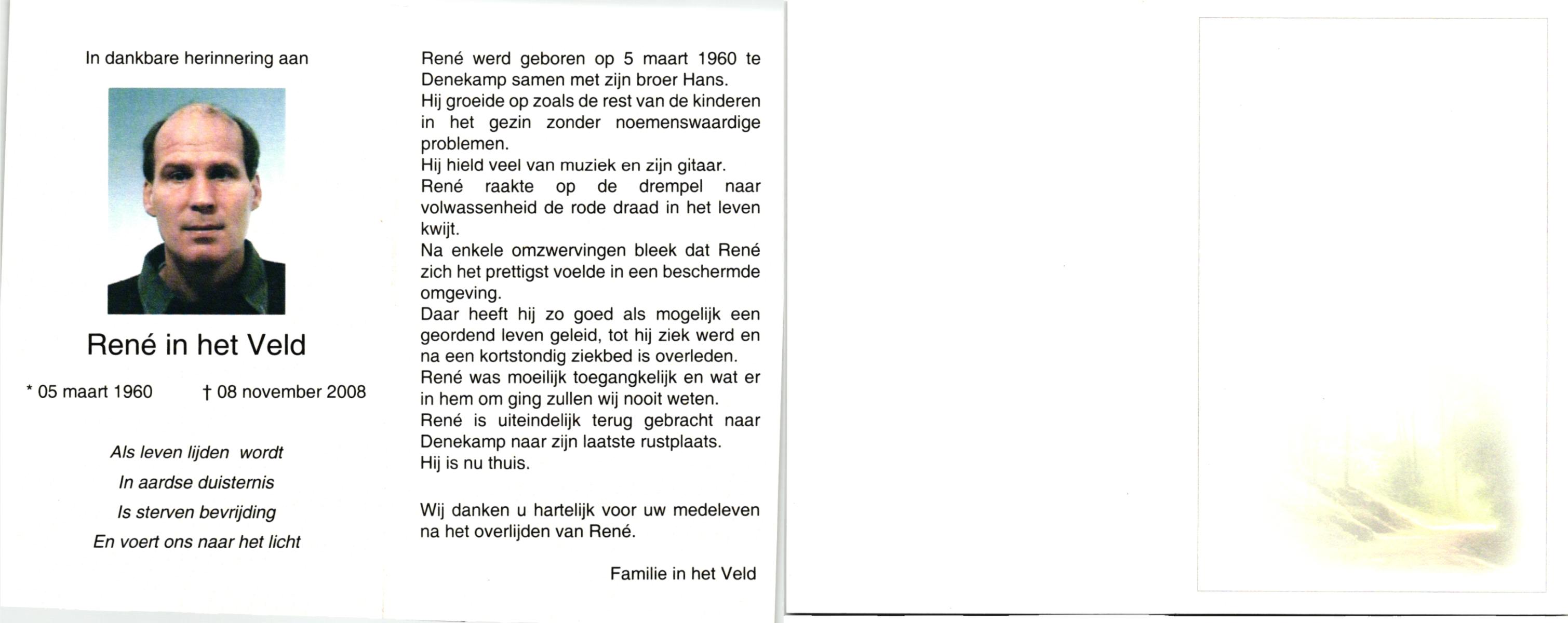 VELD, in het, René, geboren op 5-3-1960 te Denekamp, overleden op 8-11-2008 op 48-jarige leeftijd.