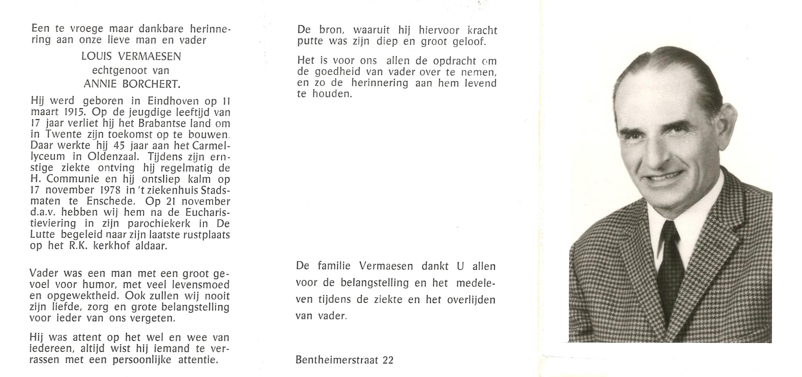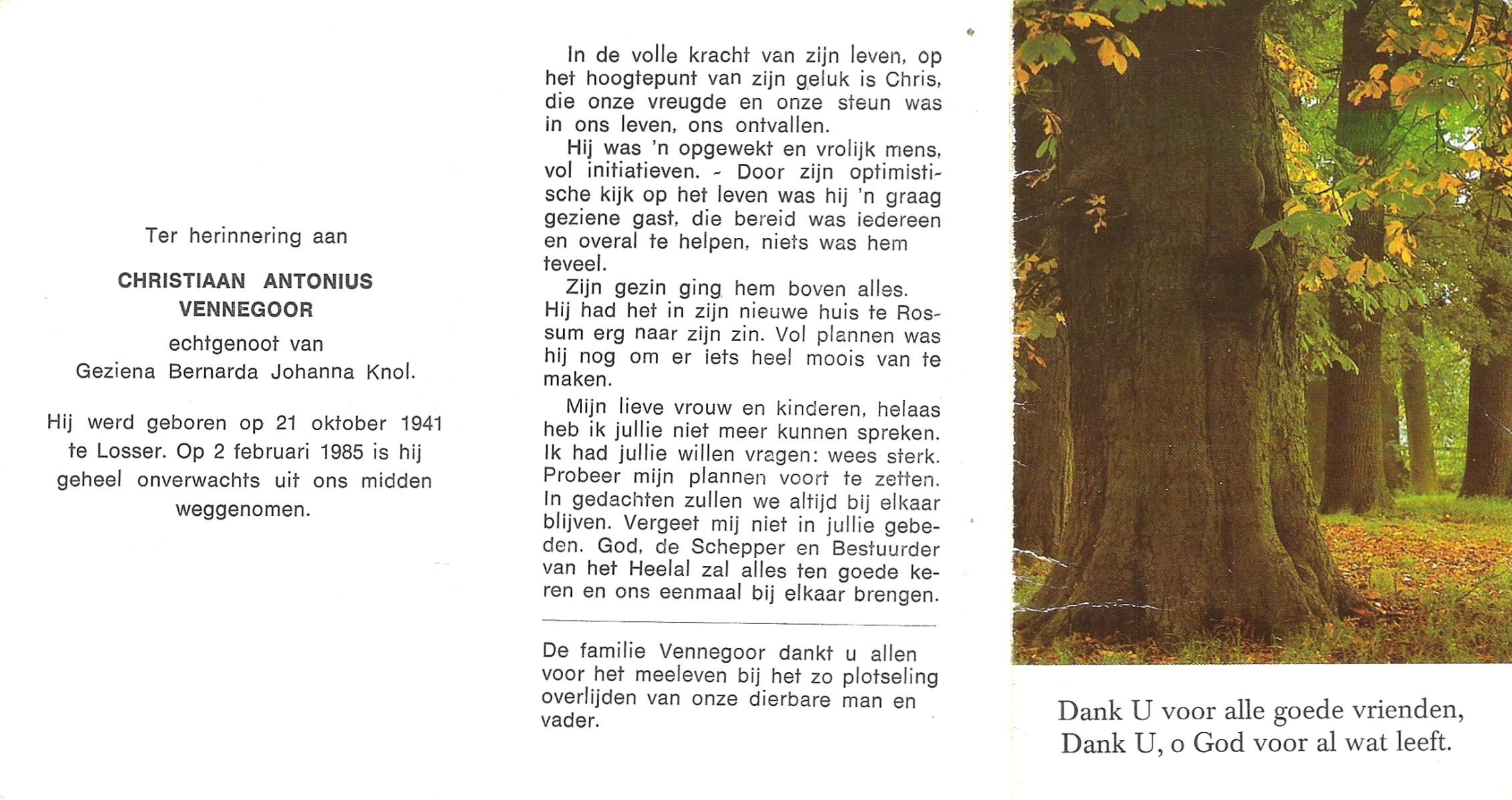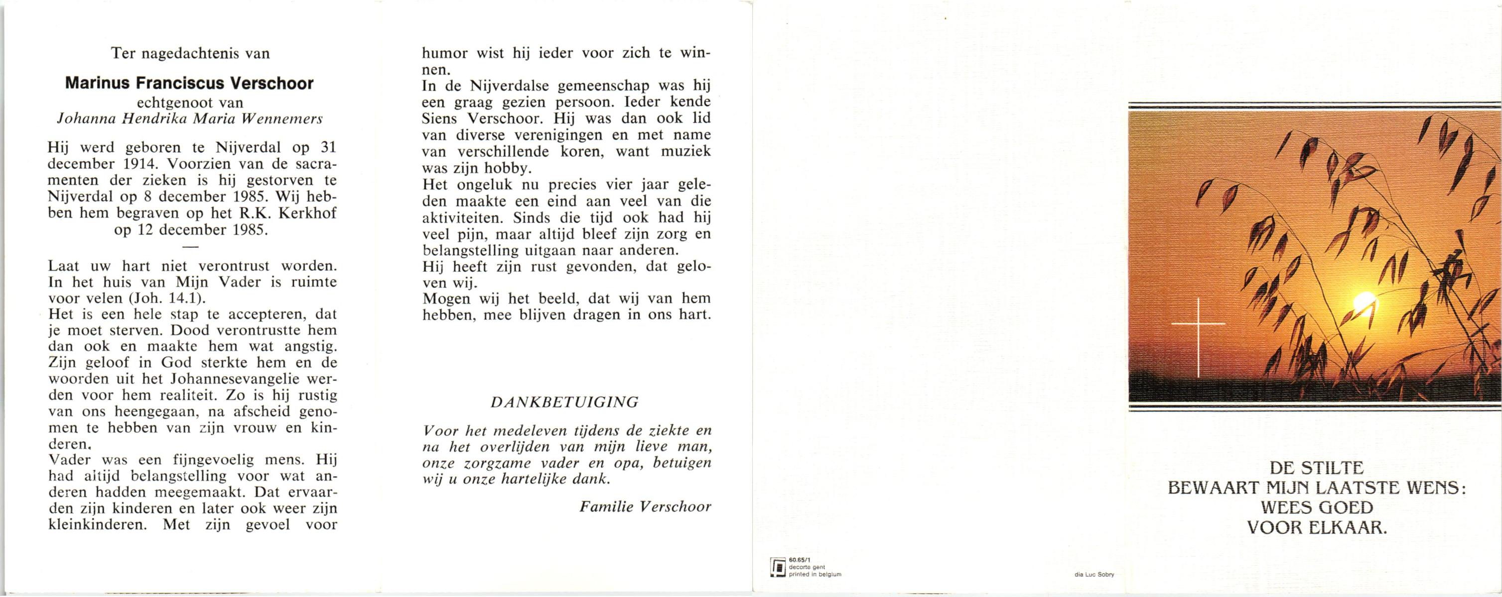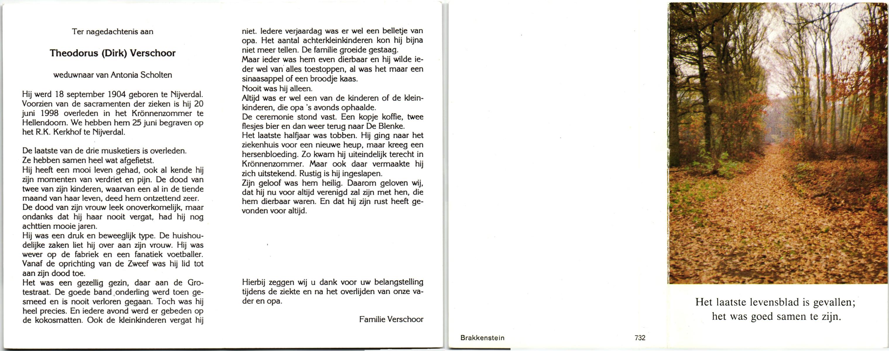 VISSCHEDIJK, Hendrikus Antonius, geboren op 16-1-1907 te De Lutte, overleden op 24-4-1992 te Denekamp op 85-jarige leeftijd, begraven op 28-4-1992 te Denekamp.