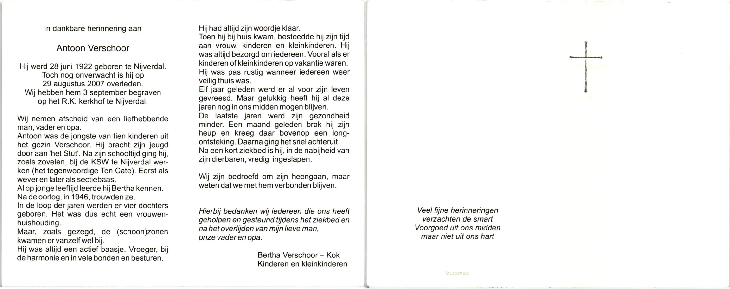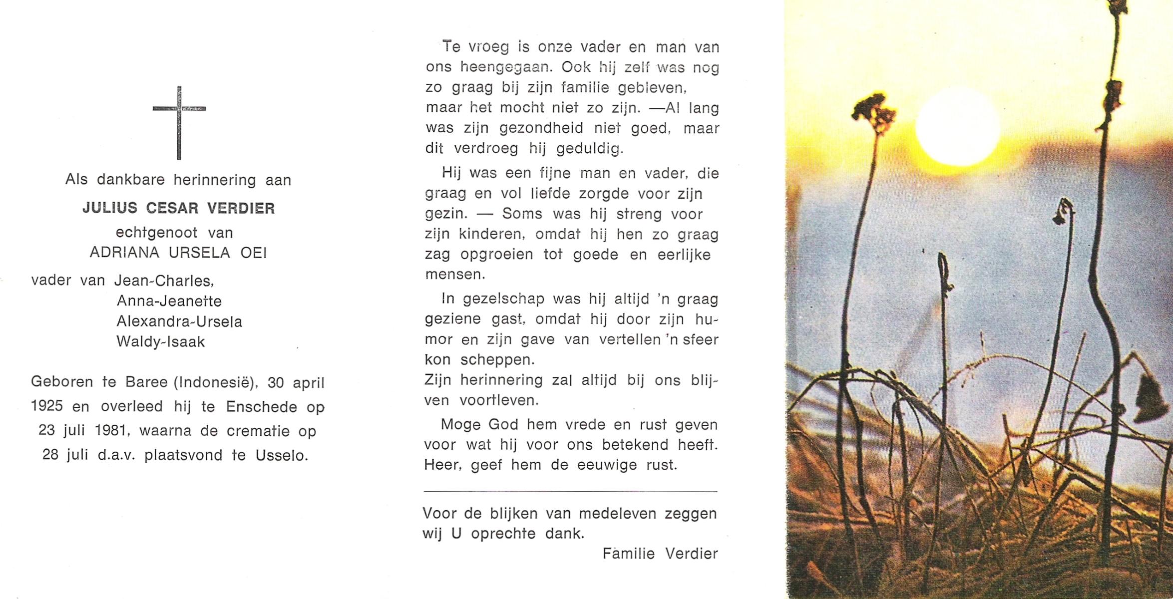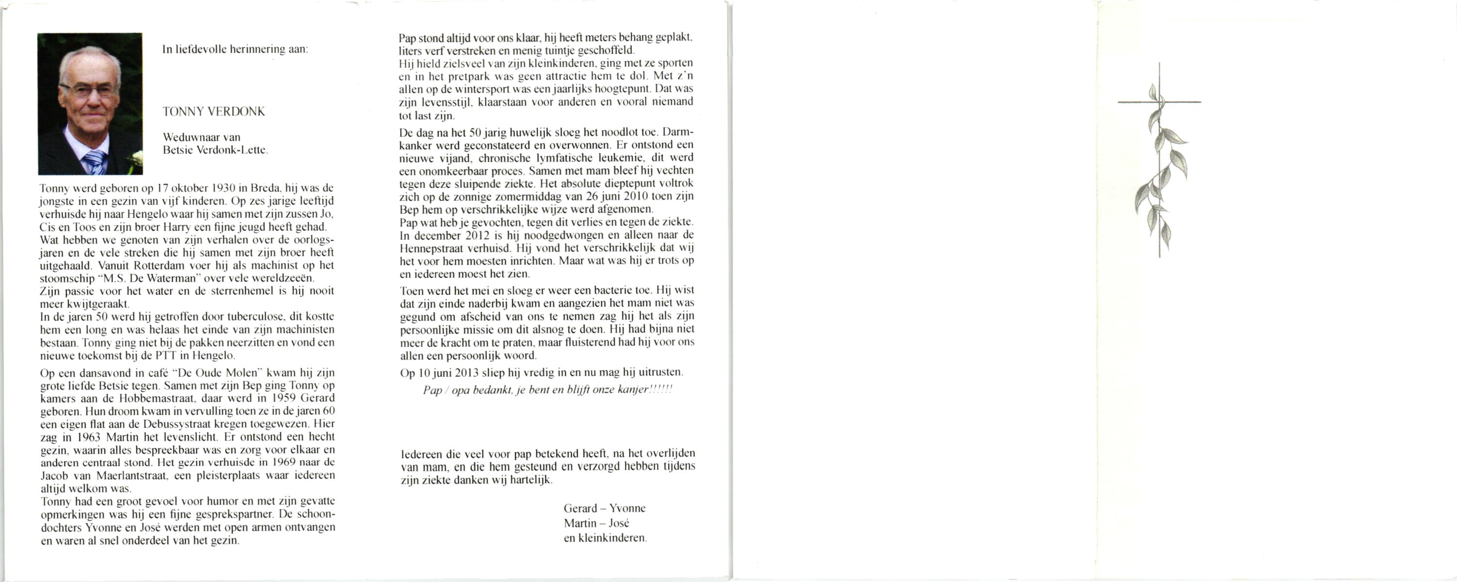 VIERDAG, Antoon, geboren op 11-5-1909 te Enschede, overleden op 17-3-1981 te Enschede op 71-jarige leeftijd, gecremeerd op 20-3-1981 te Usselo.