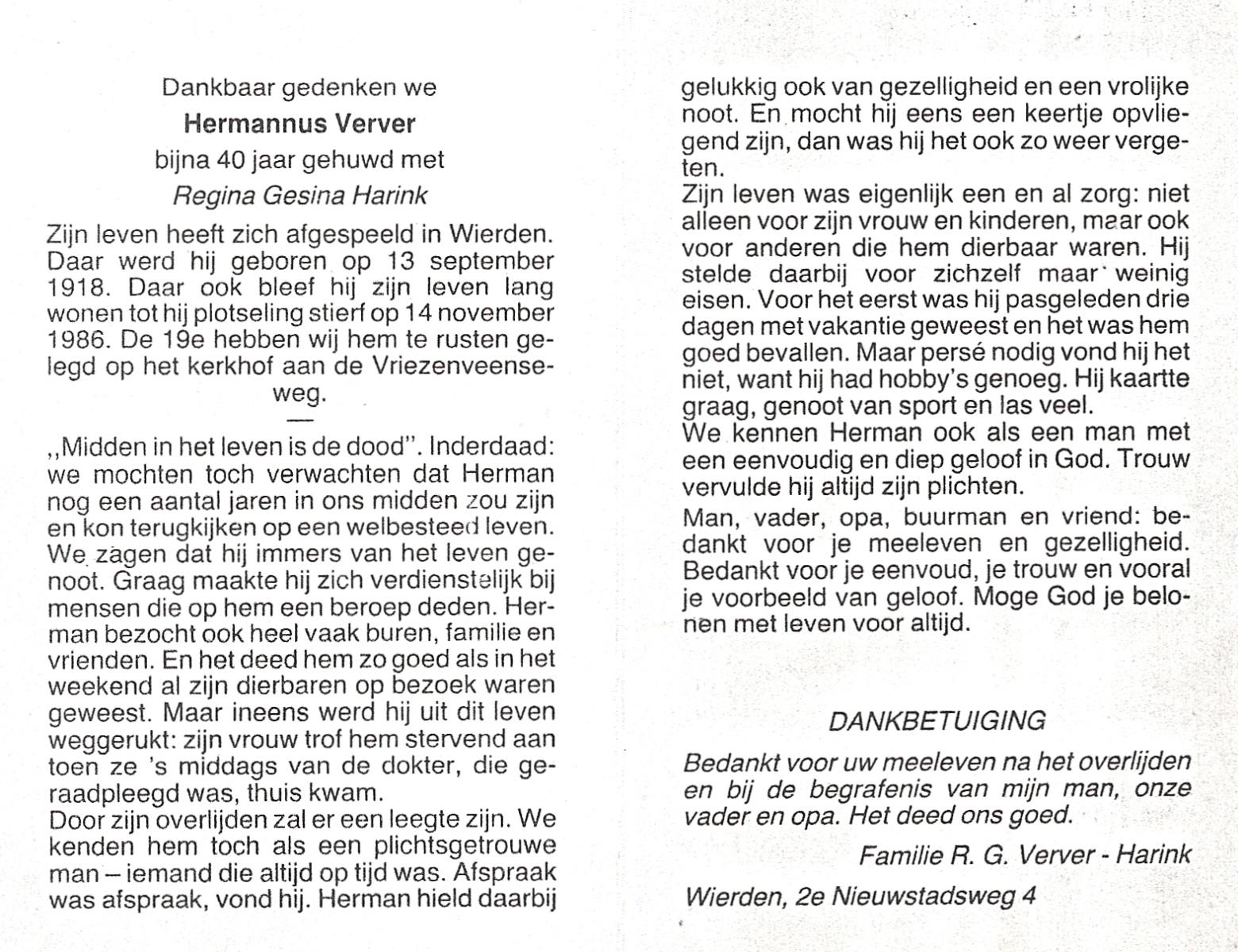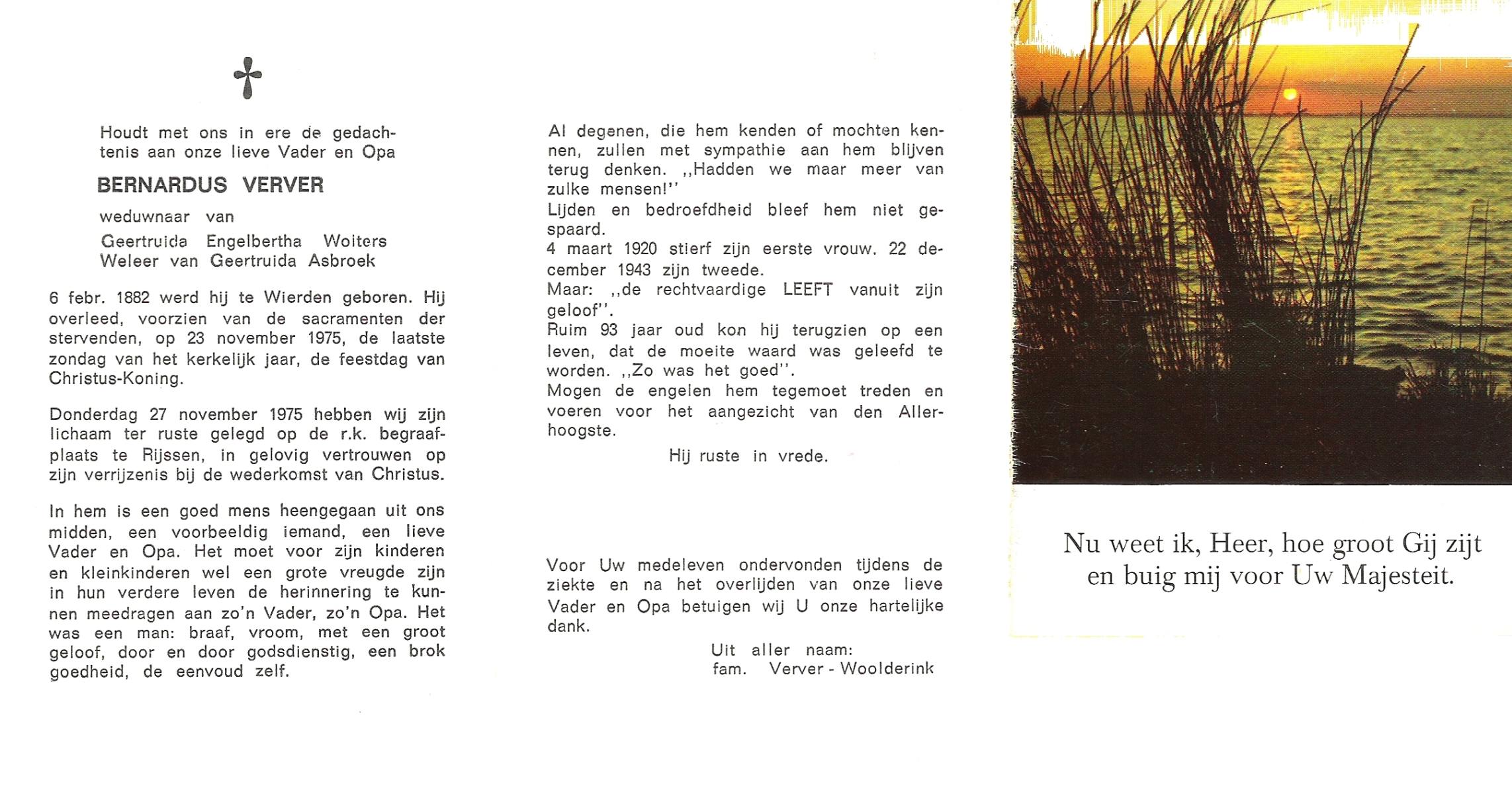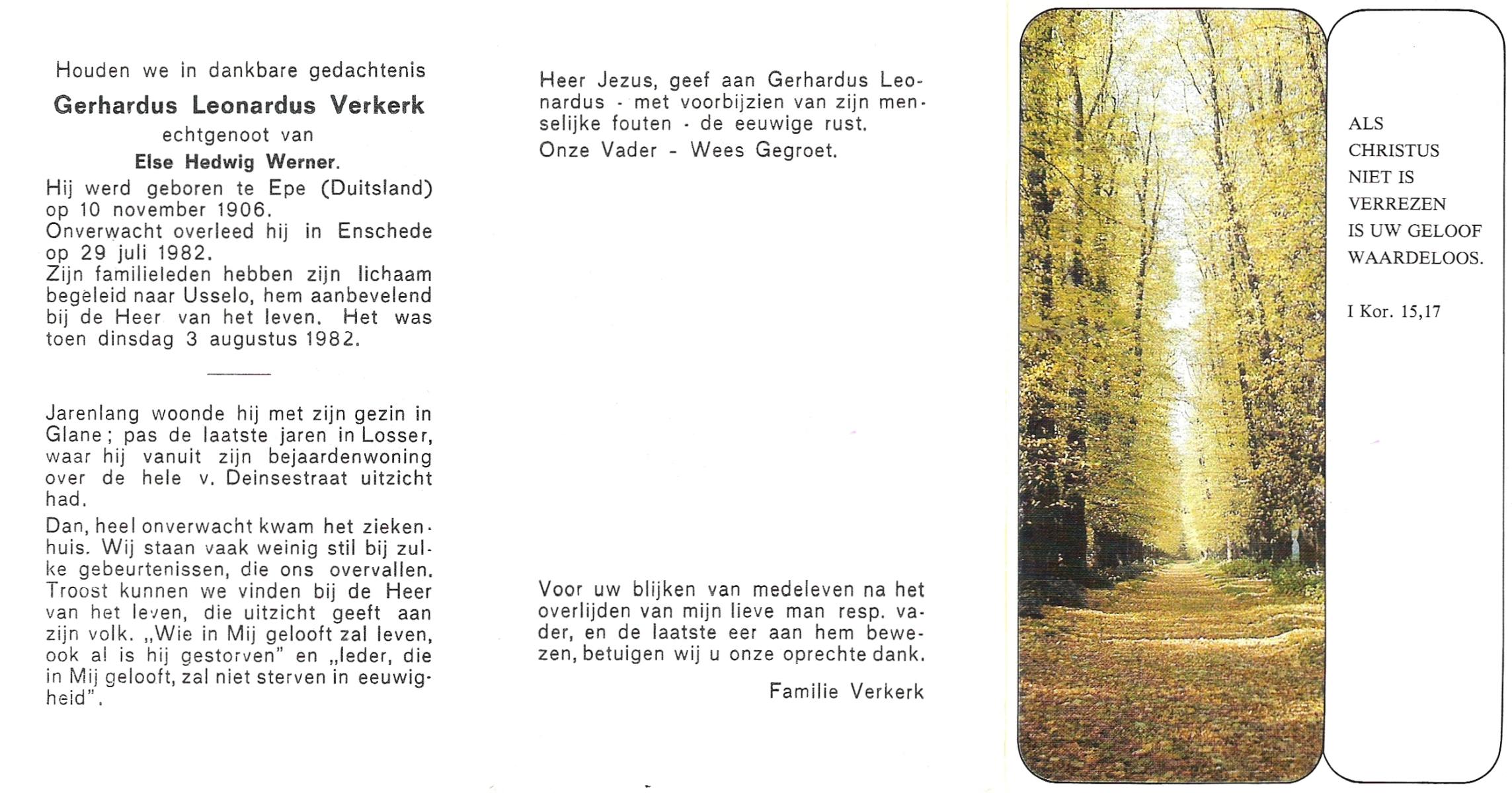 VERWEG, Jans, geboren op 1-2-1904 te Slagharen, overleden op 30-6-1978 te Hardenberg op 74-jarige leeftijd, begraven op 4-7-1978 te Slagharen kerkhof de Belte.