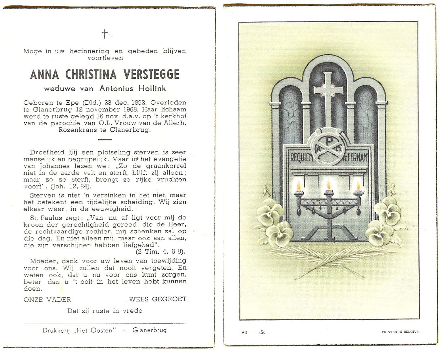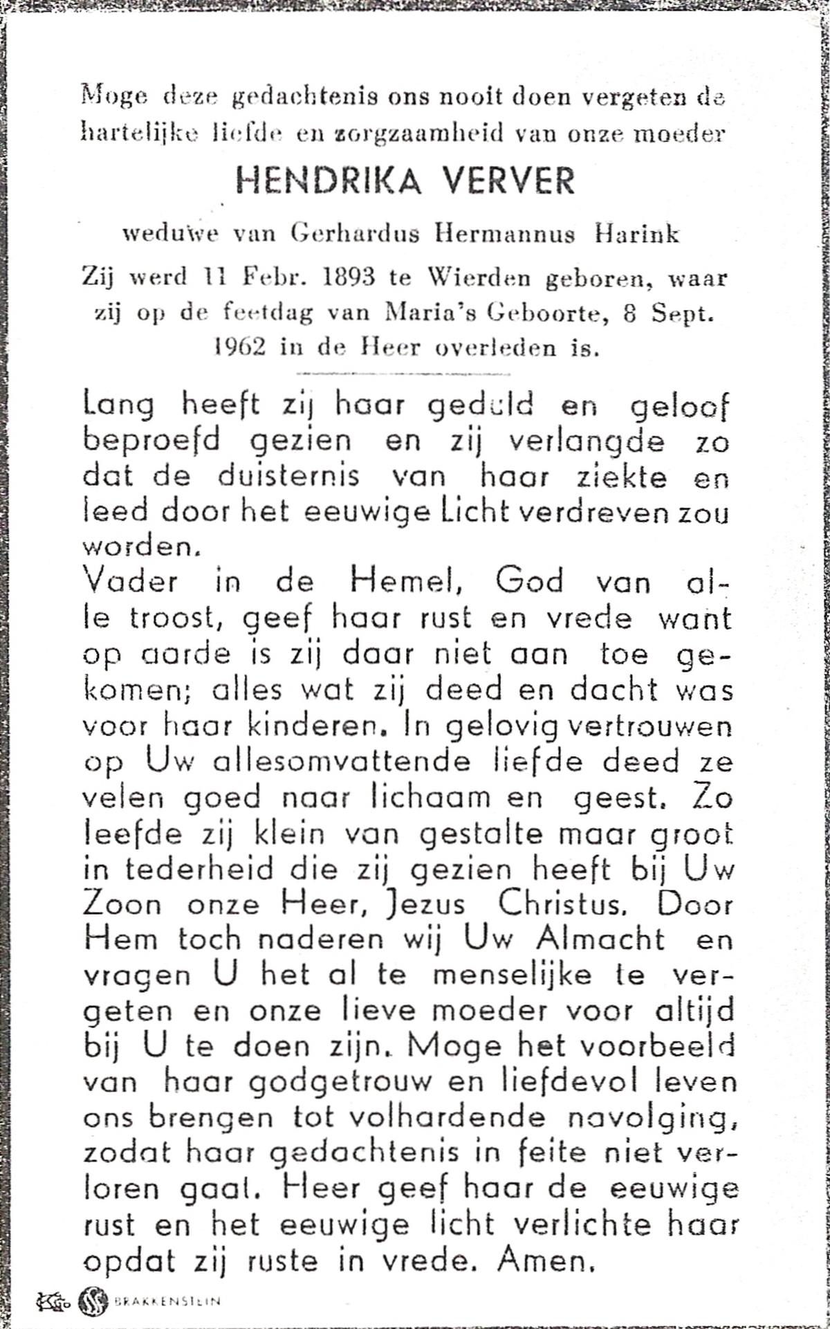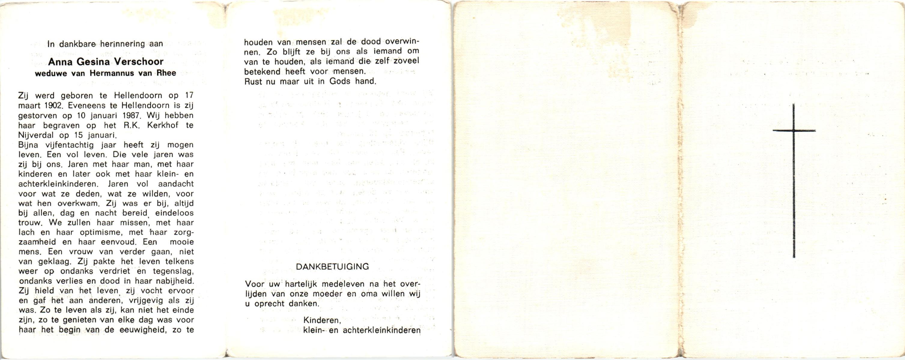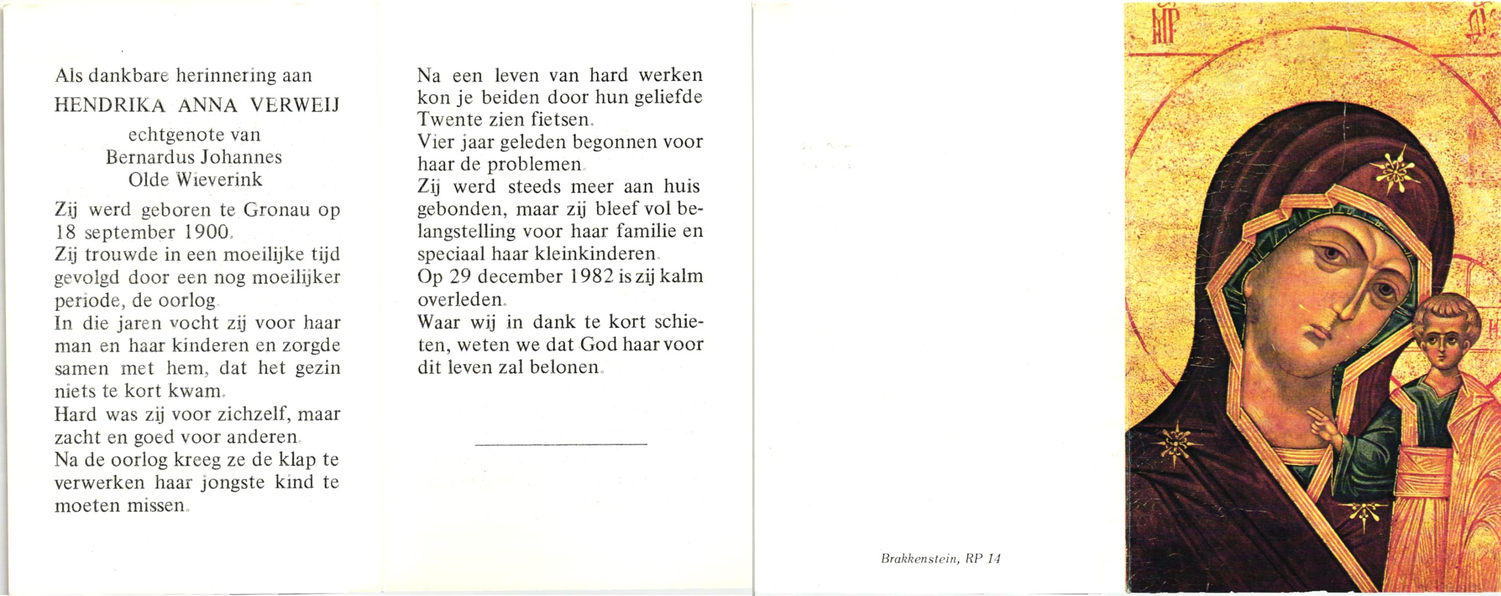 VERWEIJ, , Hendrika Anna, geboren op 18-9-1900 te Gronau, Dld, overleden op 29-12-1982 op 82-jarige leeftijd.