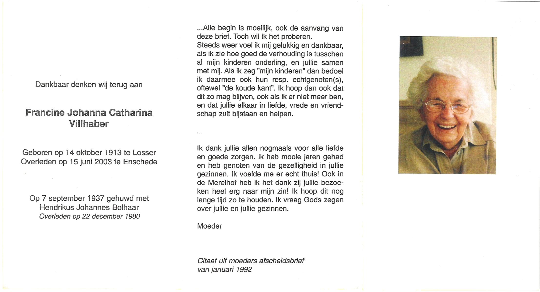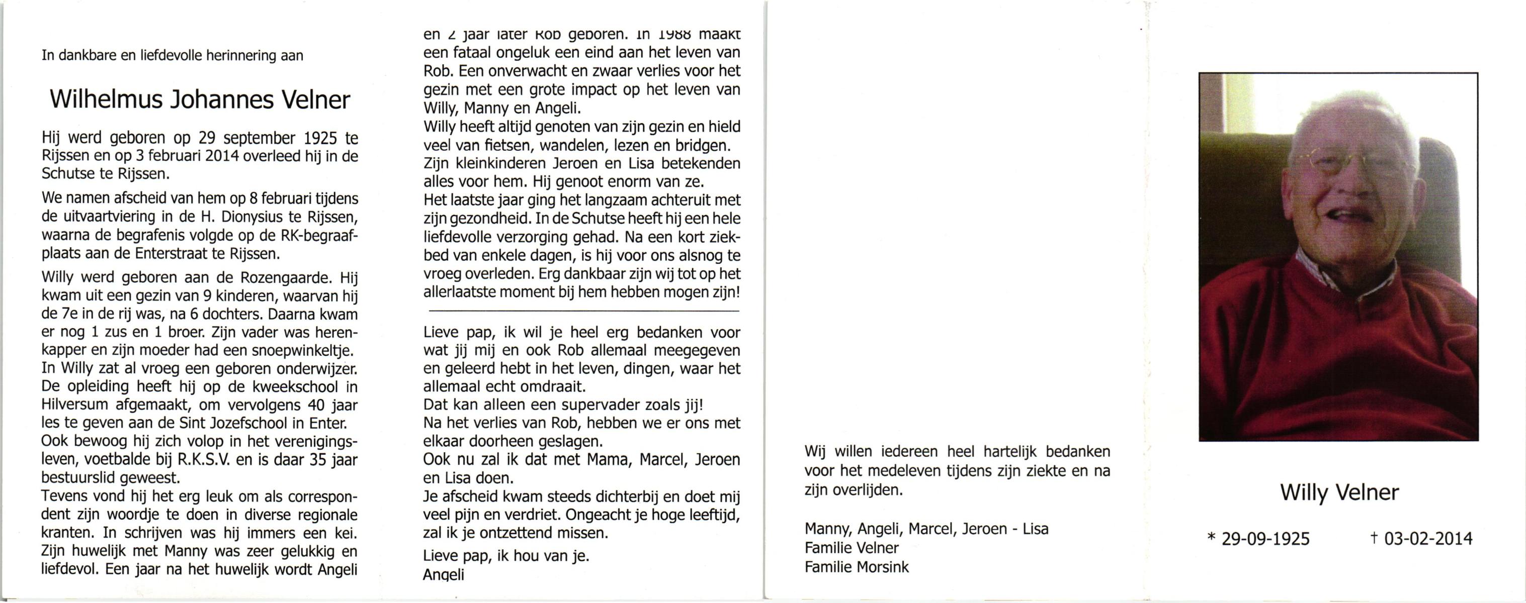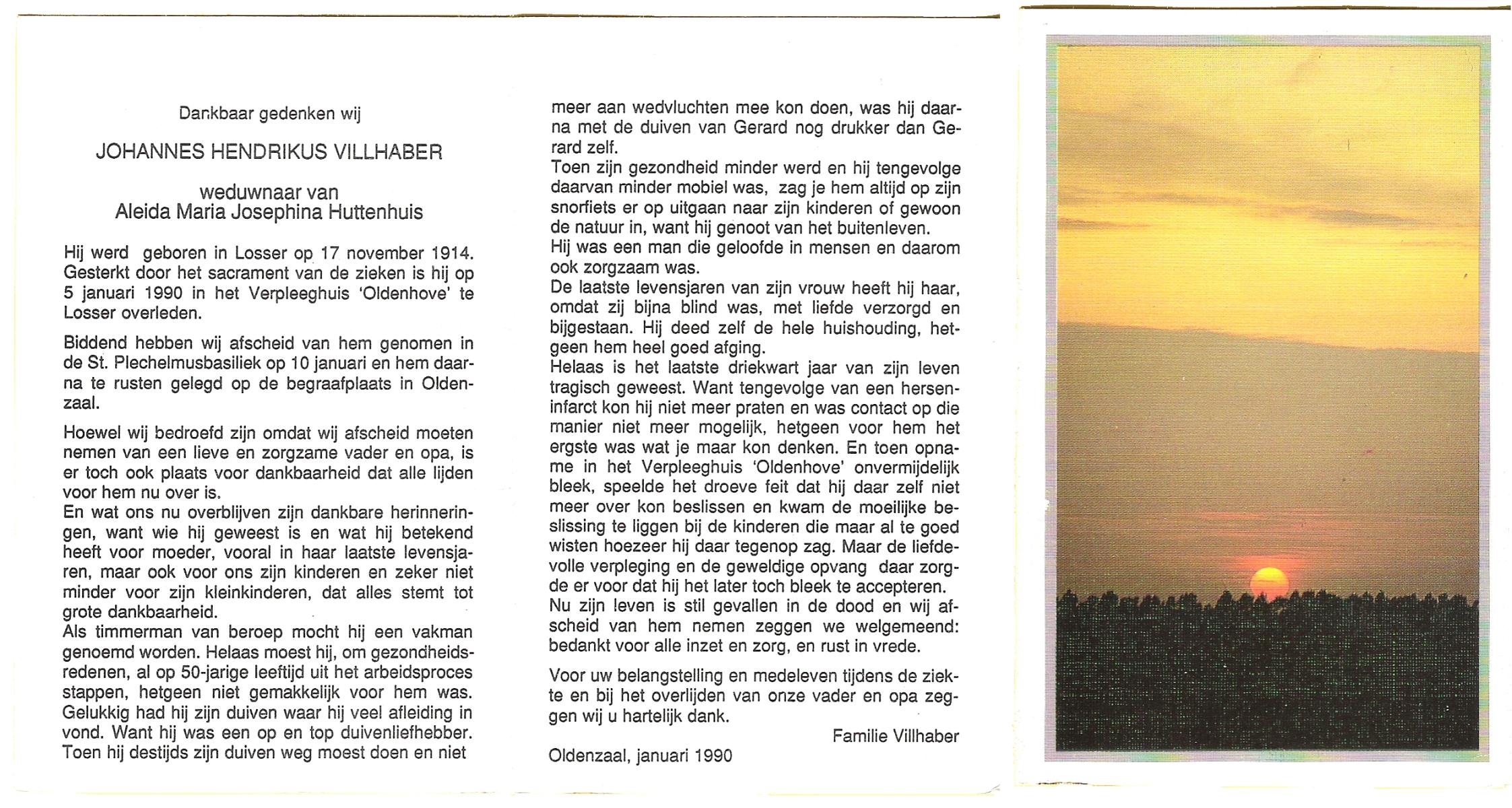 VILLHABER, Johannes Hendrikus, geboren op 17-11-1914 te Losser, overleden op 5-1-1990 te Losser op 75-jarige leeftijd, begraven op 10-1-1990 te Oldenzaal.