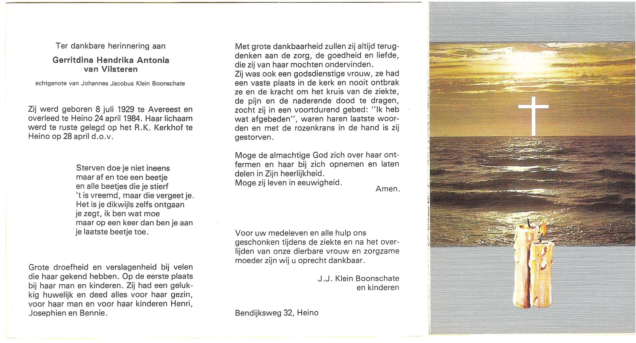 VILSTEREN, van, Gerardus Johannes, geboren op 7-12-1902 te Olst, overleden op 21-7-1979 te Enschede op 76-jarige leeftijd, begraven op 25-7-1979 te Olst.