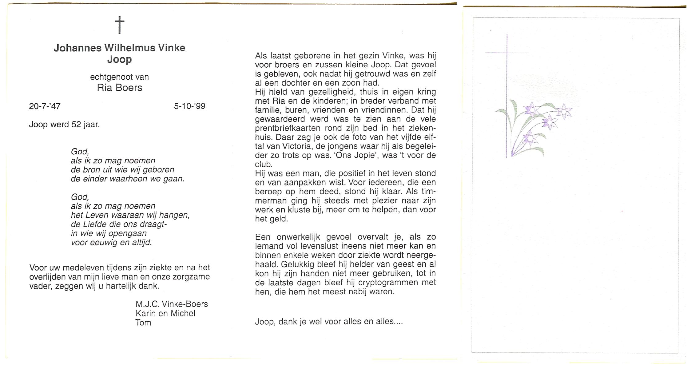 VINKE, Hendrikus, geboren op 24-1-1910 te Losser, overleden op 8-10-1975 te Enschede op 65-jarige leeftijd, begraven op 11-10-1975 te Glanerbrug.