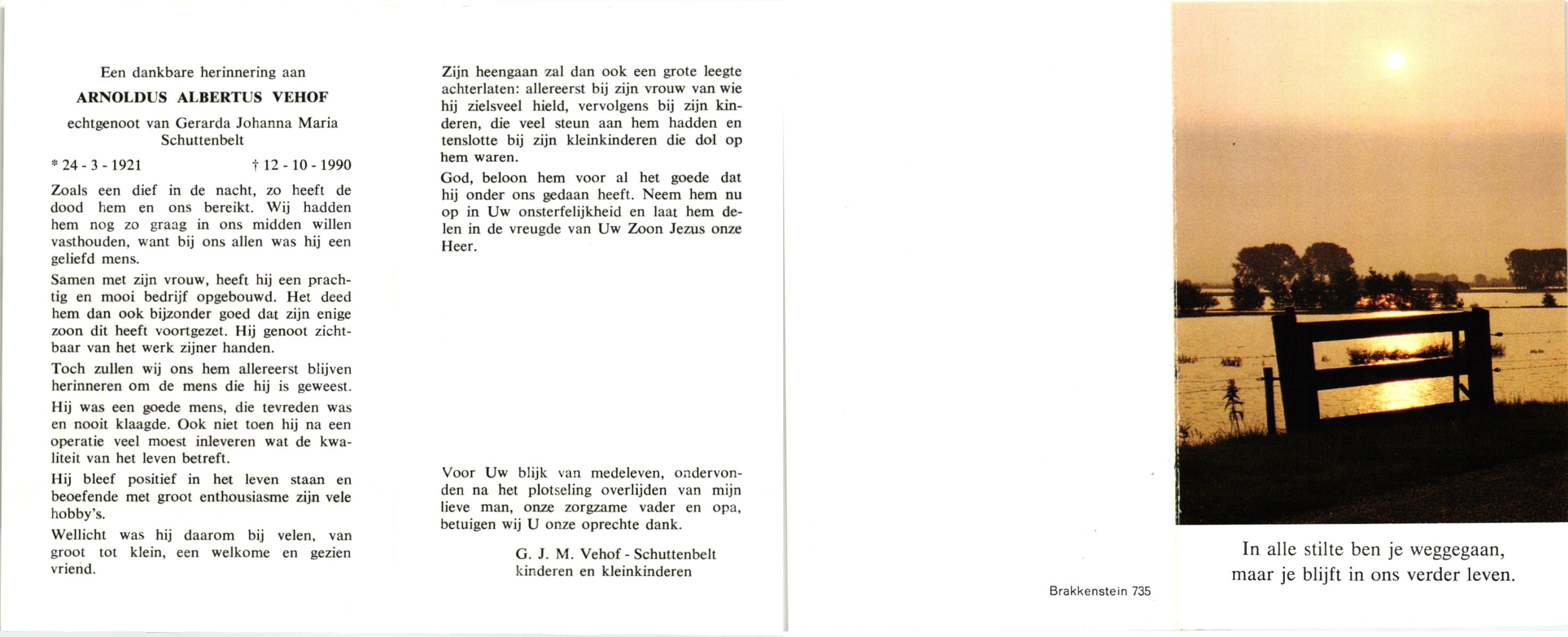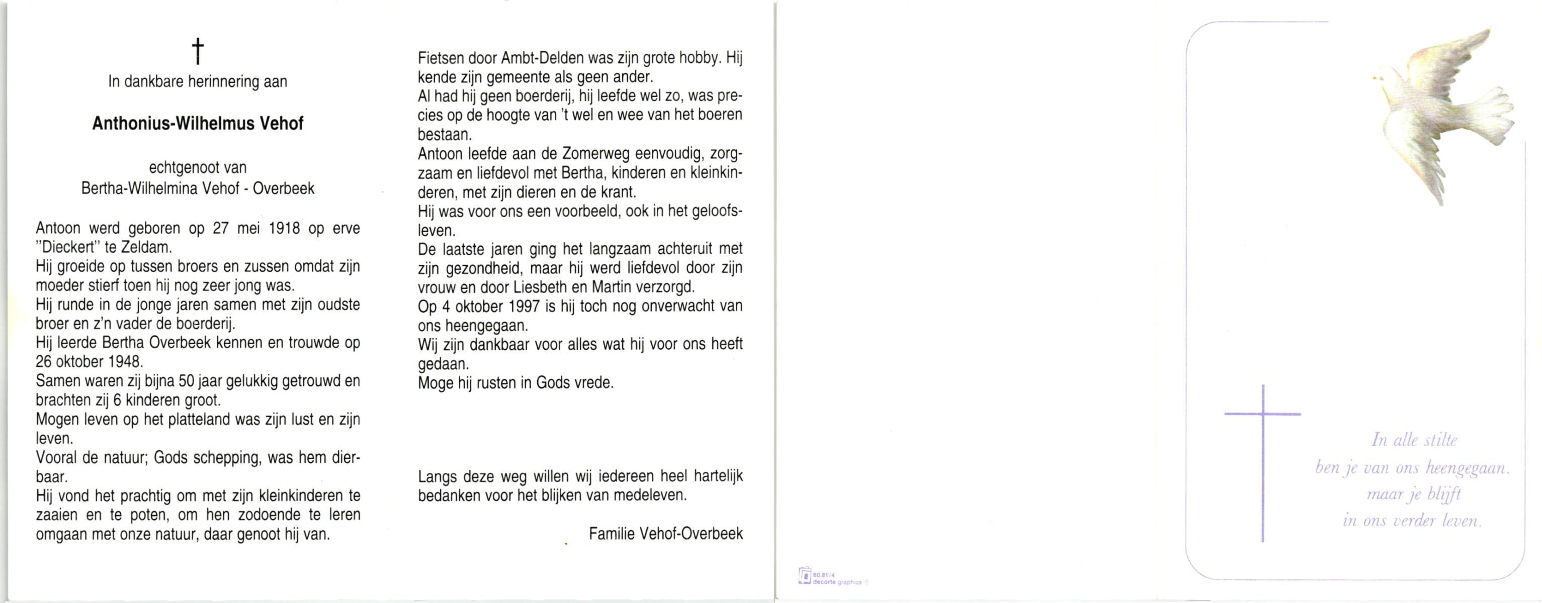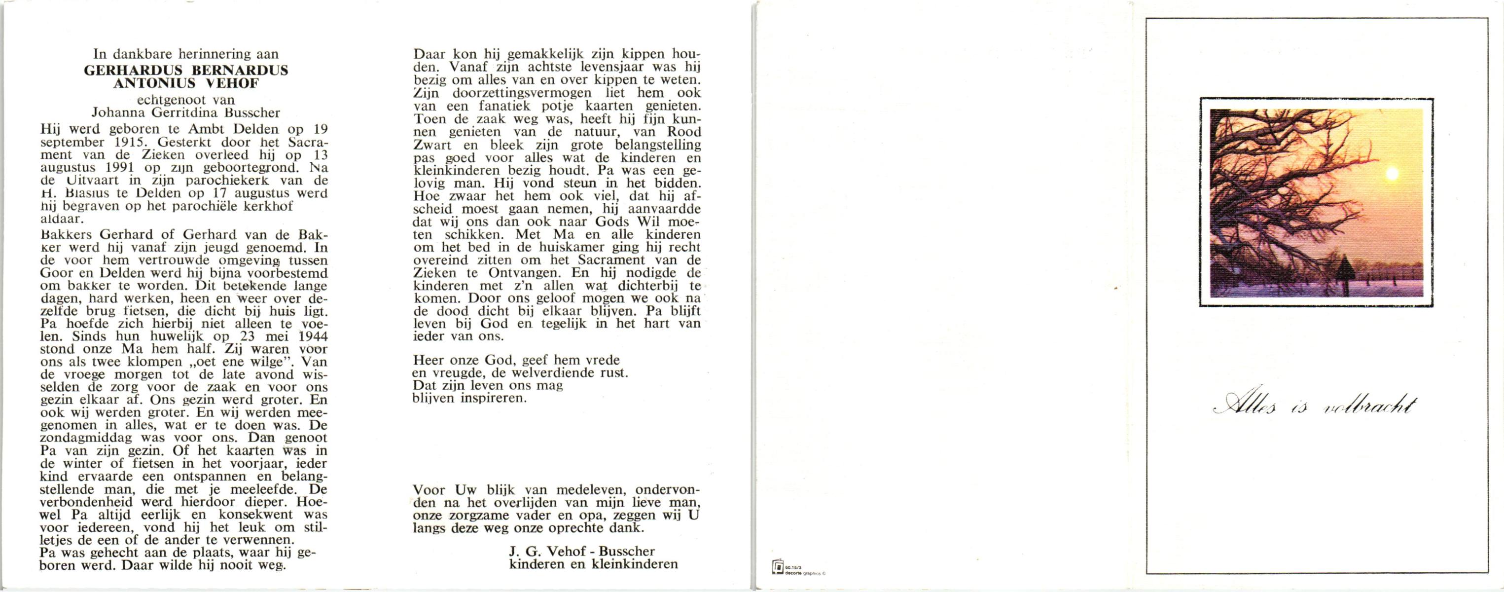 VEHOF, Gerhardus Bernardus Antonius, geboren op 19-9-1915 te Delden, Ambt, overleden op 13-8-1991 te Delden op 75-jarige leeftijd, begraven op 17-8-1991 te Delden.