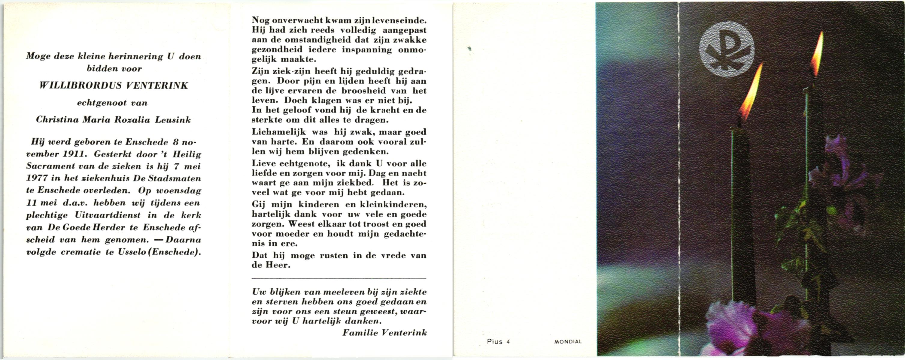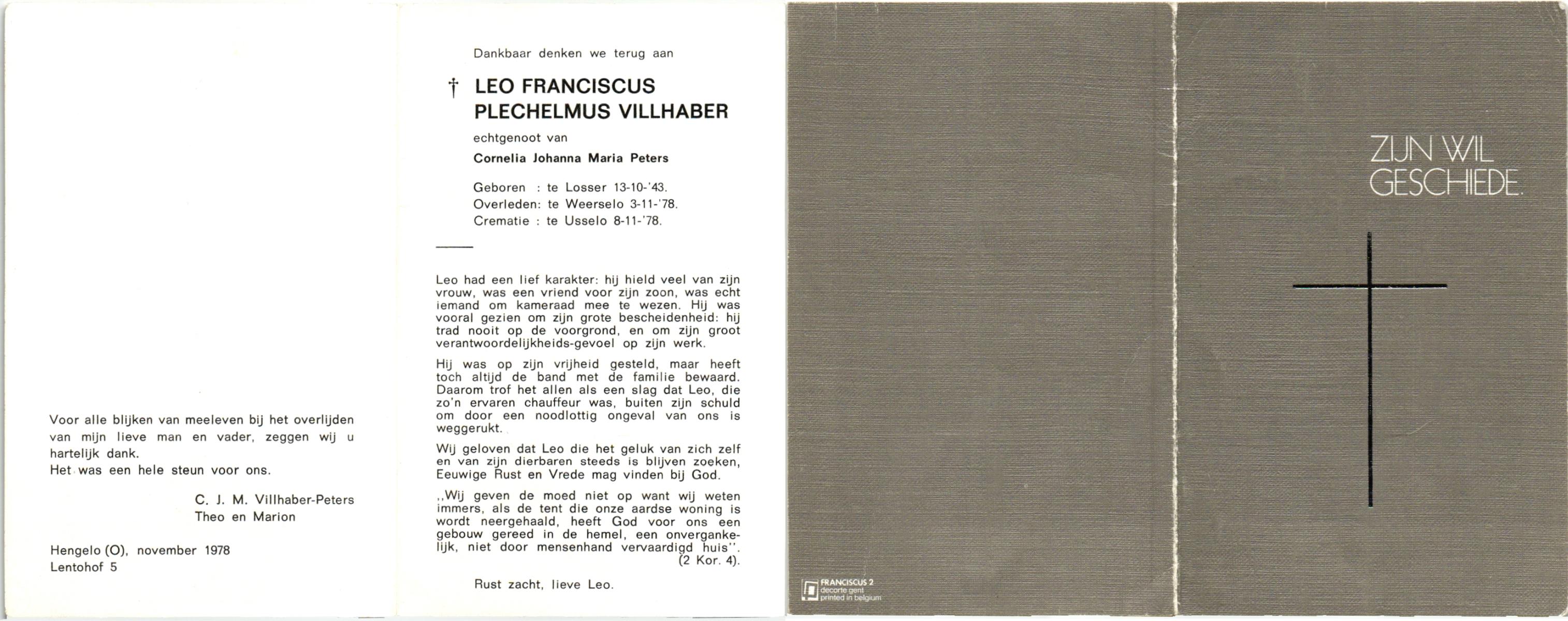 VILLHABER, , Leo Franciscus Plechelmus, geboren op 13-10-1943 te Losser, overleden op 3-11-1978 te Weerselo op 35-jarige leeftijd, gecremeerd op 8-11-1978 te Usselo.