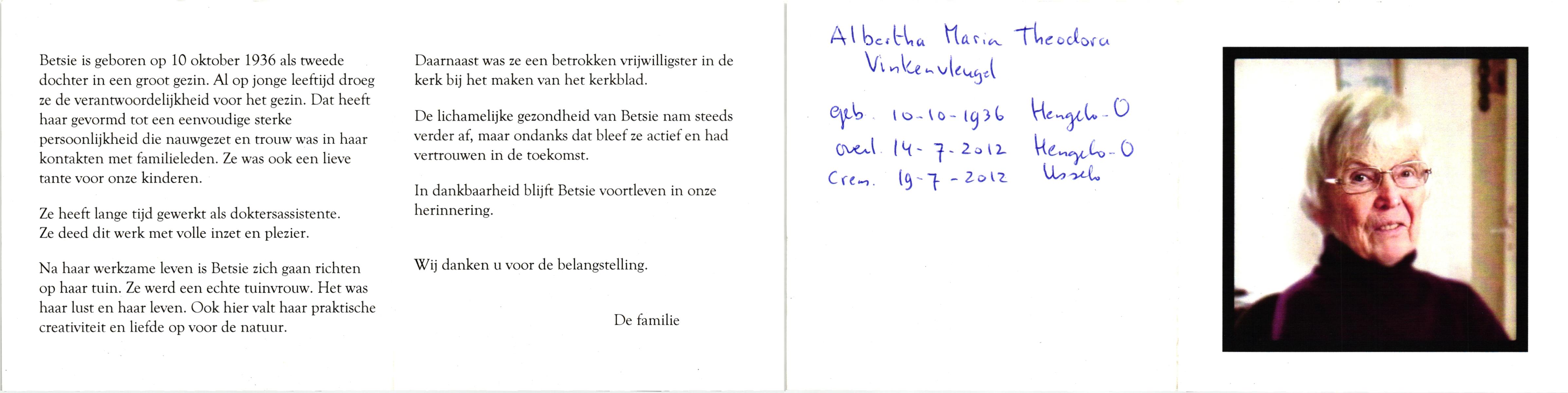 VINKENVLEUGEL, , Betsie, geboren op 10-10-1936 te Hengelo (O), overleden op 14-7-2012 te Hengelo (O) op 75-jarige leeftijd, gecremeerd op 19-7-2012 te Usselo.