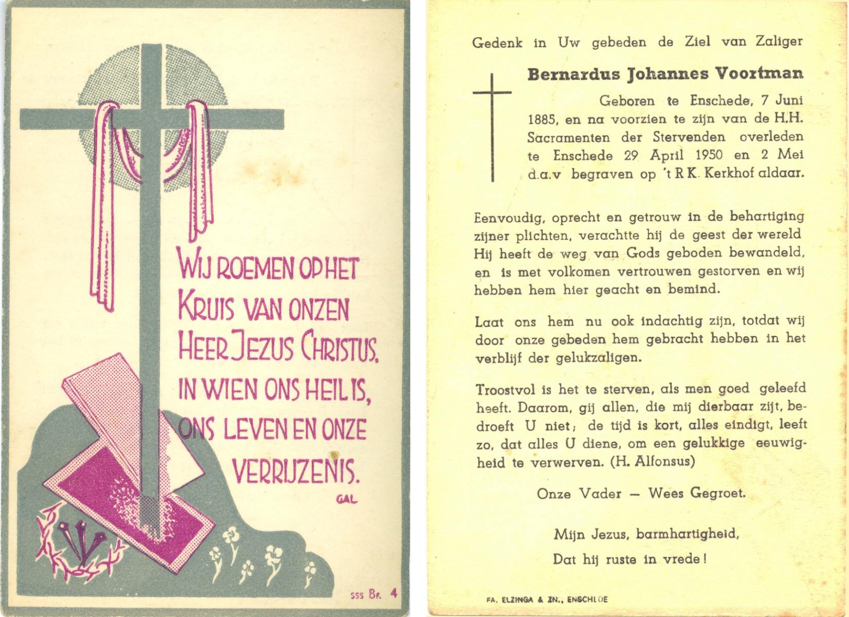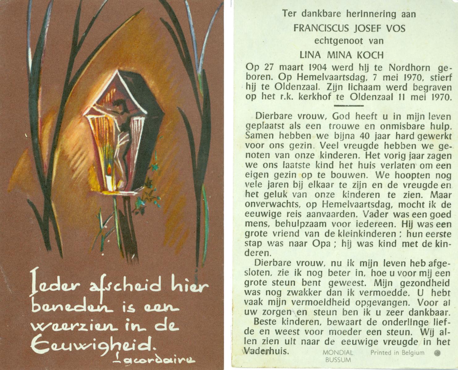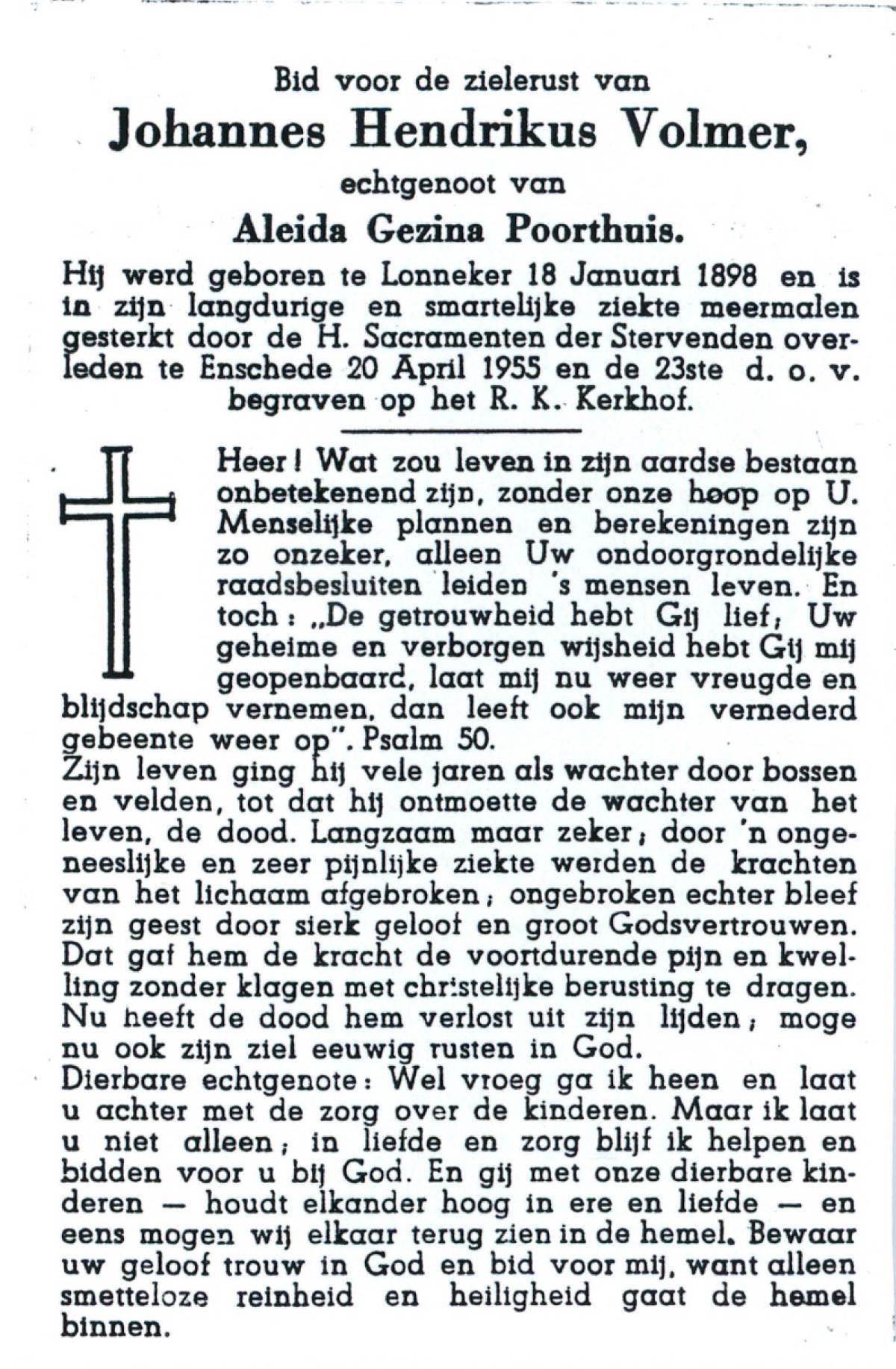 VISSCHEDIJK, Johannes Bernardus, geboren op 09-09-1892 te Lonneker, overleden op 3-5-1974 te Oldenzaal op 81-jarige leeftijd, begraven op 8-5-1974 te Oldenzaal.