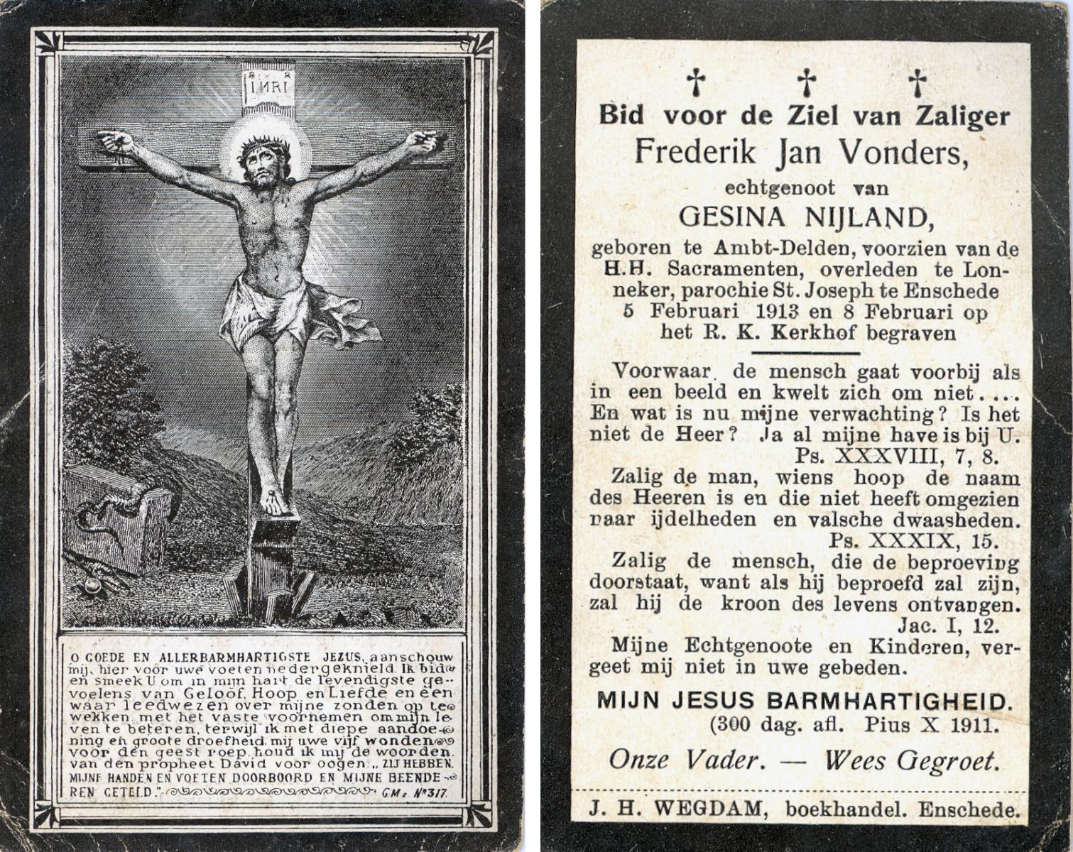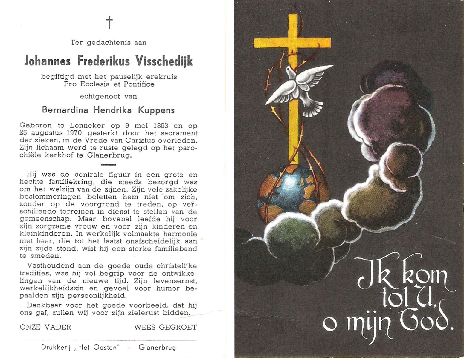 VISSCHEDIJK, Johannes Frederikus, geboren op 09-05-1893 te Lonneker, overleden op 25-8-1970 op 77-jarige leeftijd, begraven te Glanerbrug.