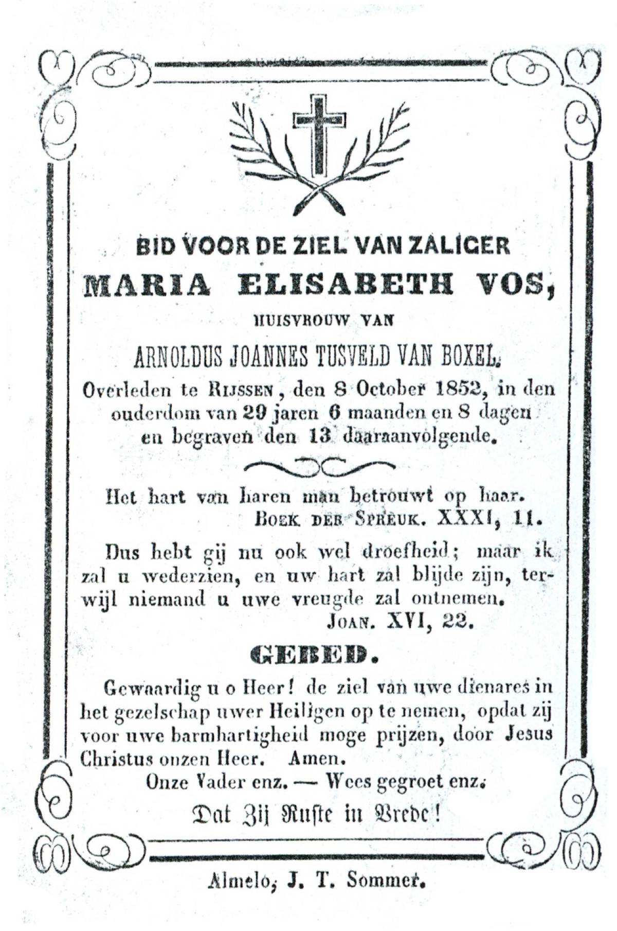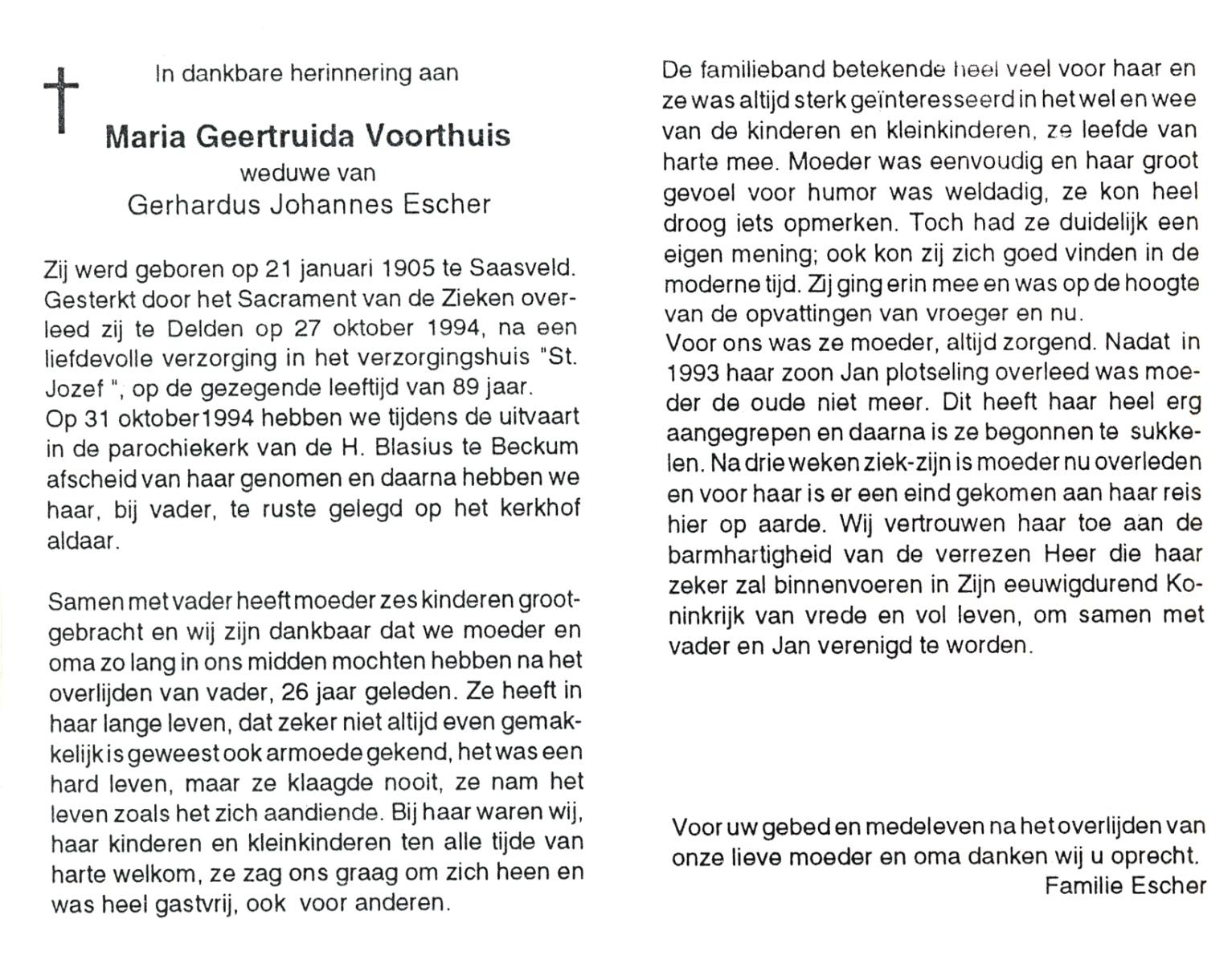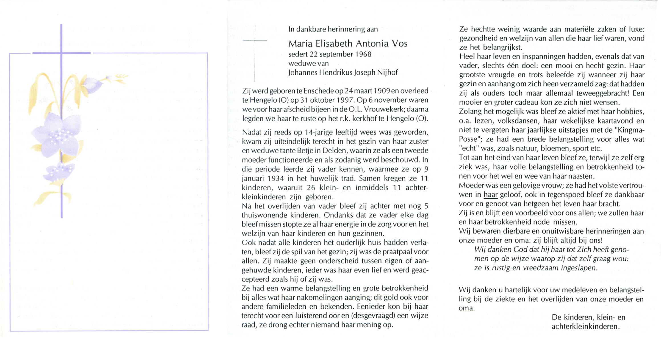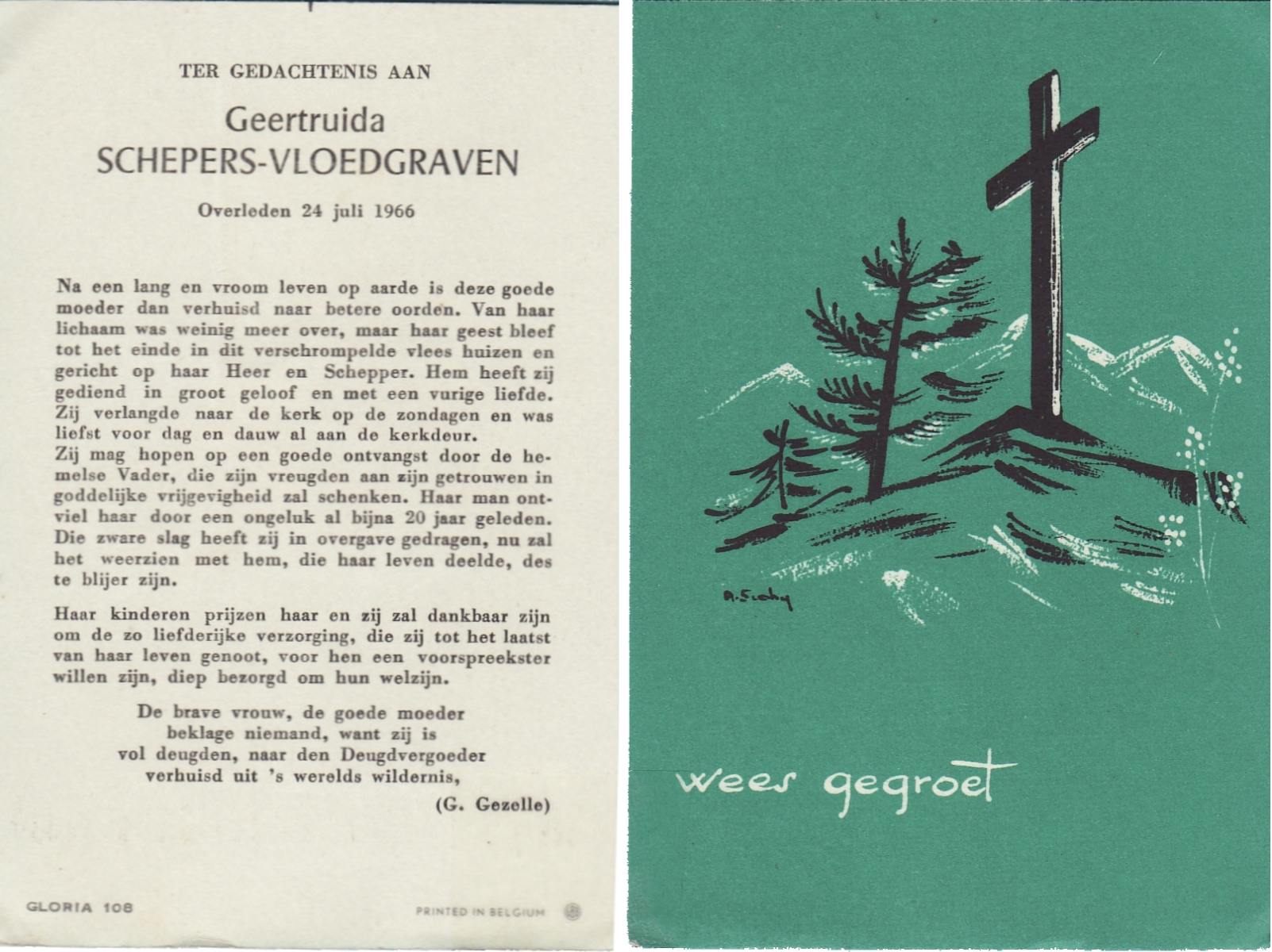 VISSCHEDIJK, Maria Gezina Lucia, geboren op 26-5-1909 te Weerselo, overleden op 21-5-1985 op 75-jarige leeftijd, begraven op 24-5-1985 te Hengelo (Ov.).