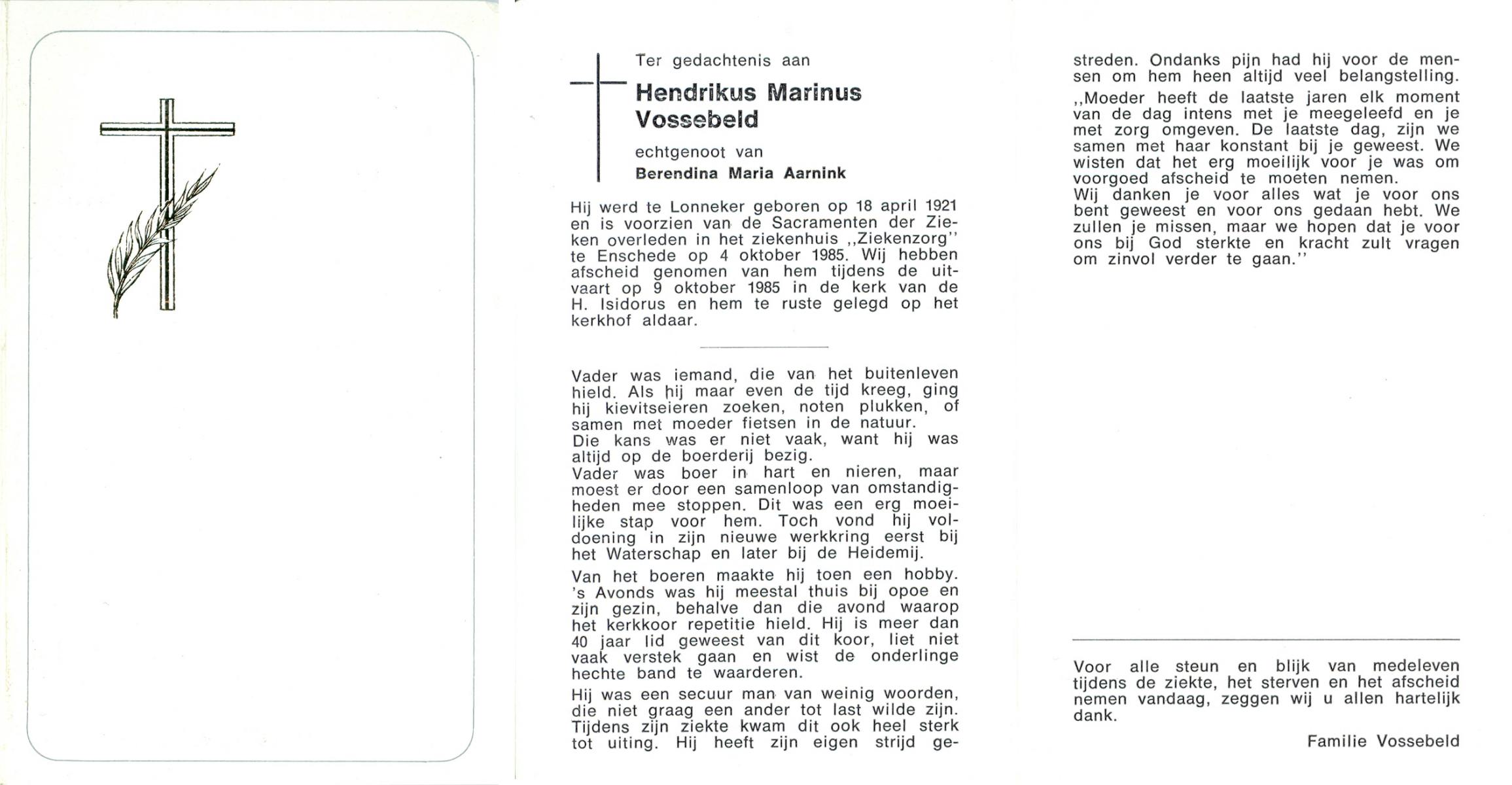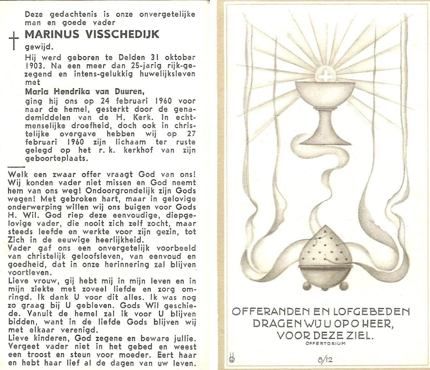 VISSCHEDIJK, Marinus, geboren op 31-10-1903 te Delden, overleden op 24-2-1960 op 56-jarige leeftijd, begraven op 27-2-1960 te Delden parochie-kerkhof H.Blasius.