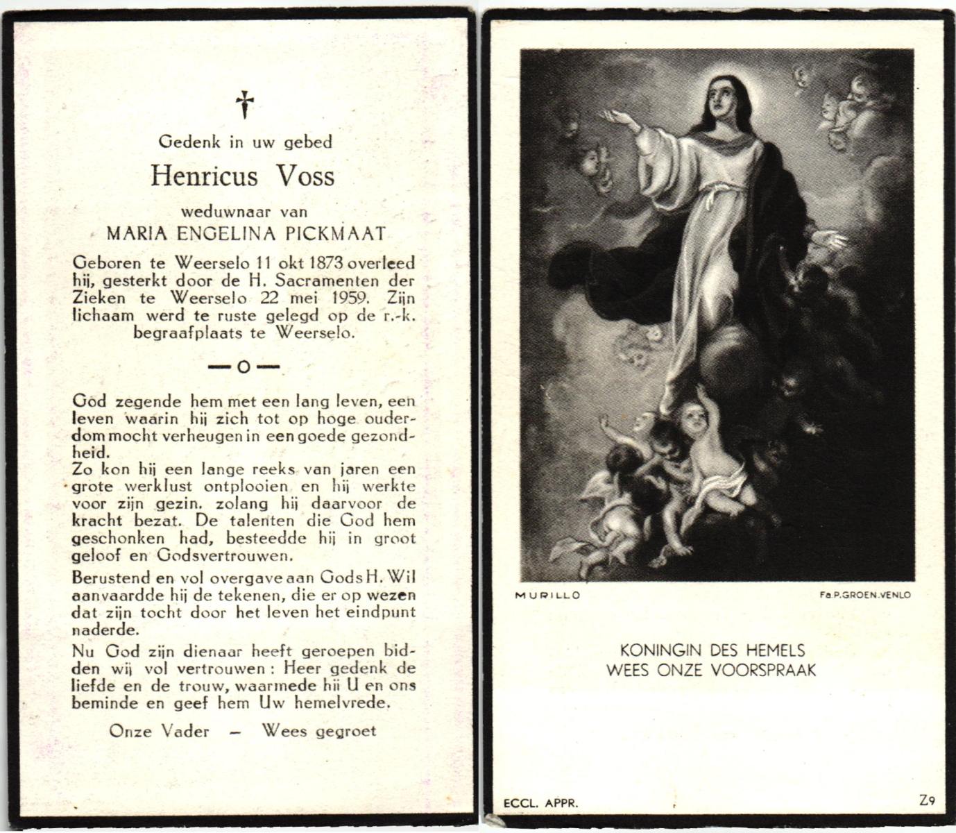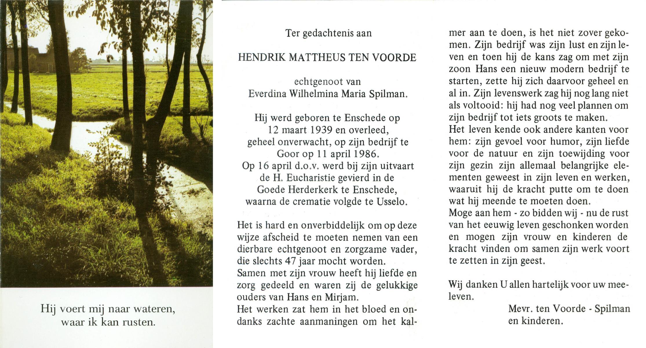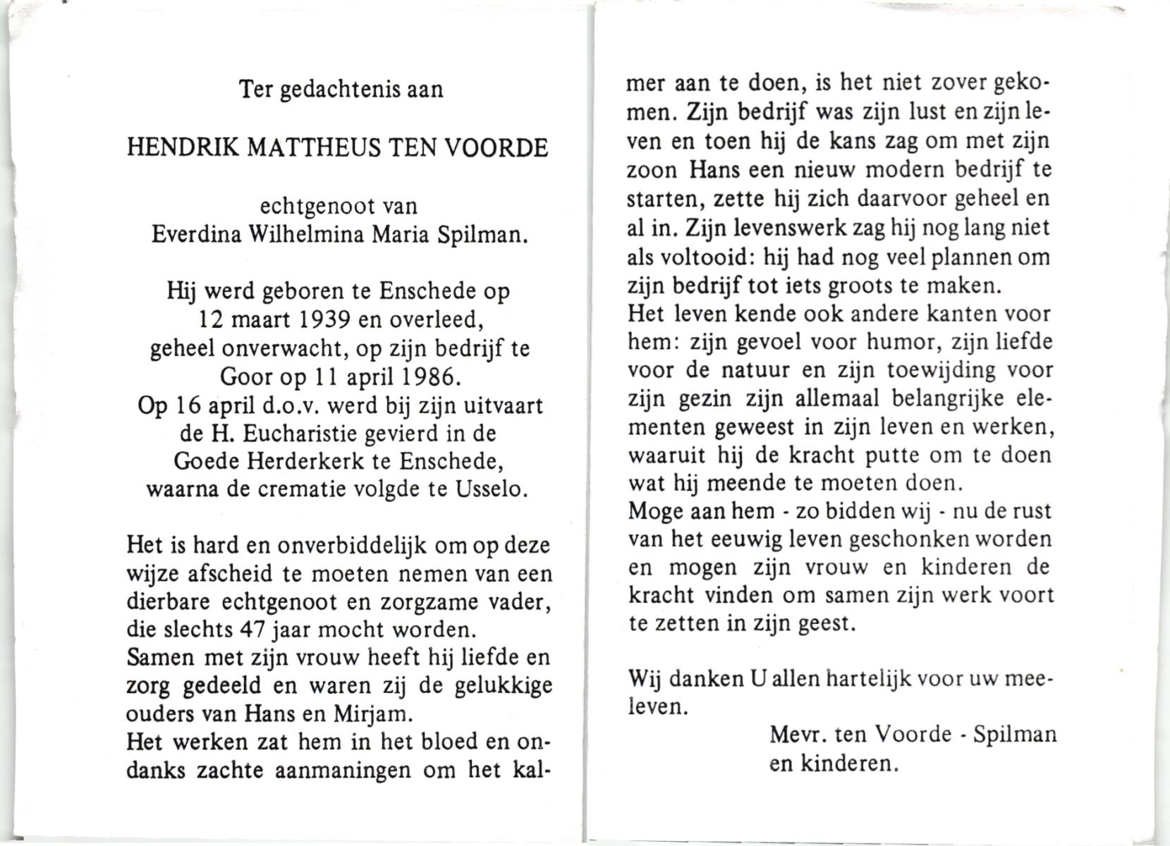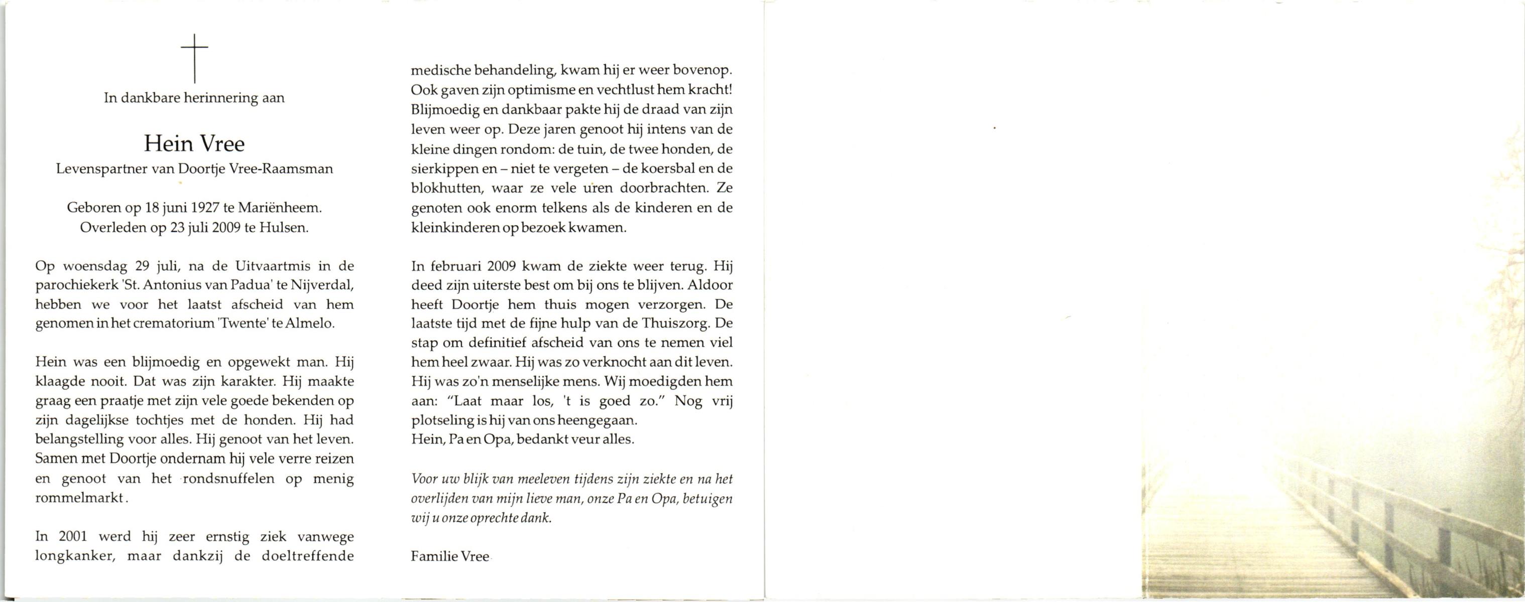 VISSER, Hendrikus Gerardus, geboren op 3-7-1905 te Steenwijkerwold, overleden op 7-2-1986 te Overdinkel op 80-jarige leeftijd, gecremeerd op 12-2-1986 te Usselo.